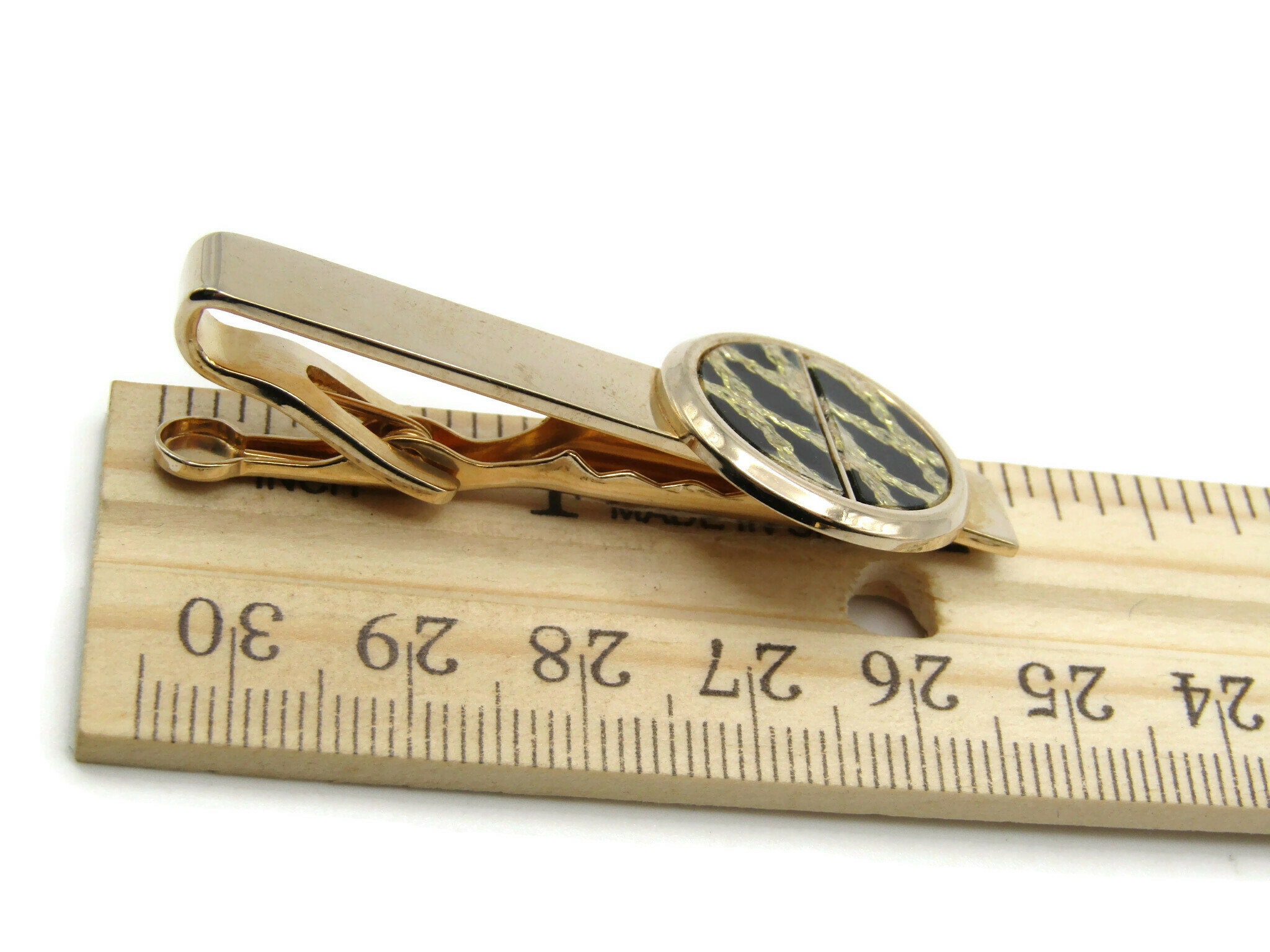 Black Chain Design Stone Inlay Smooth Finish Gold Tone Tie Bar Tie Clip Men's Jewelry