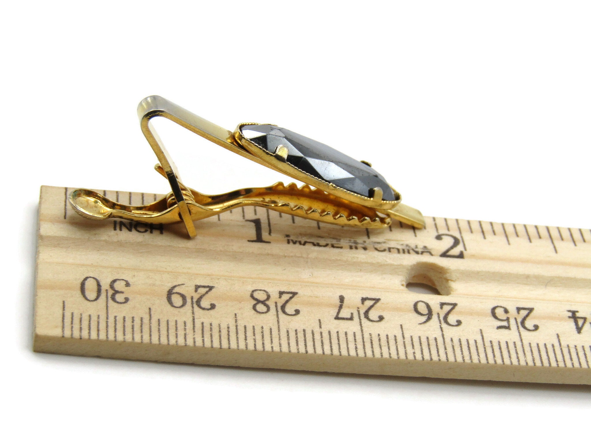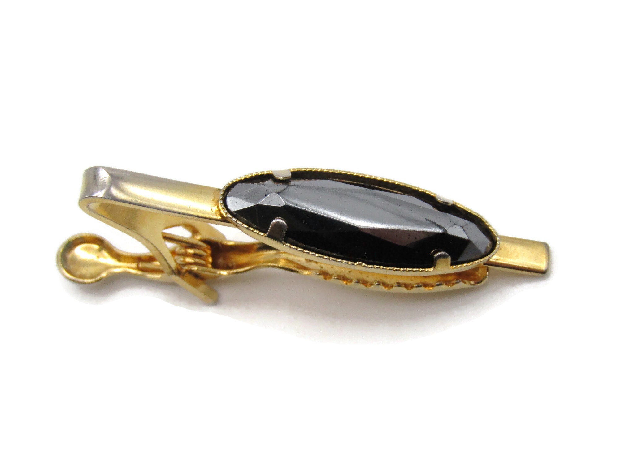 Shiny Black Stone Inlay Classic Tie Bar Gold Tone Tie Clip Men's Jewelry
