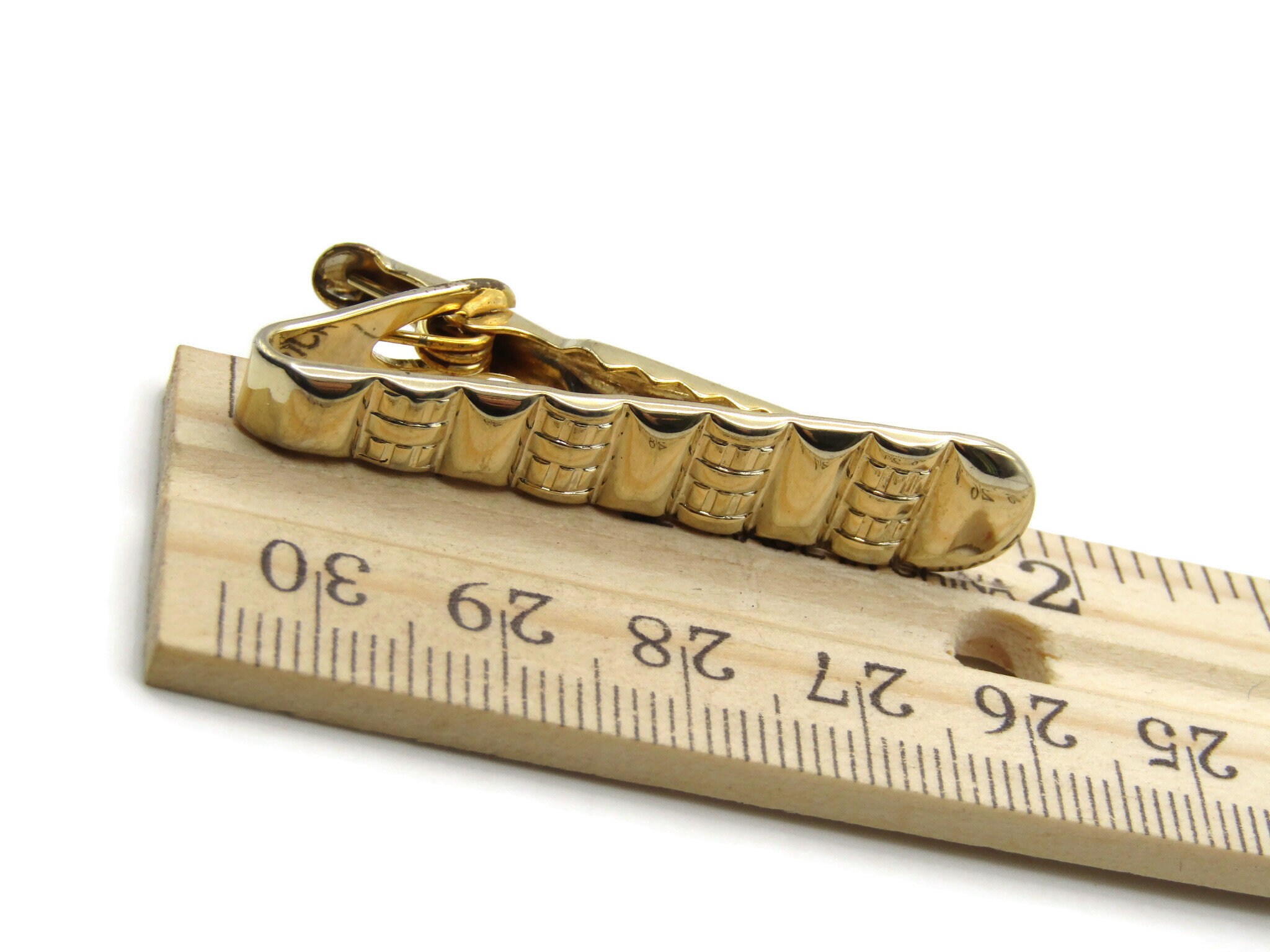 Wavy Textured Pattern Gold Tone Modernist Tie Bar Tie Clip Men's Jewelry