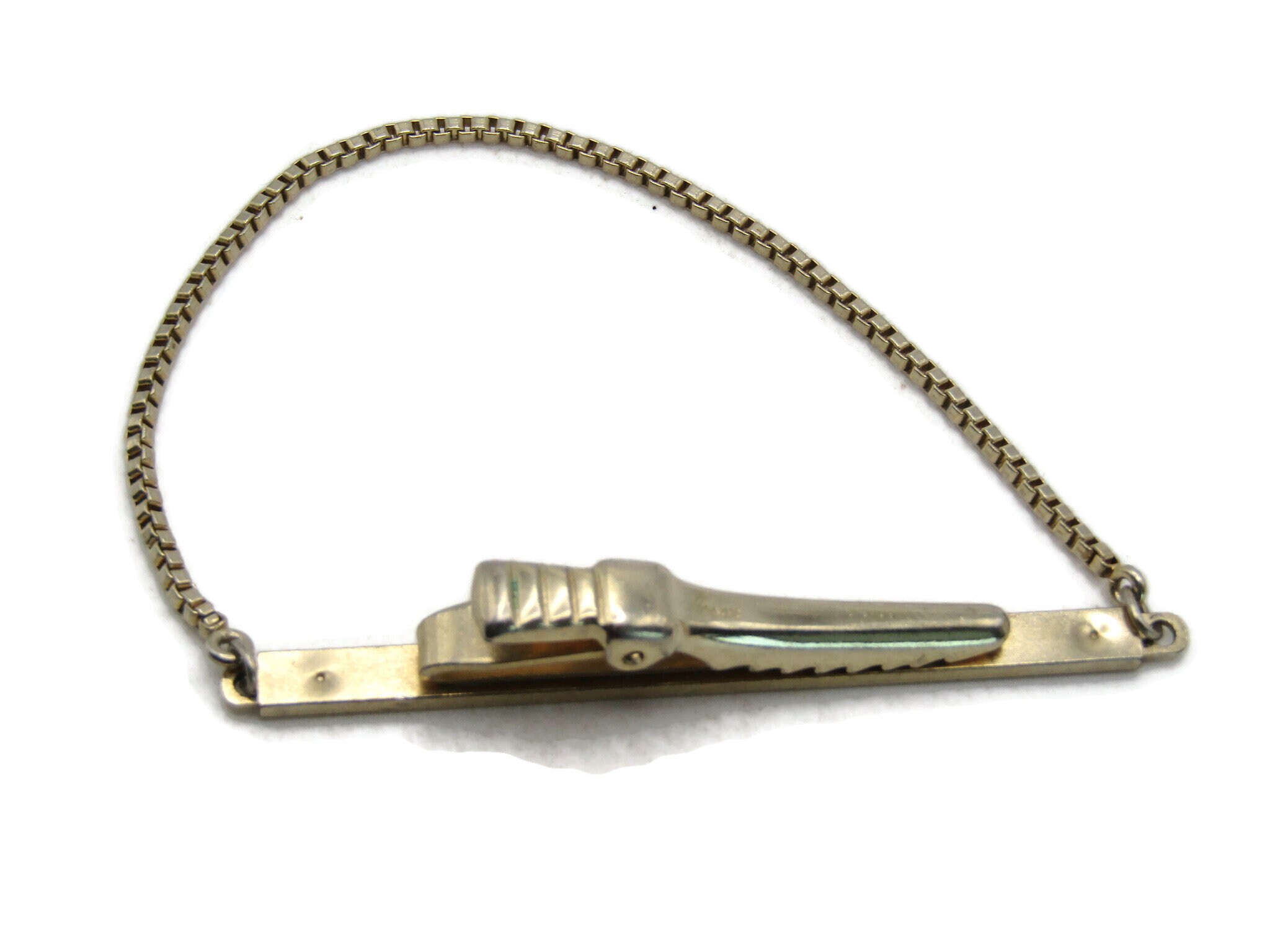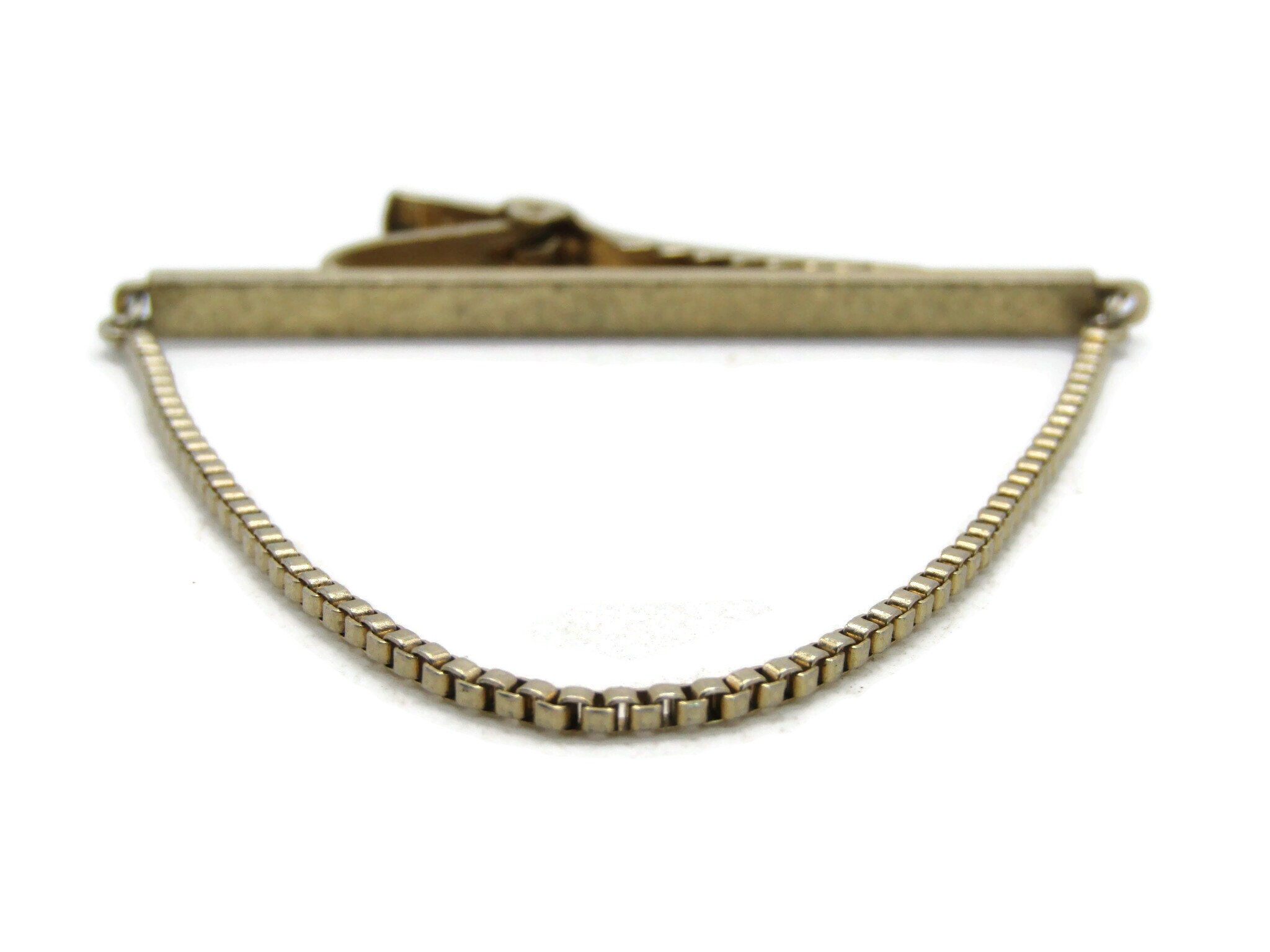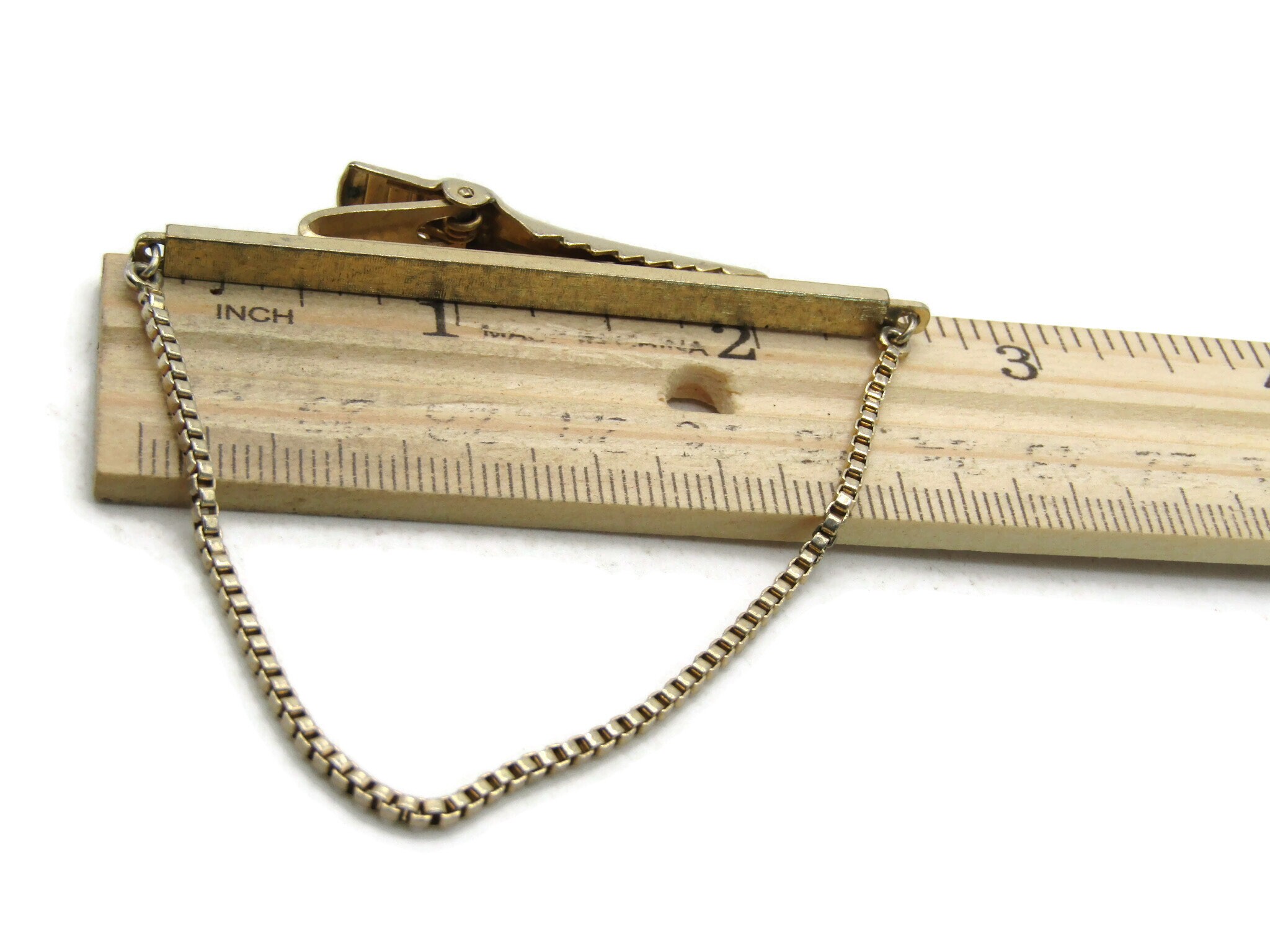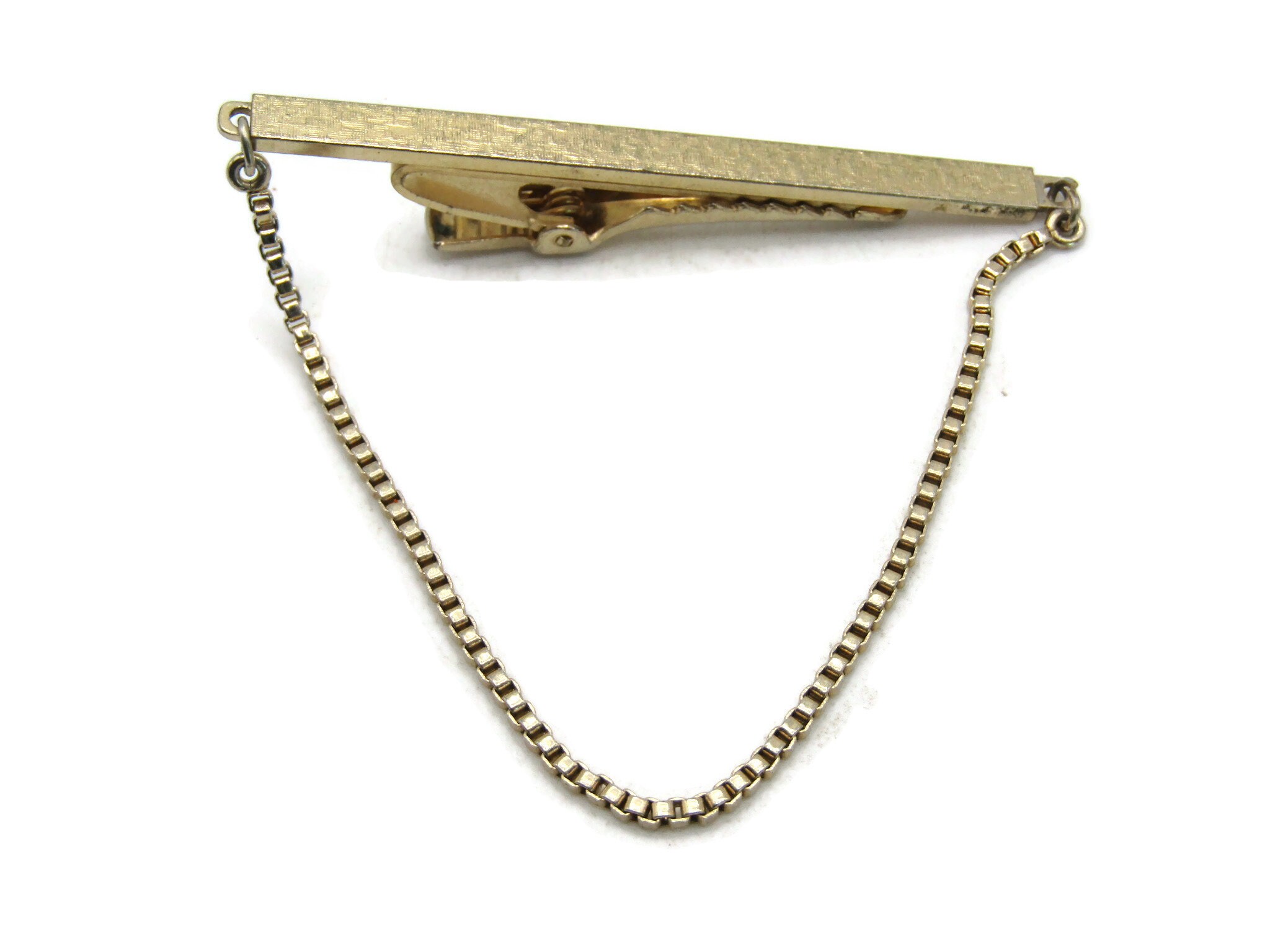 Textured Gold Tone Tie Clip & Chain Modernist Tie Bar Modernist Men's Jewelry