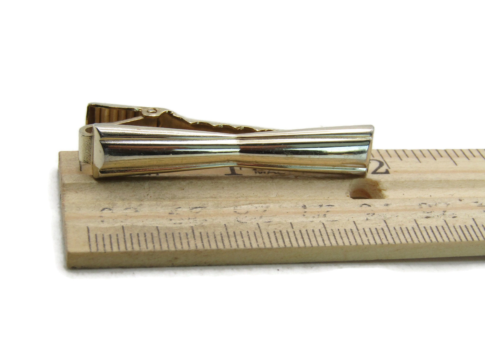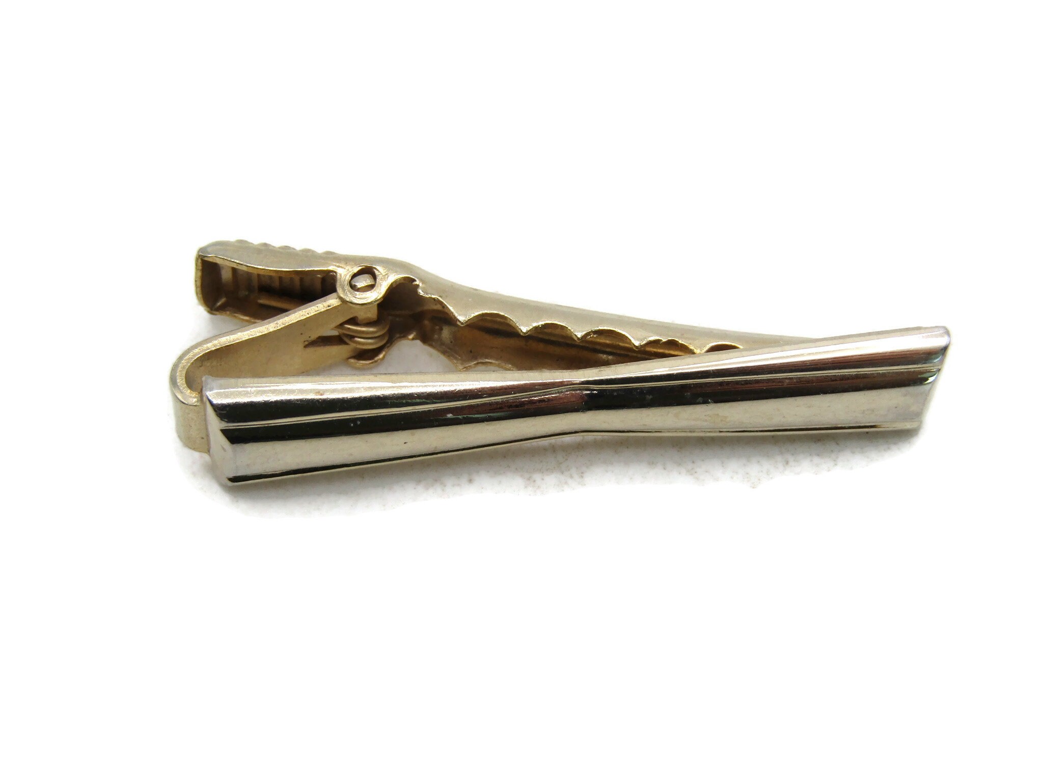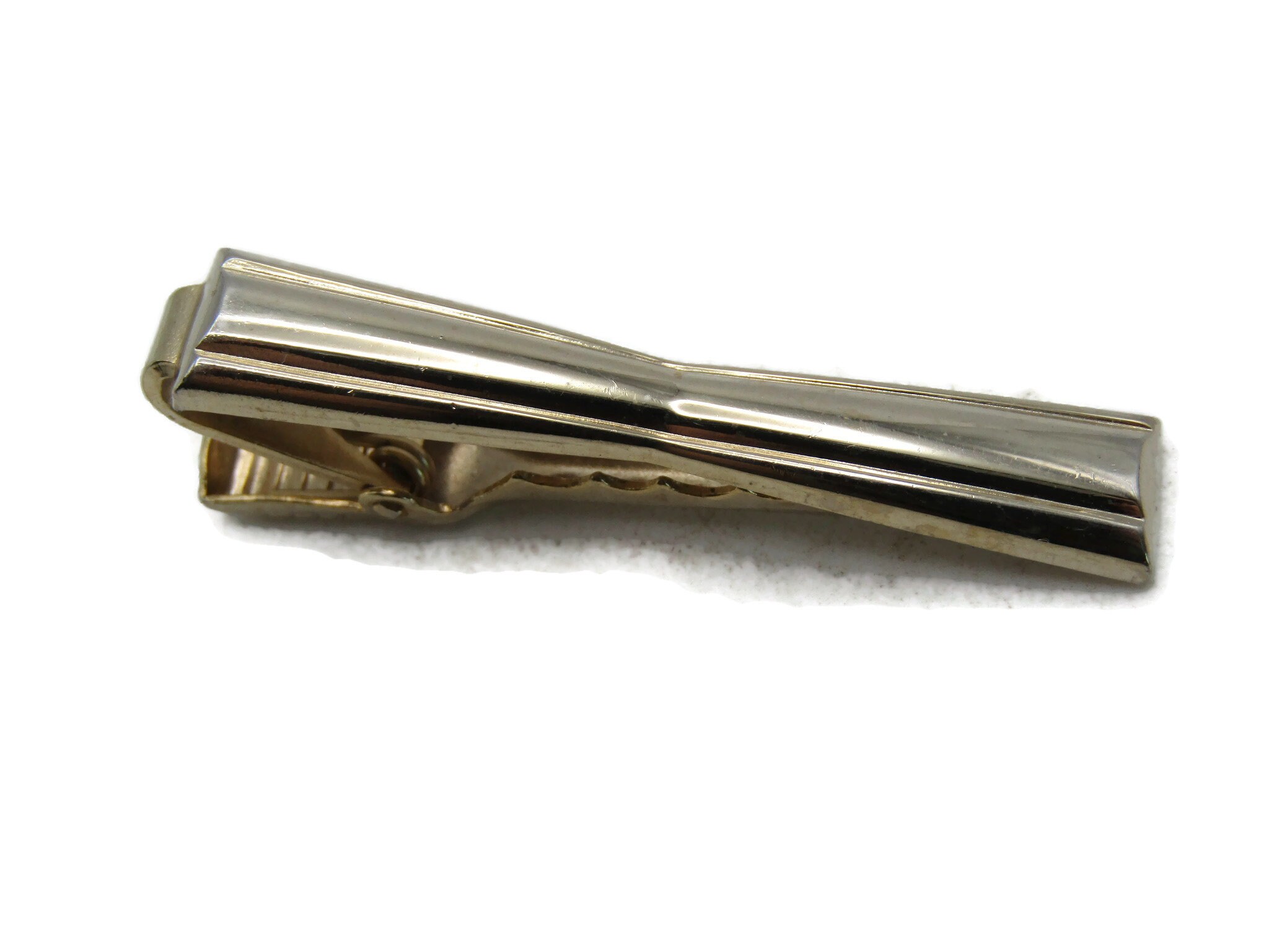 Pinched Center Design Gold Tone Tie Bar Modernist Tie Clip Men's Jewelry