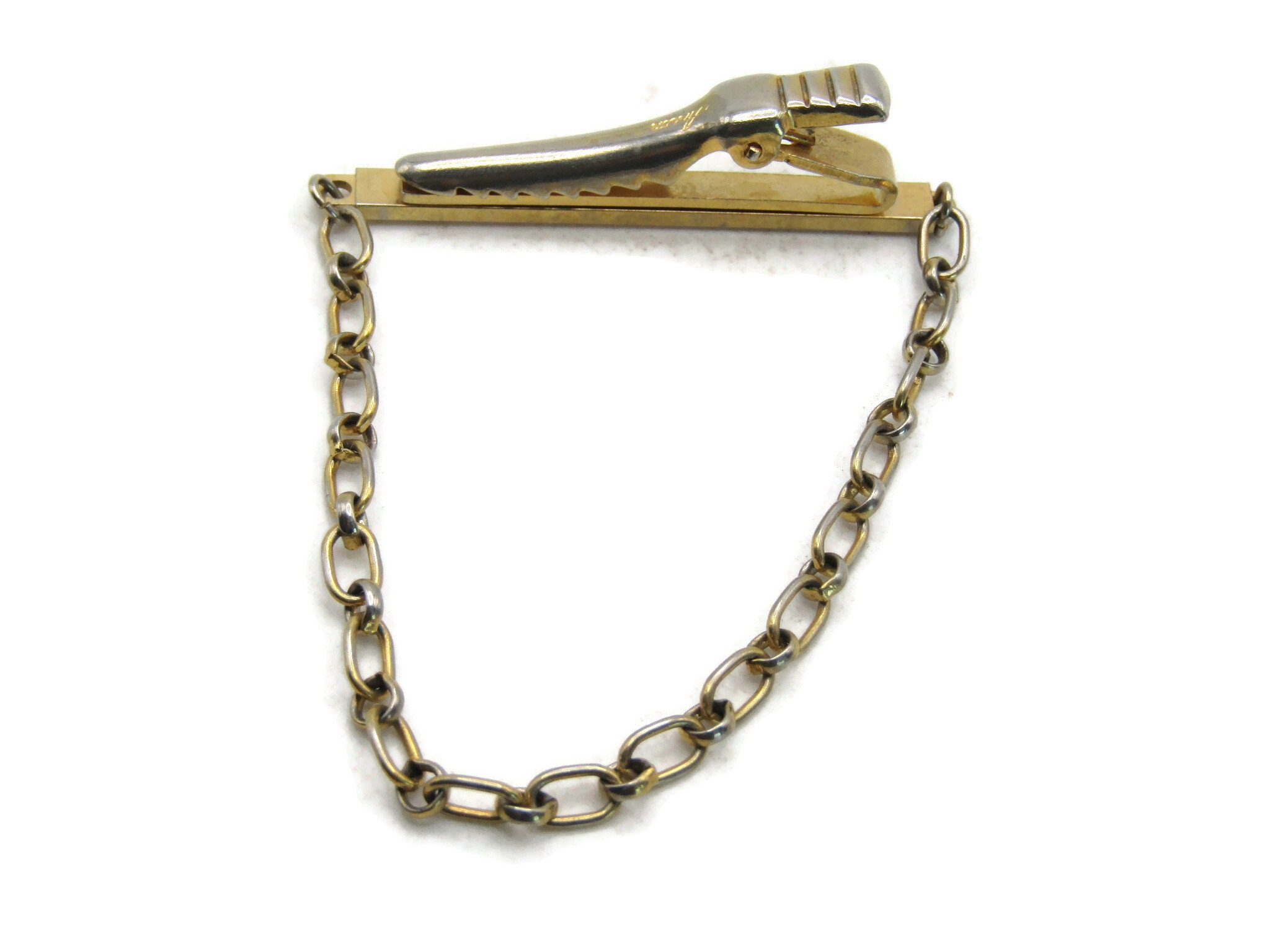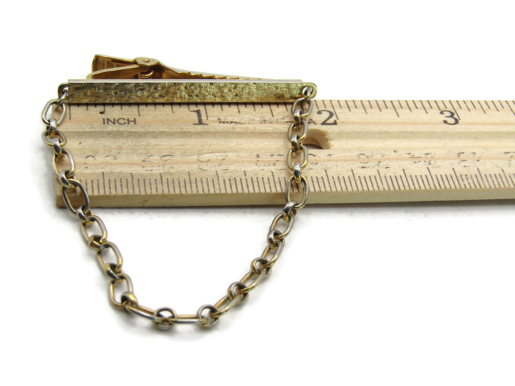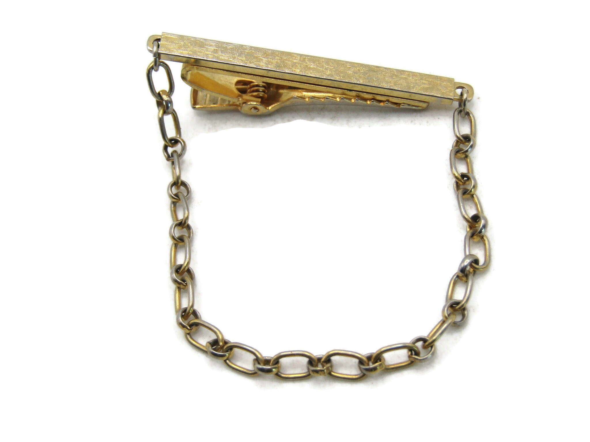 Textured Gold Tone Tie Bar & Chain Industrial Tie Clip Men's Jewelry