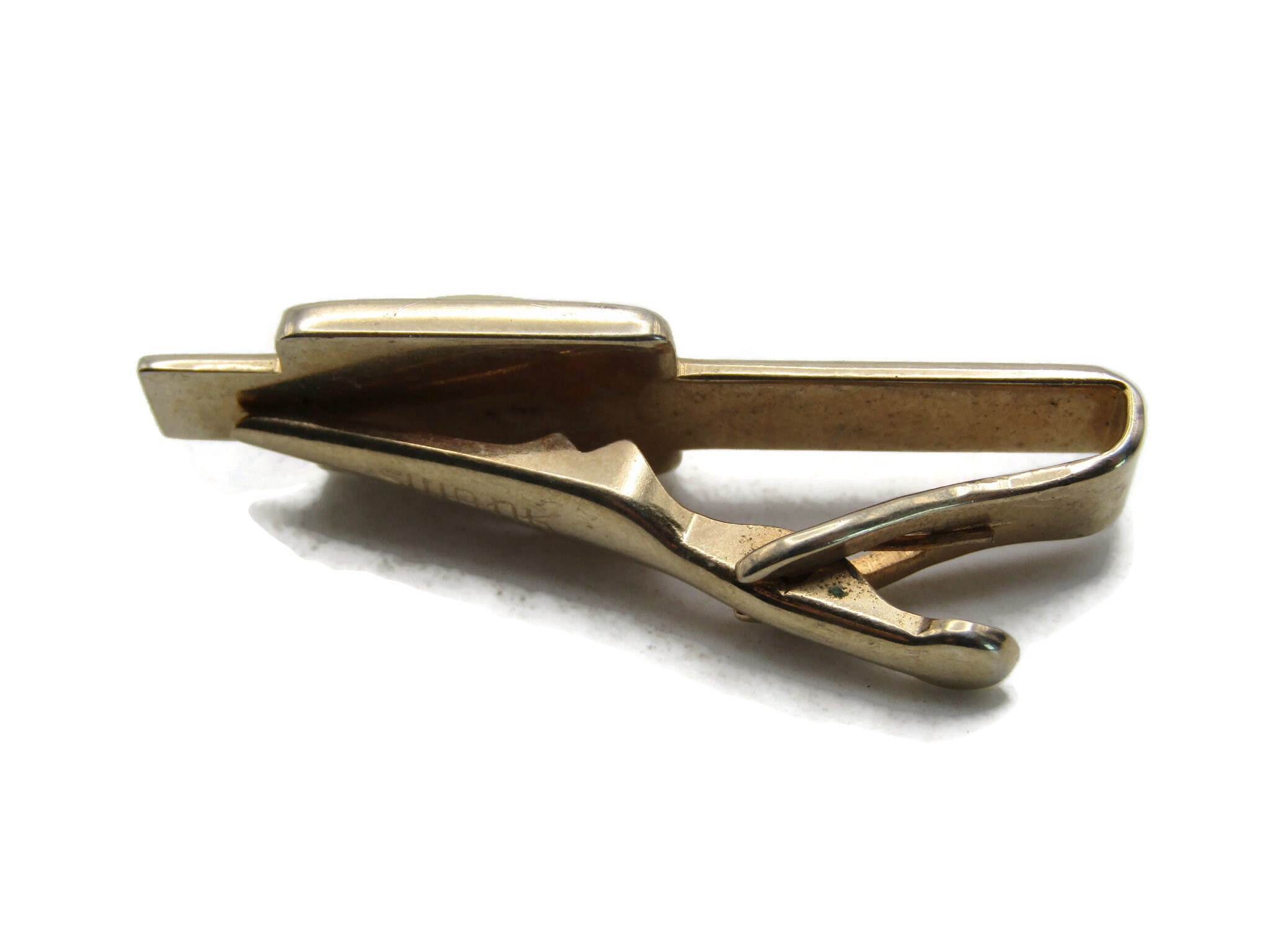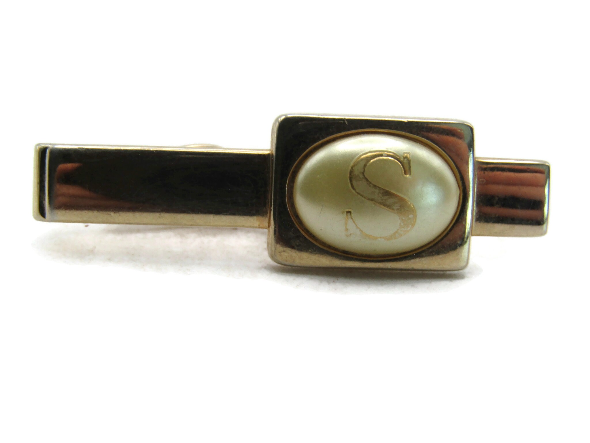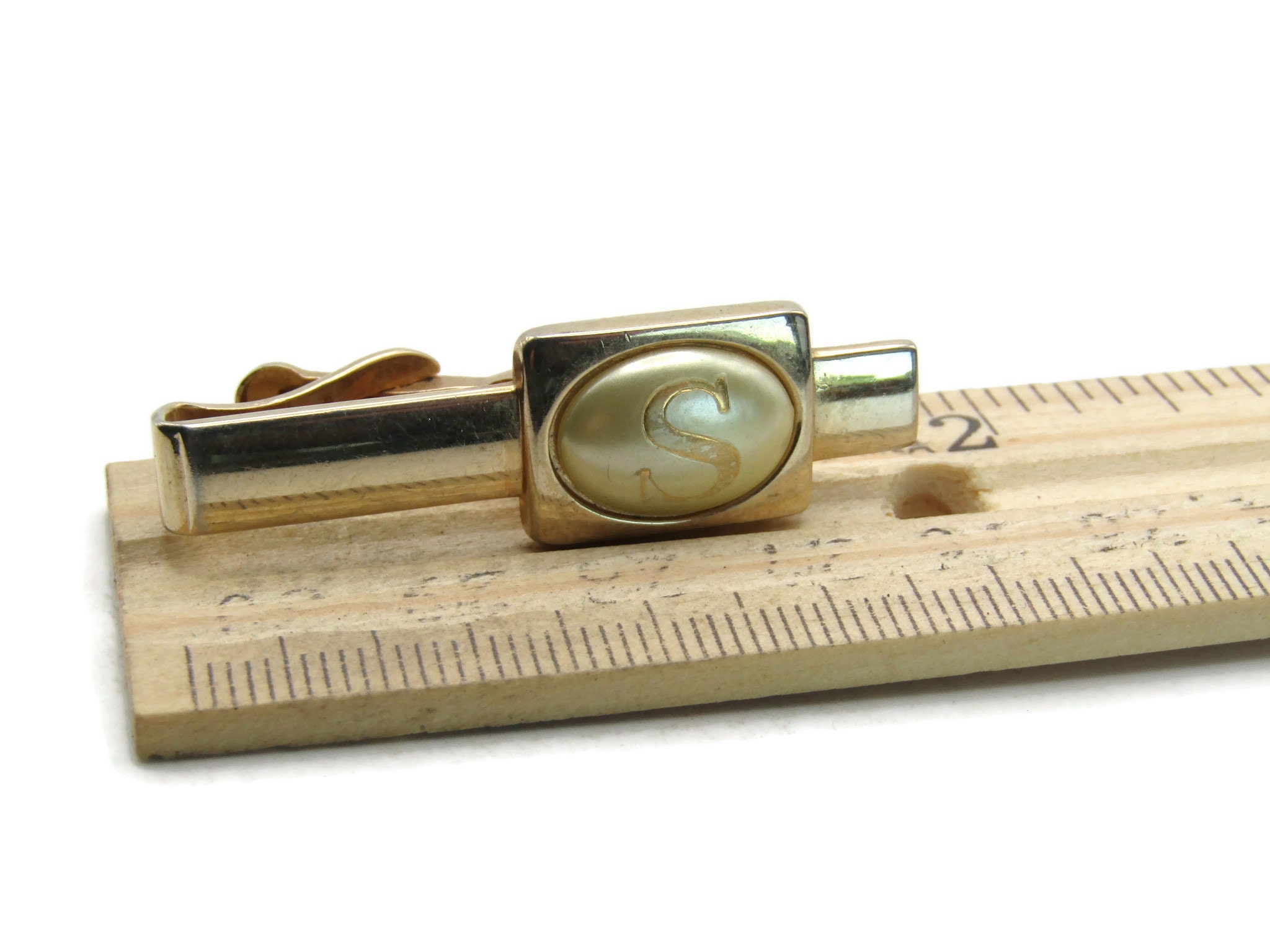 White Stone Inlay S Letter Initial Monogram Tie Clip Gold Tone Tie Bar Men's Jewelry