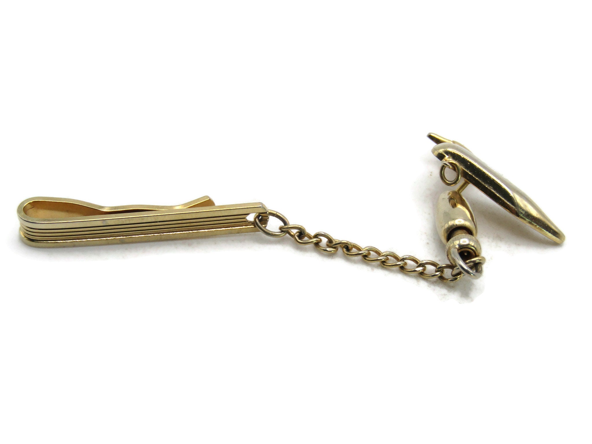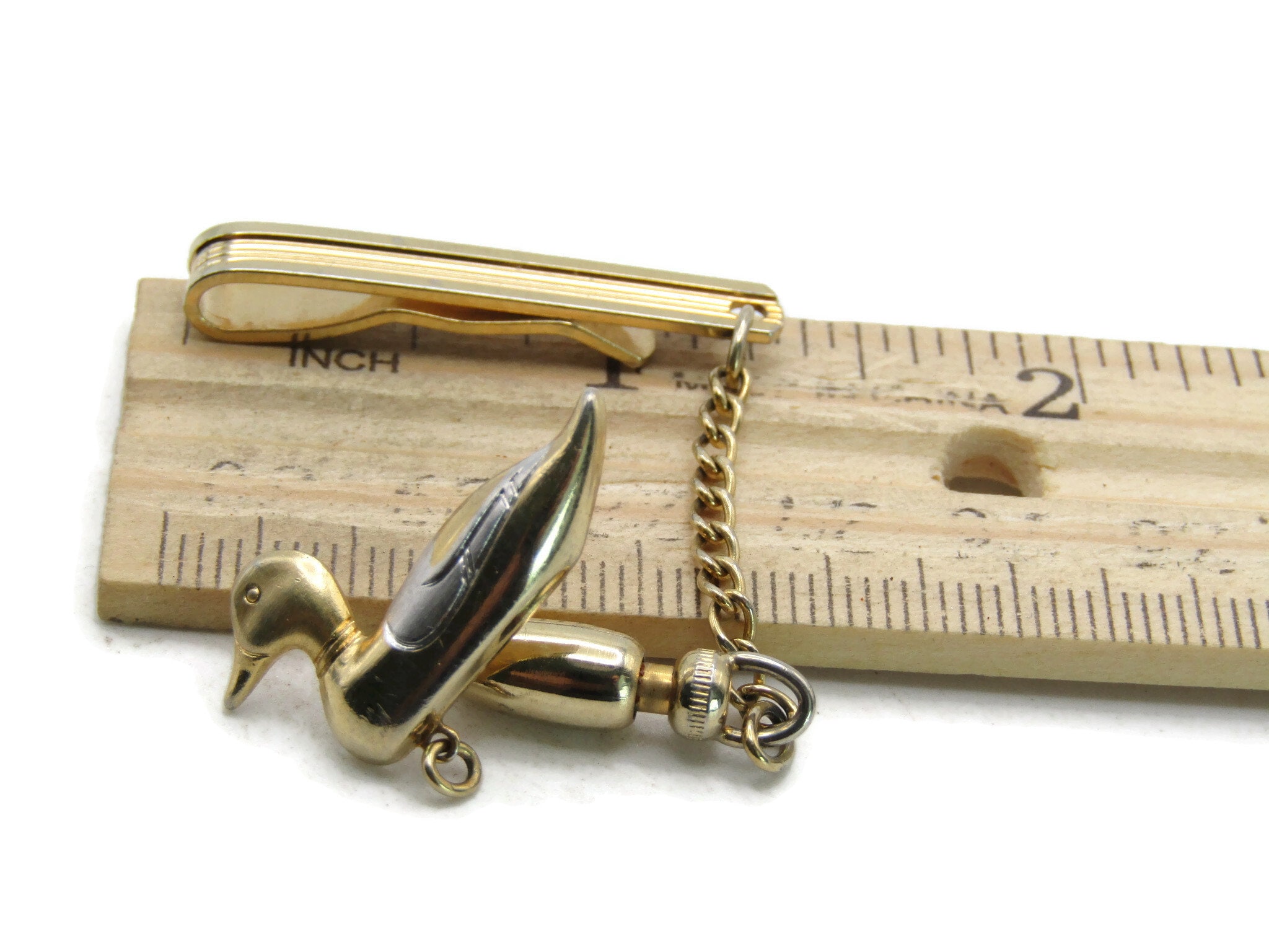 Silver and Gold Tone Duck Tie Clip & Chain Set Classic Design Tie Bar Men's Jewelry