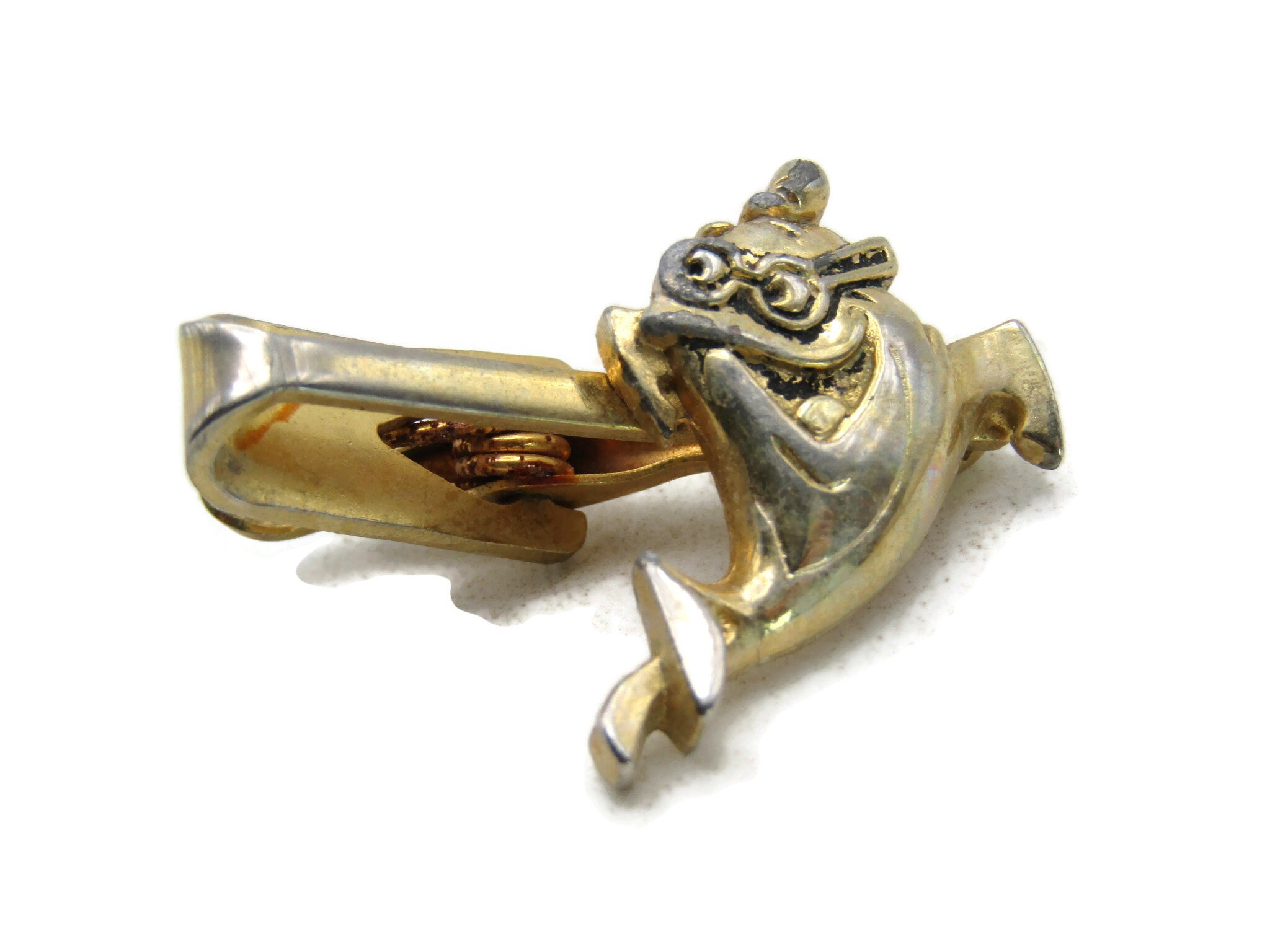 Fish With Glasses Tie Bar Gold Tone Tie Clip Men's Jewelry
