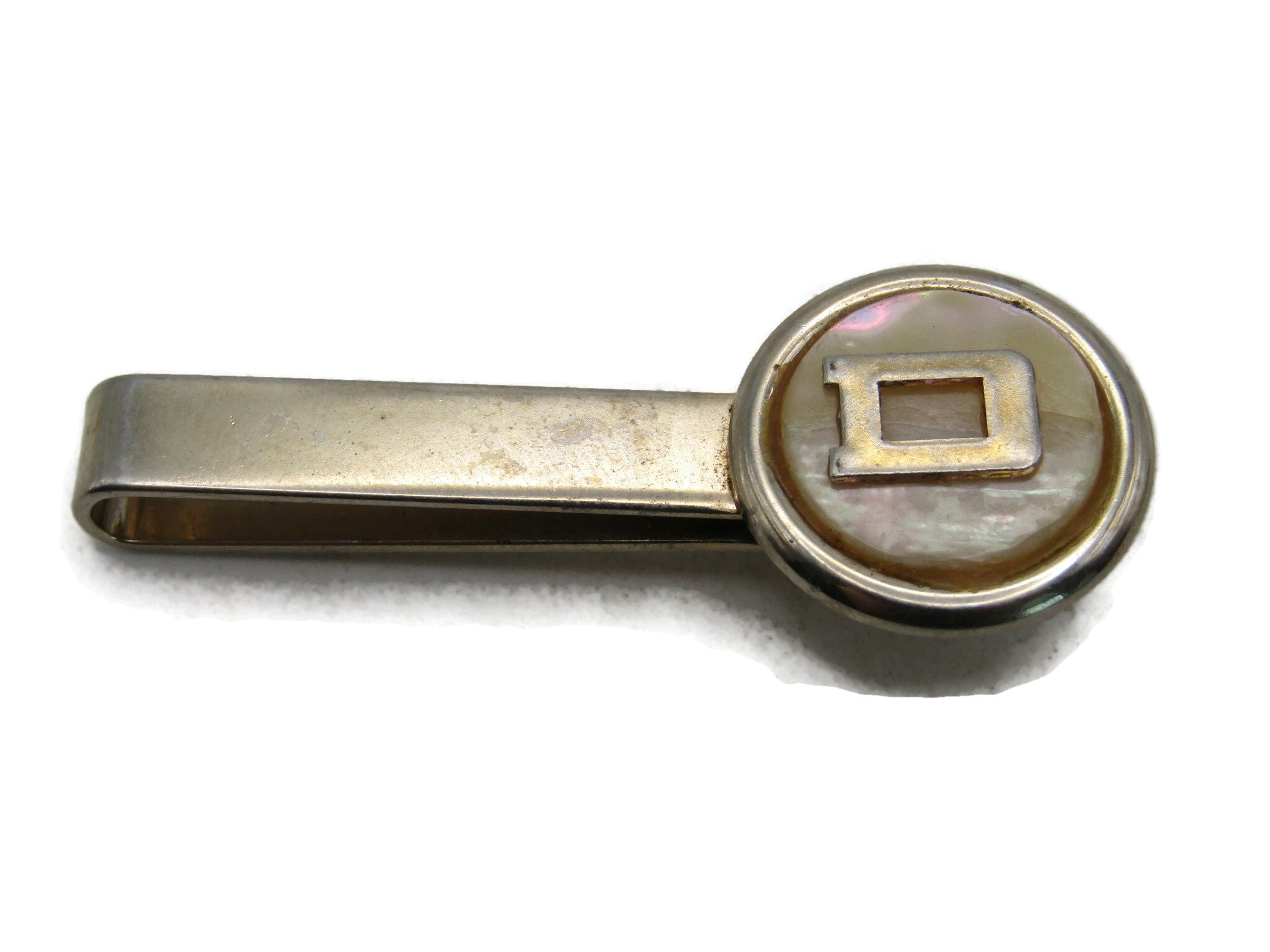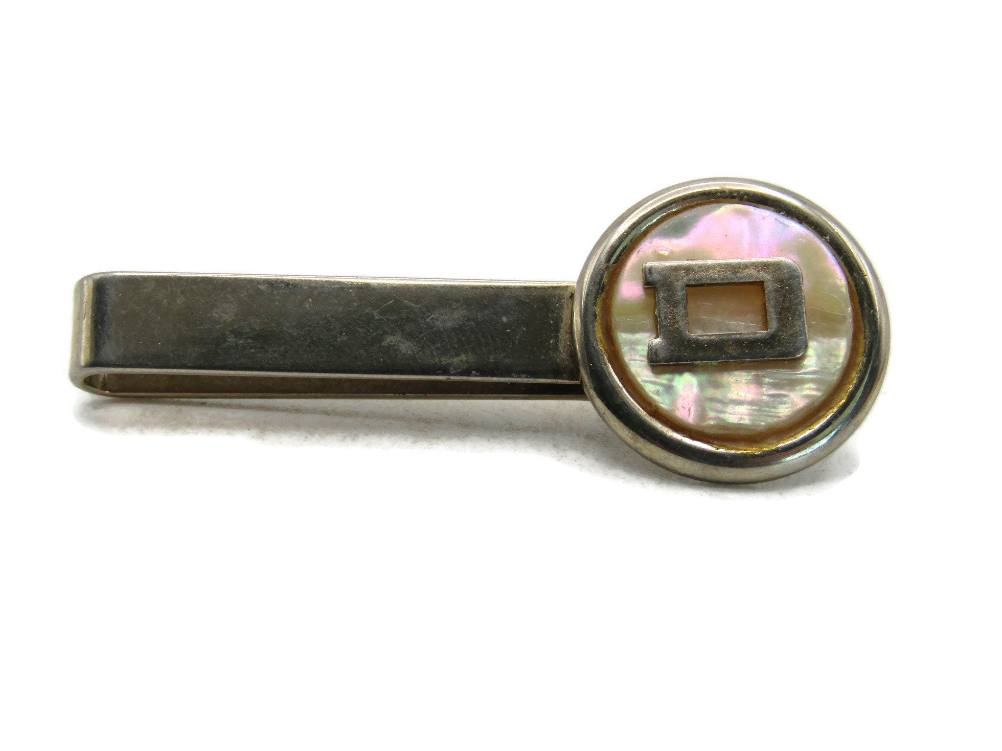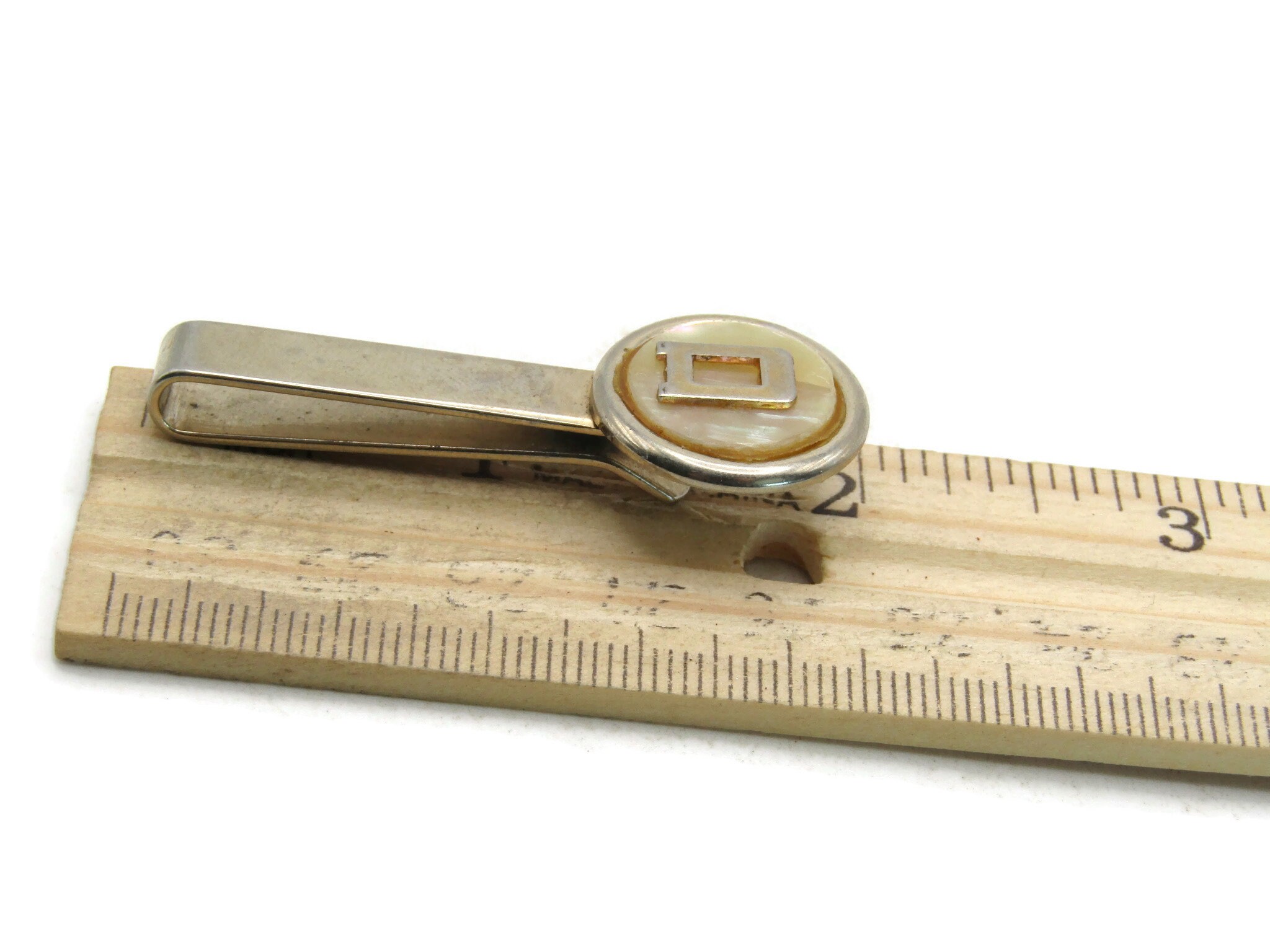 Mother Of Pearl Stone D Letter Initial Monogram Tie Clip Gold Tone Tie Bar Men's Jewelry