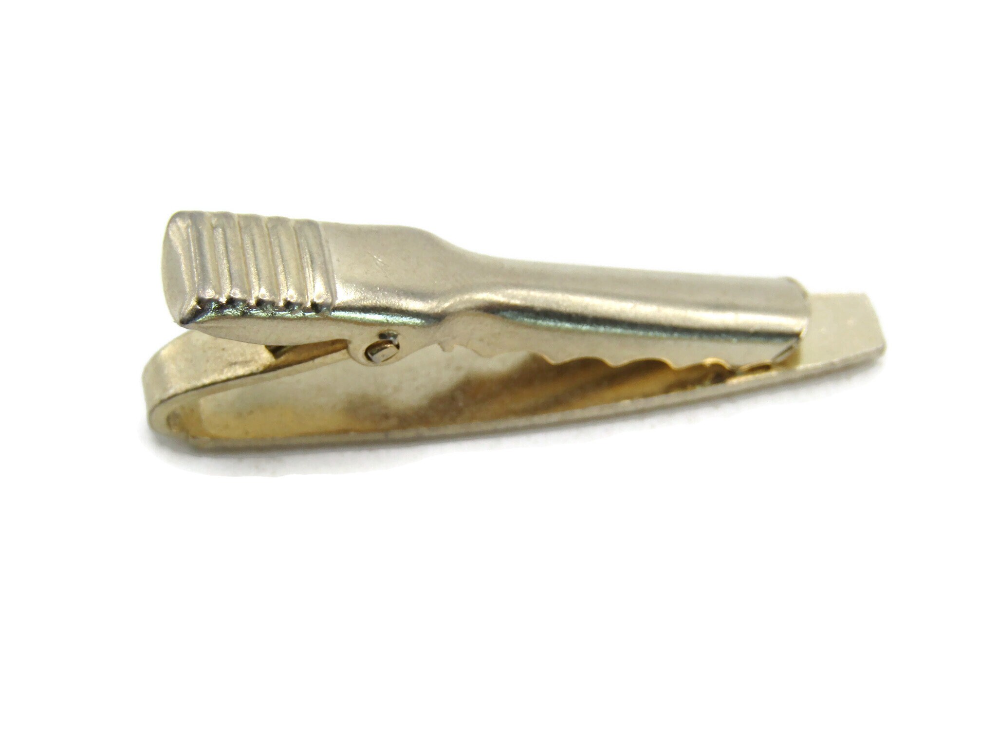 Tapered & Textured Gold Tone Tie Clip Modernist Tie Bar Men's Jewelry