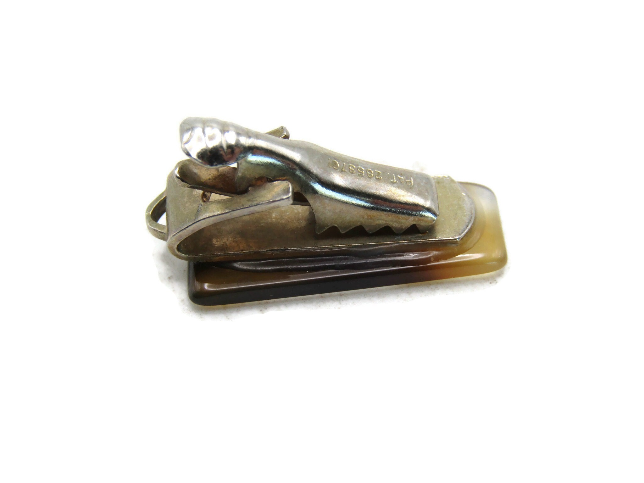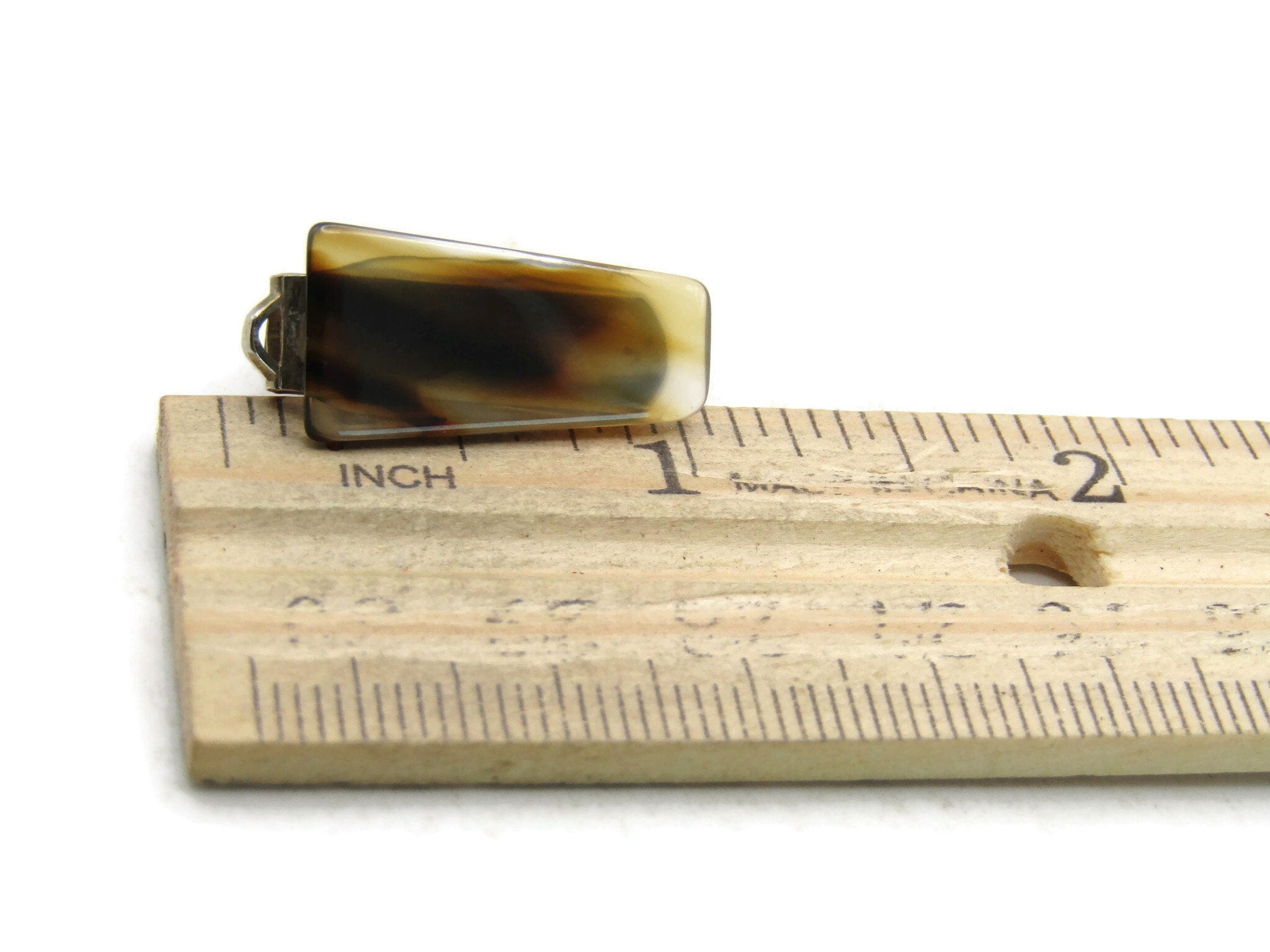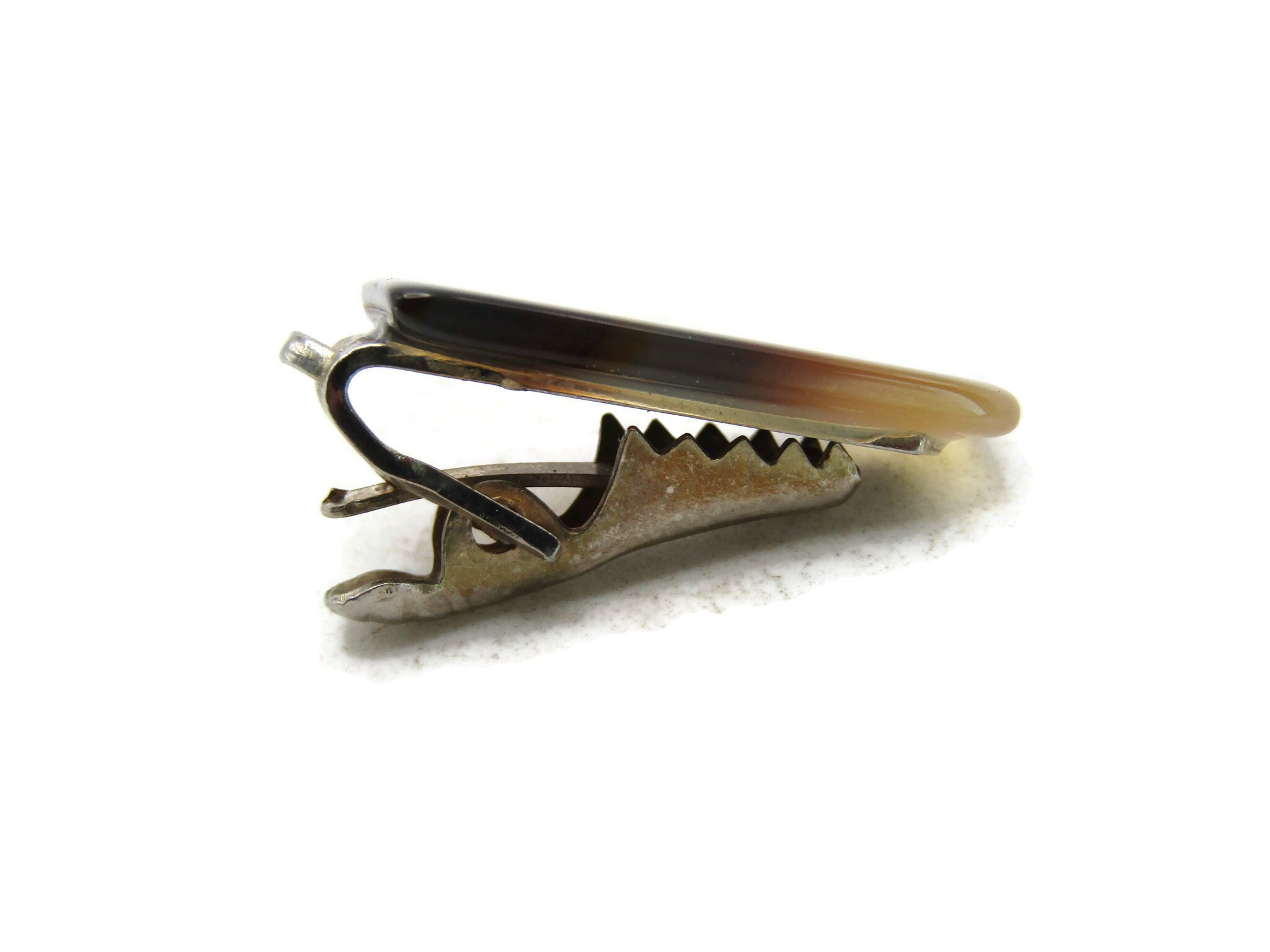 Brown & Clear Stone Front Tie Clip Modernist Tie Bar Gold Tone Men's Jewelry
