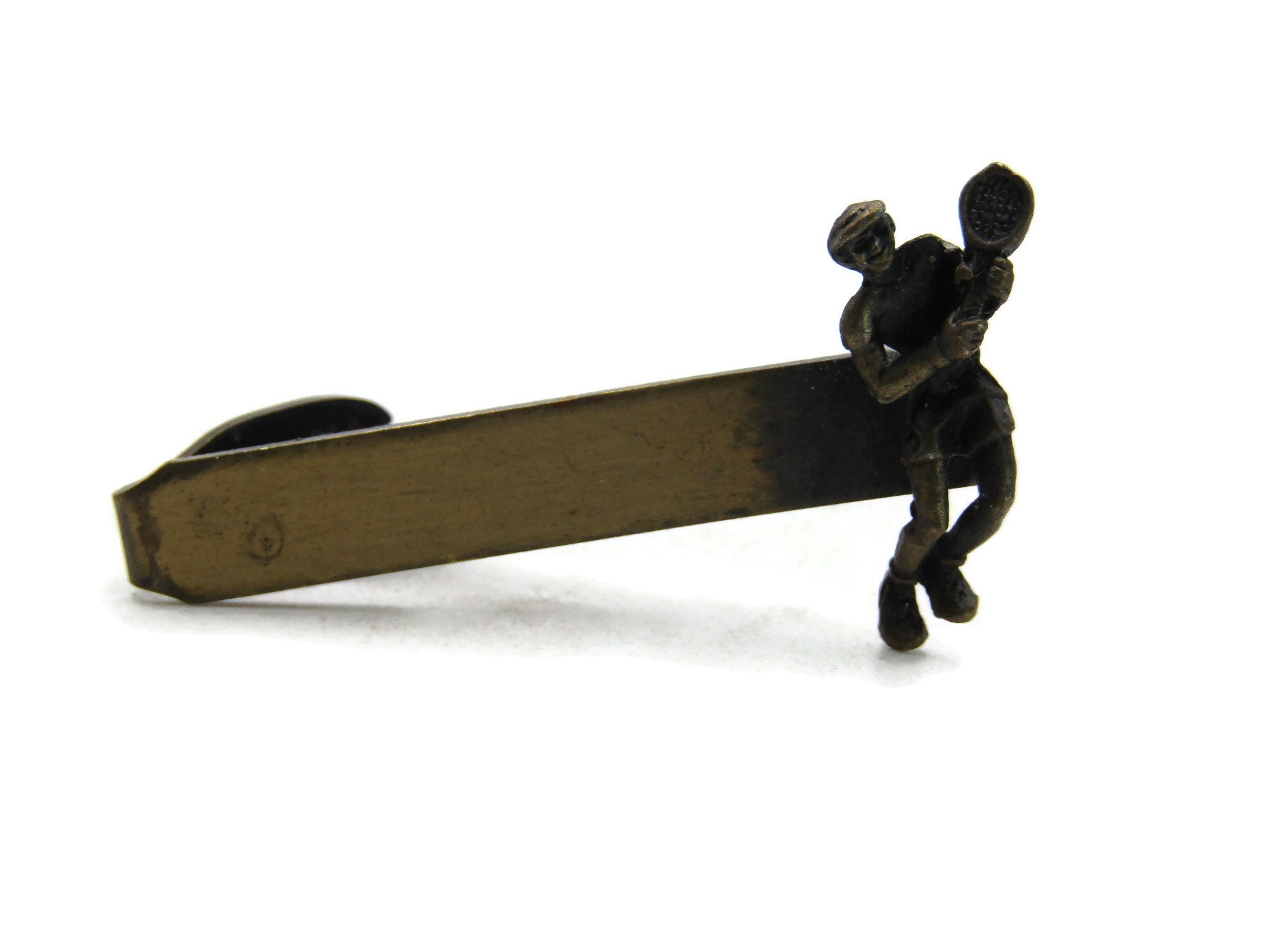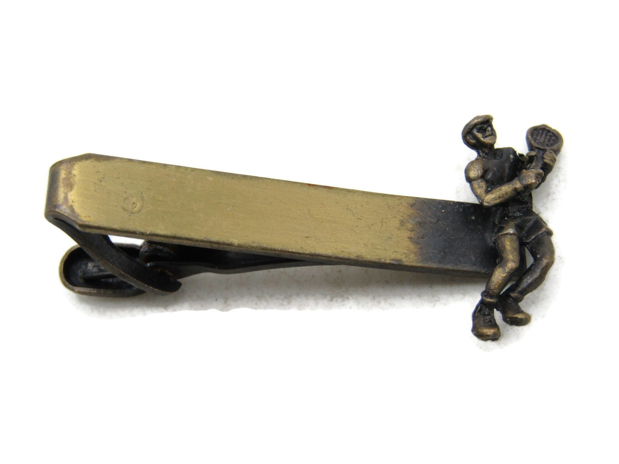 Tennis Player Tie Bar Gold Tone Sports Tie Clip Men's Jewelry