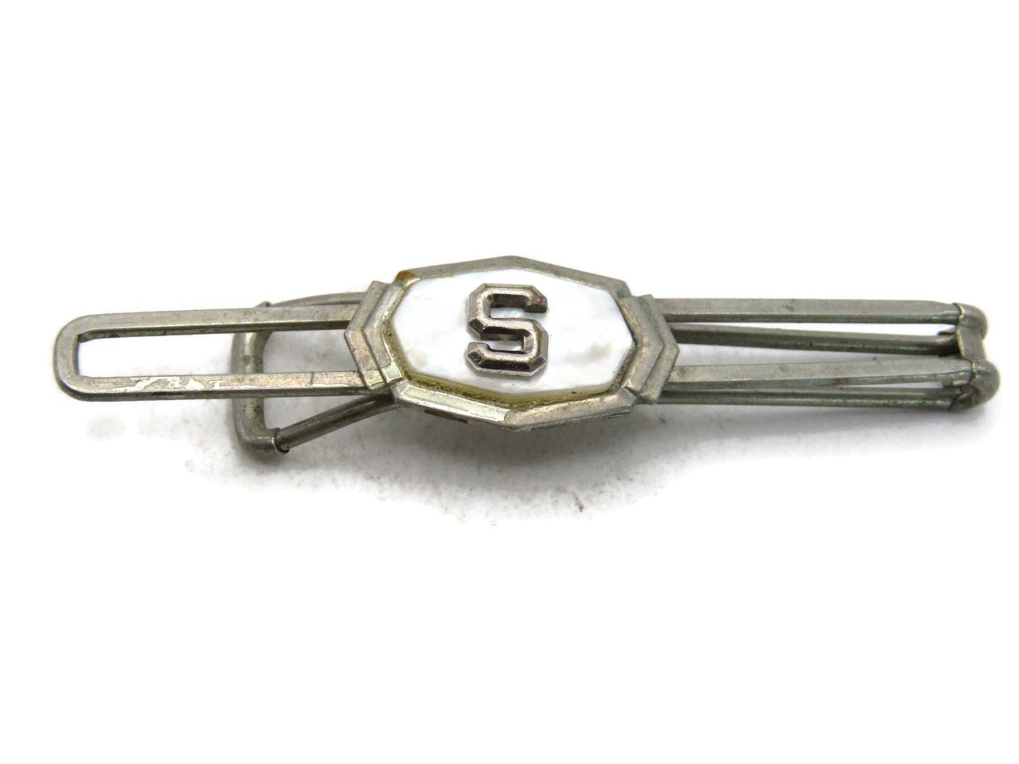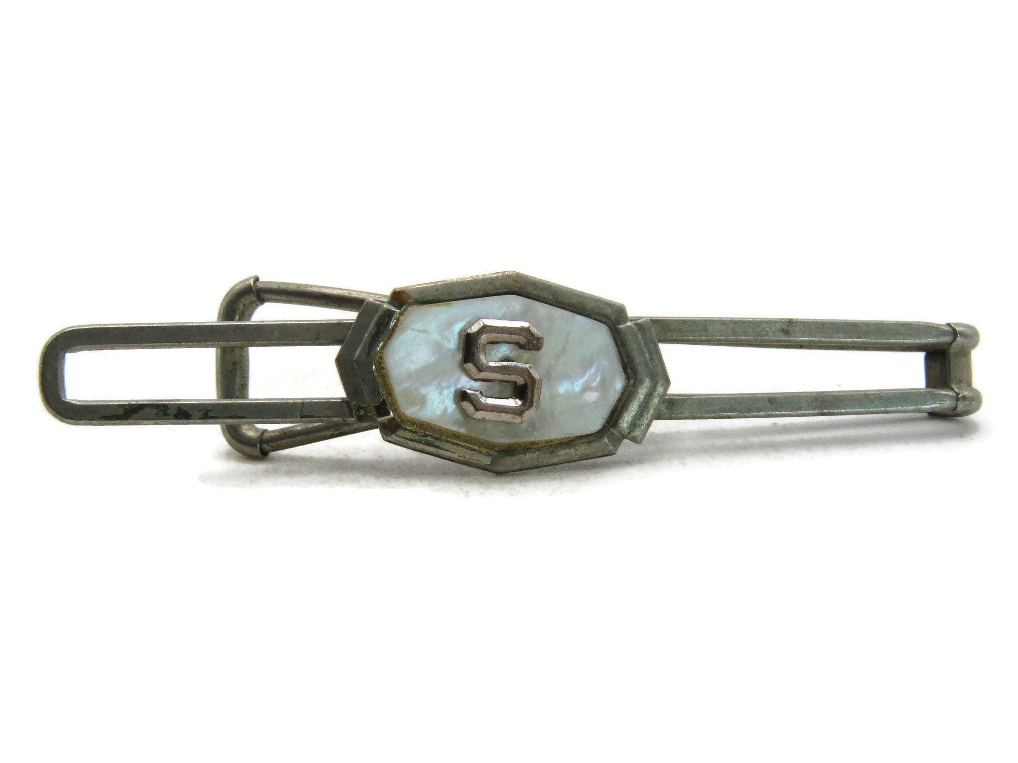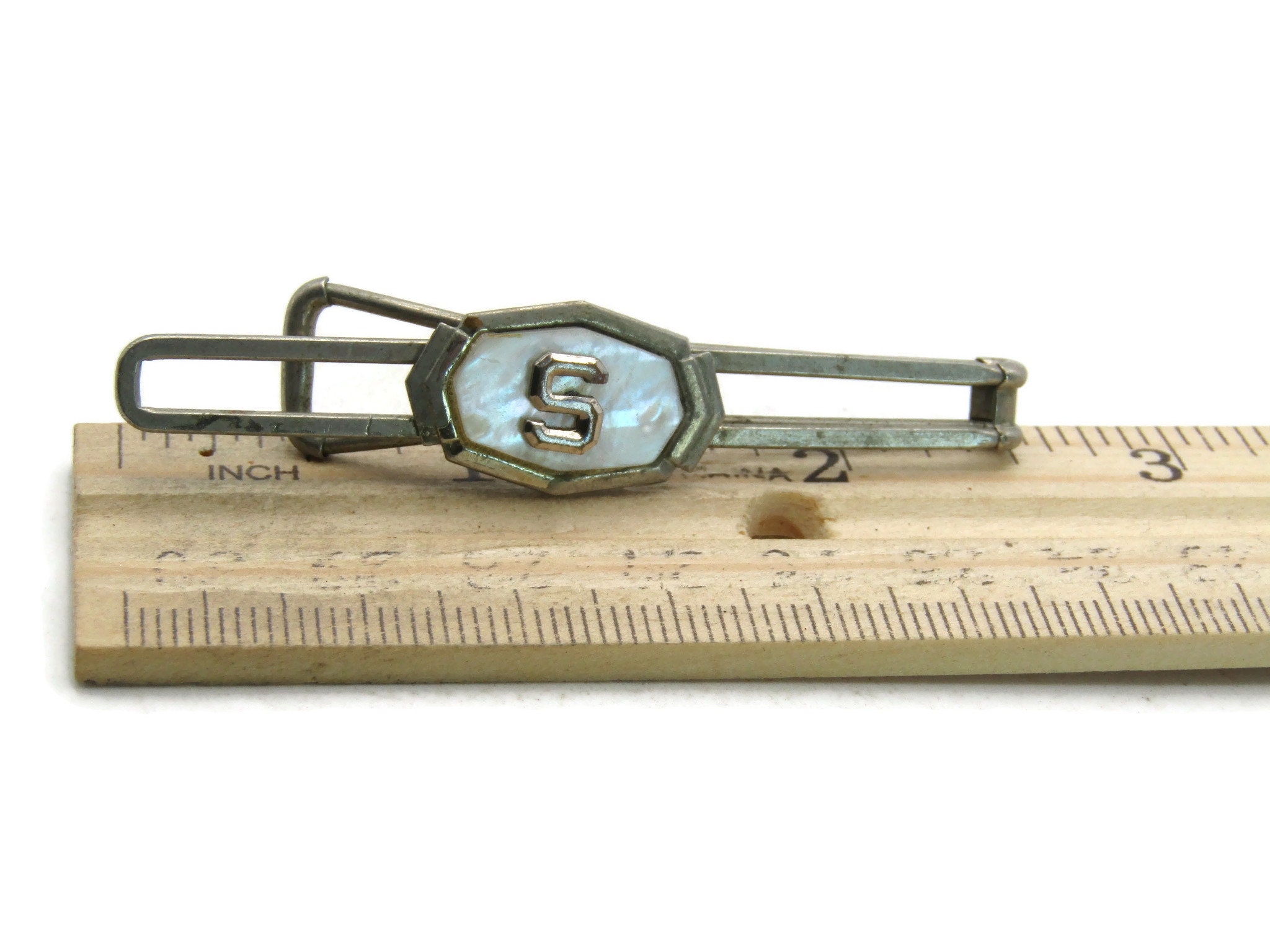 Mother Of Pearl Inlay S Letter Initial Monogram Open Body Tie Clip Silver Tone Mne's Jewelry