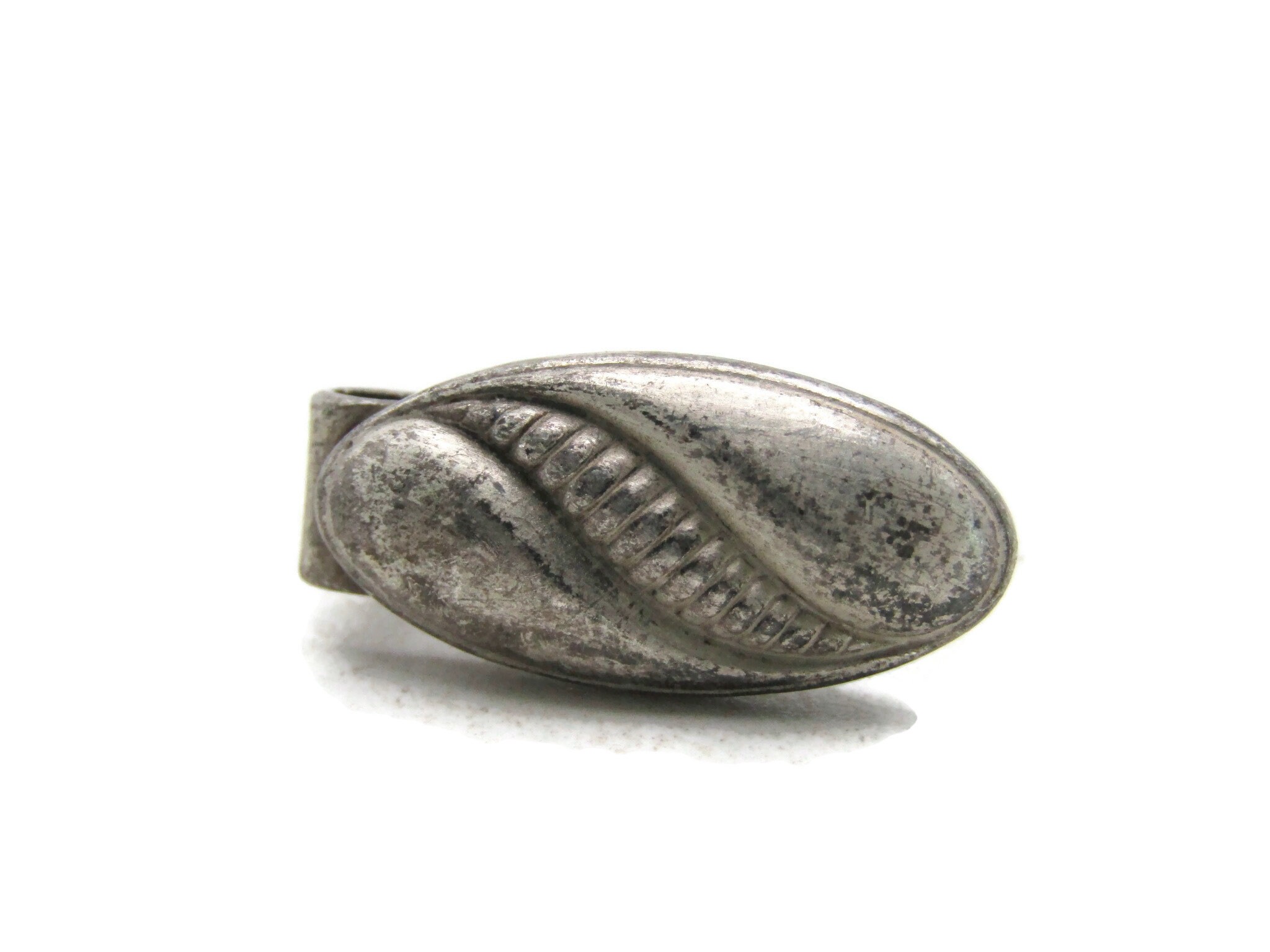 Oval Vintage Textured Line Tie Bar Silver Tone Industrial Tie Clip Men's Jewelry