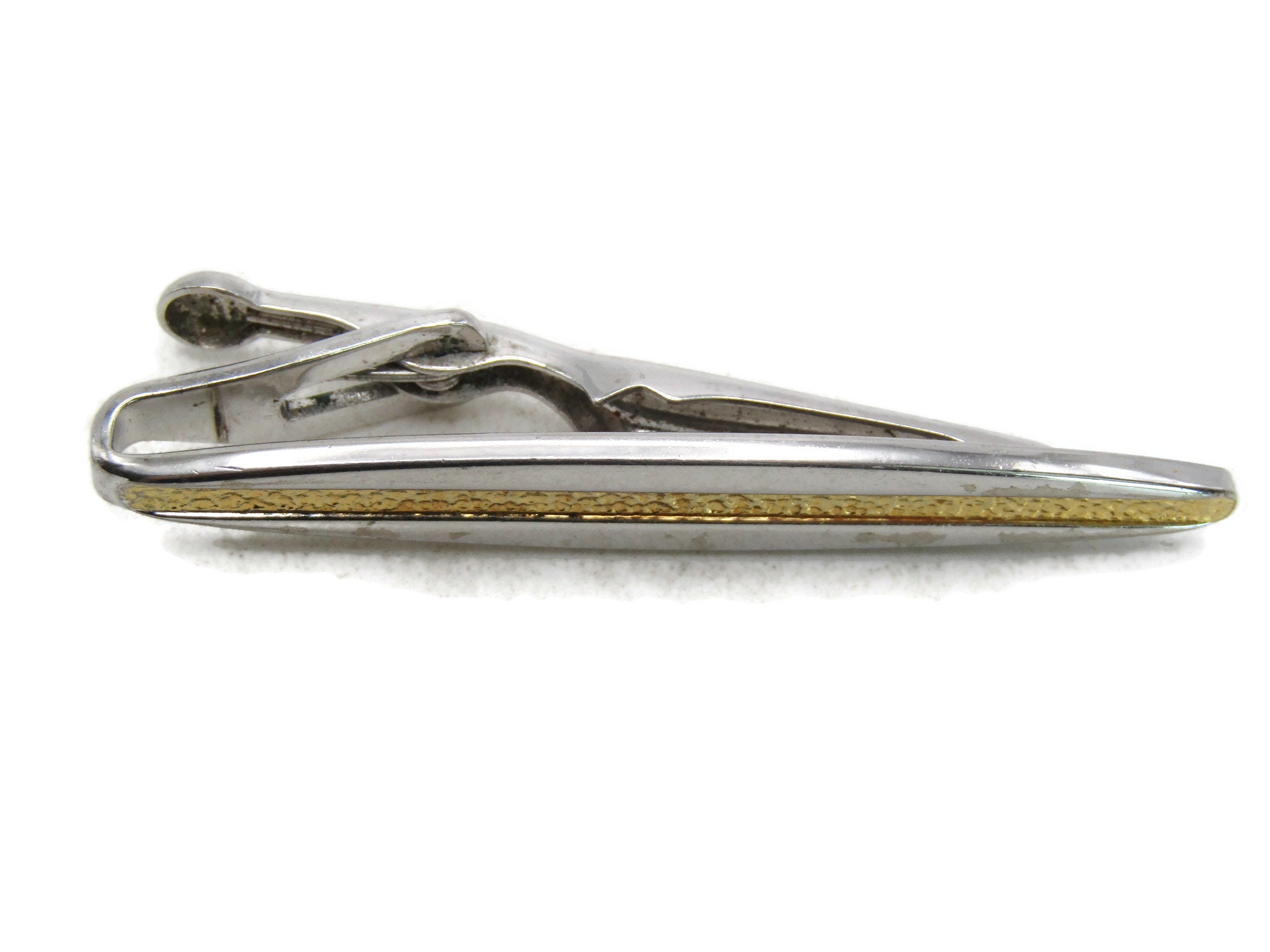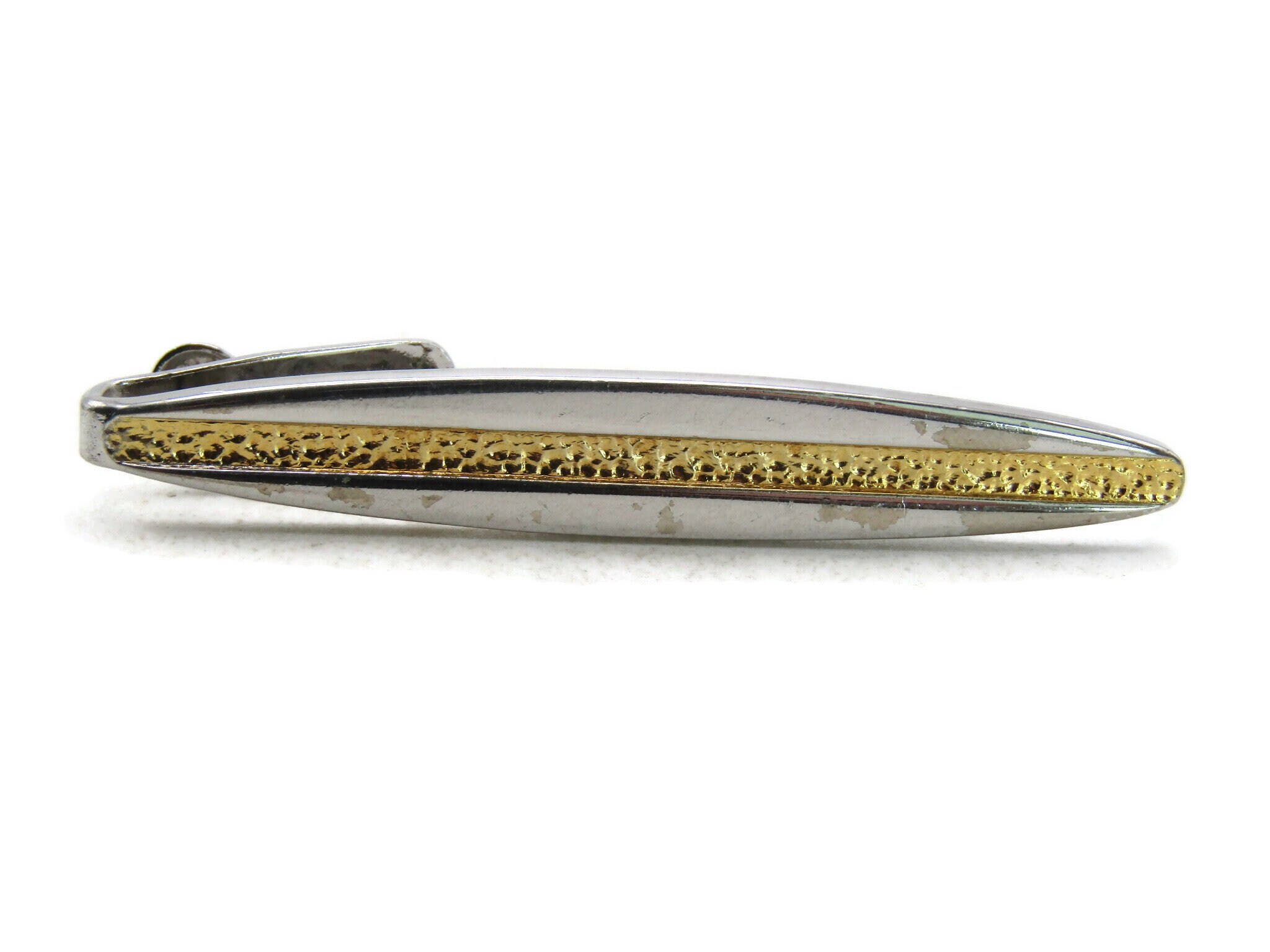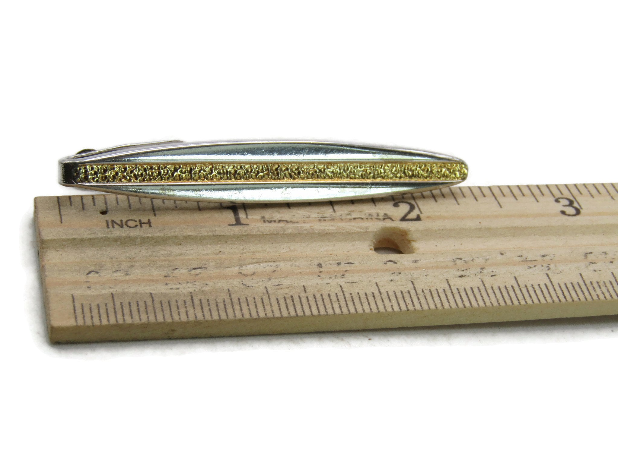 Rounded Tie Bar Textured Gold Tone Center Silver Tone Tie Bar Modernist Men's Jewelry