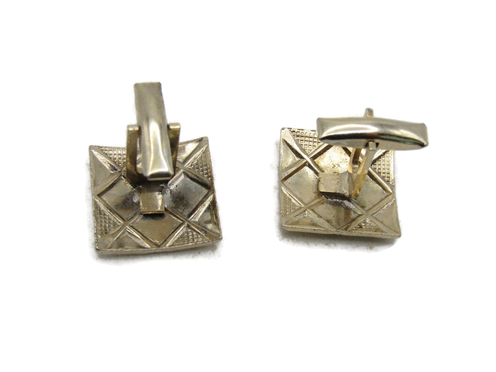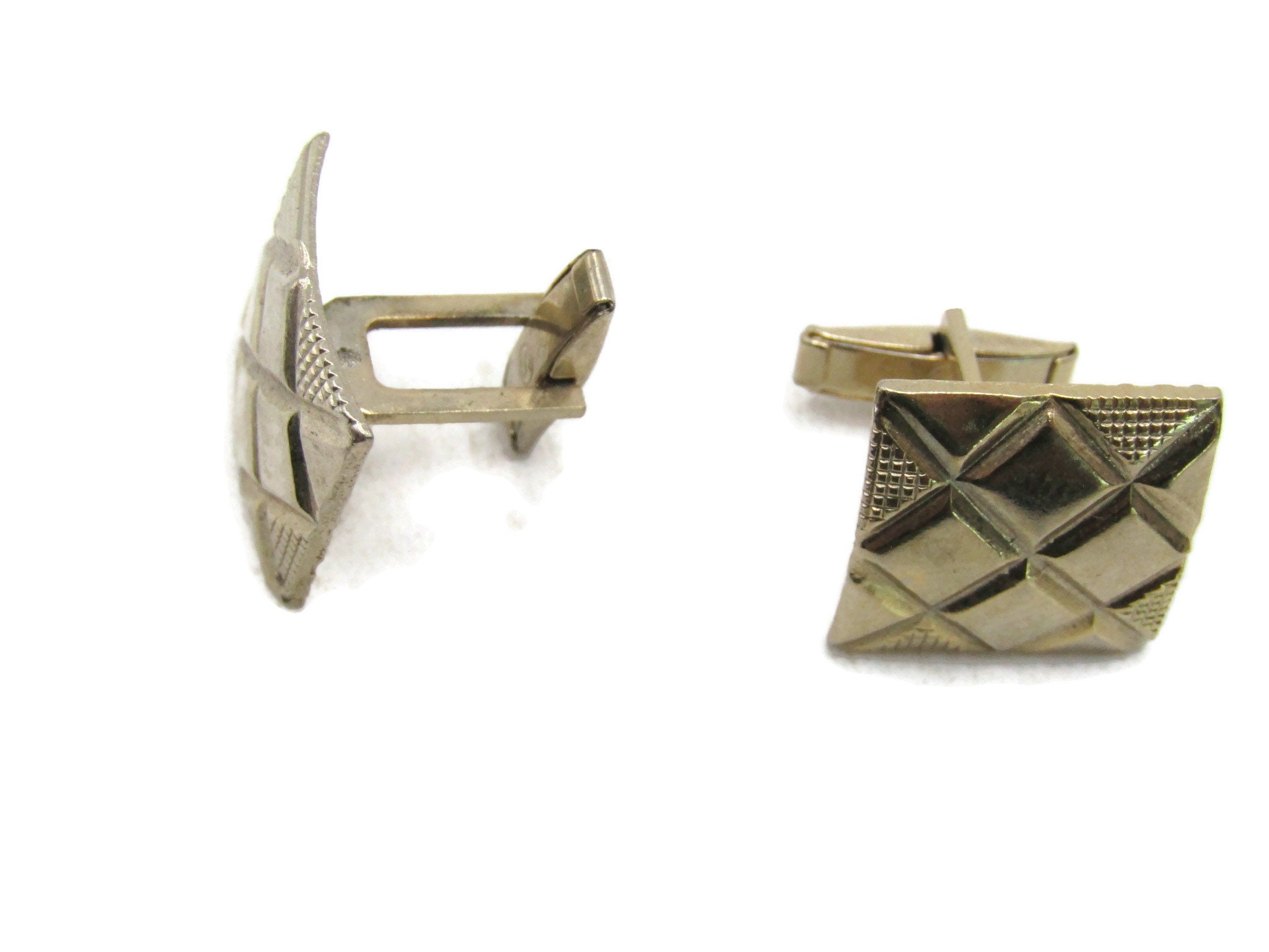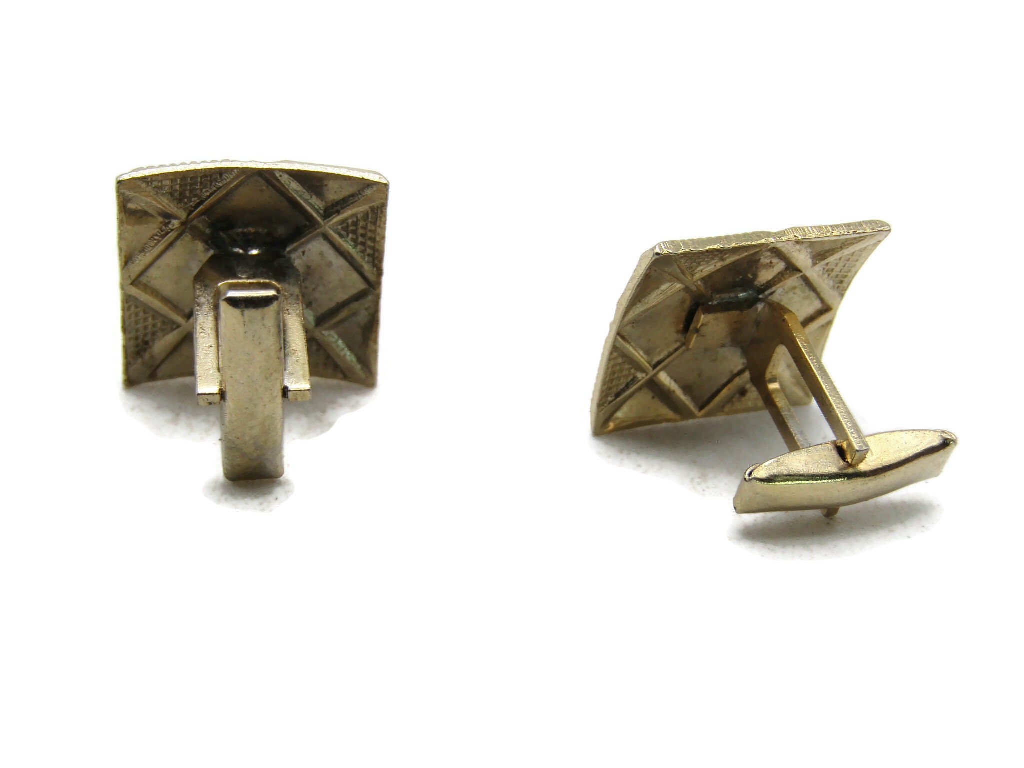 Geometric Diamond Pattern Cuff Link Gold Tone Men's Jewelry