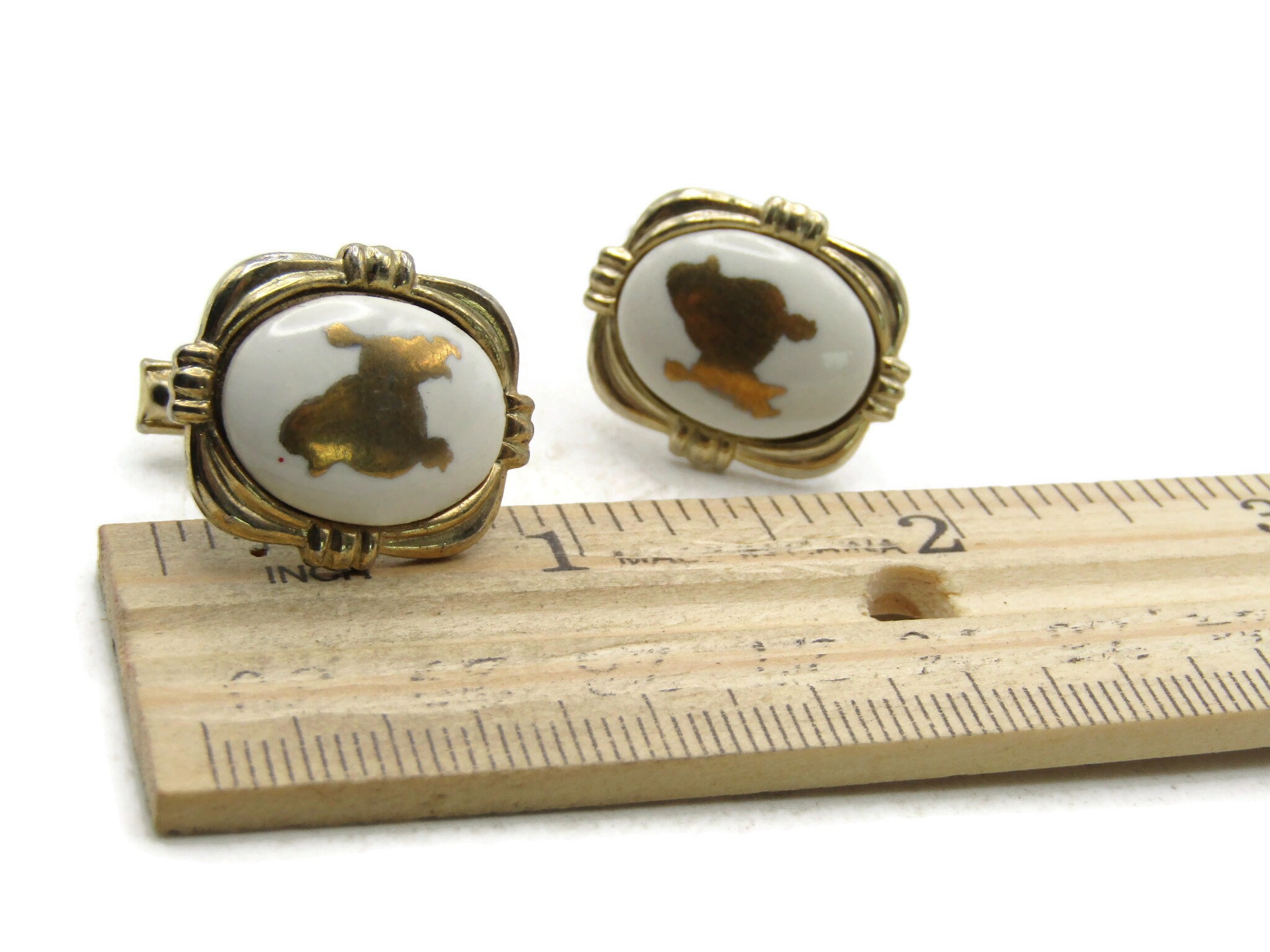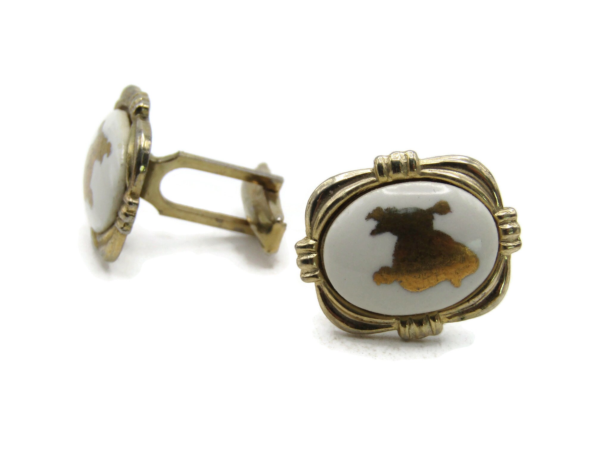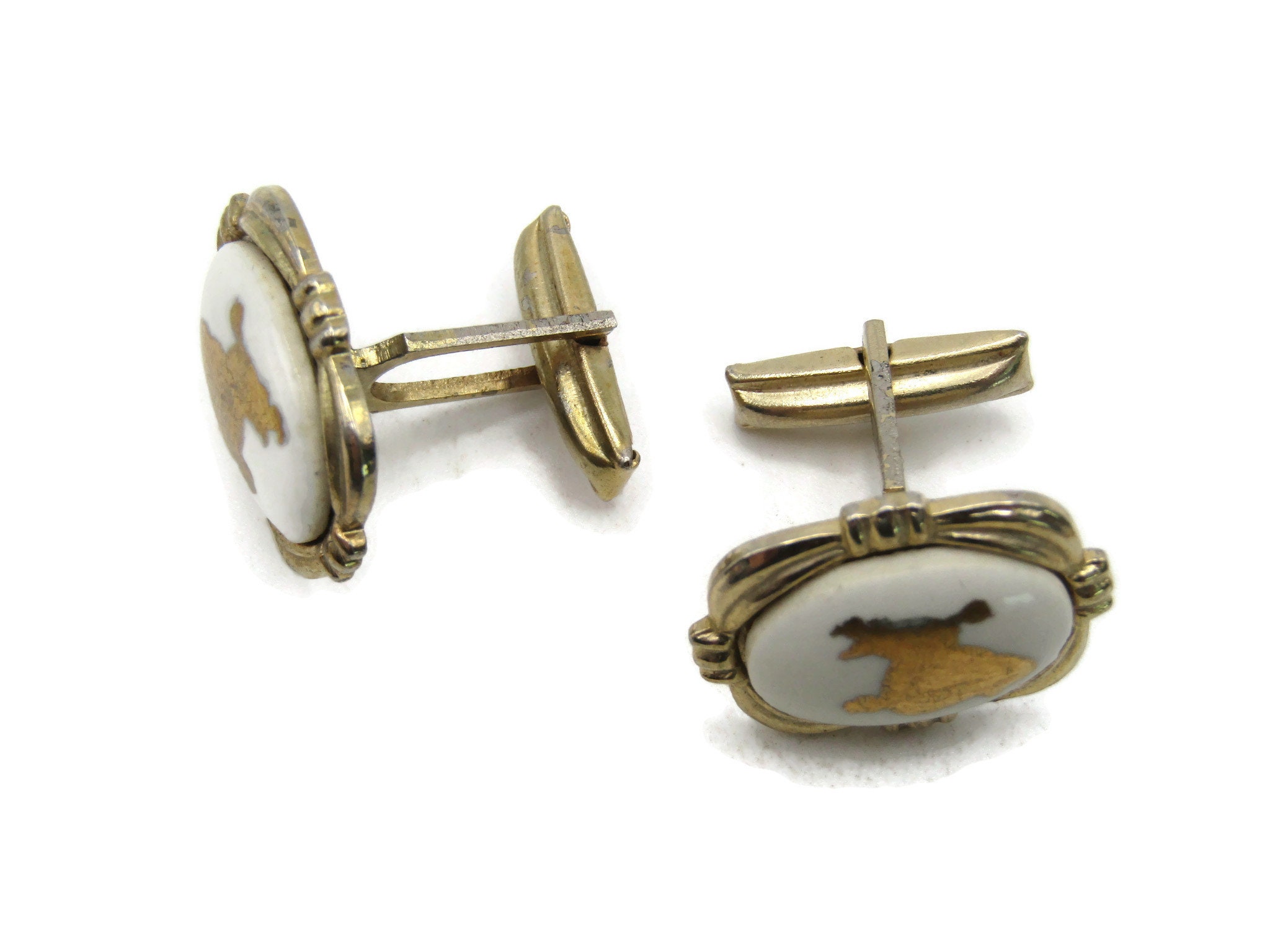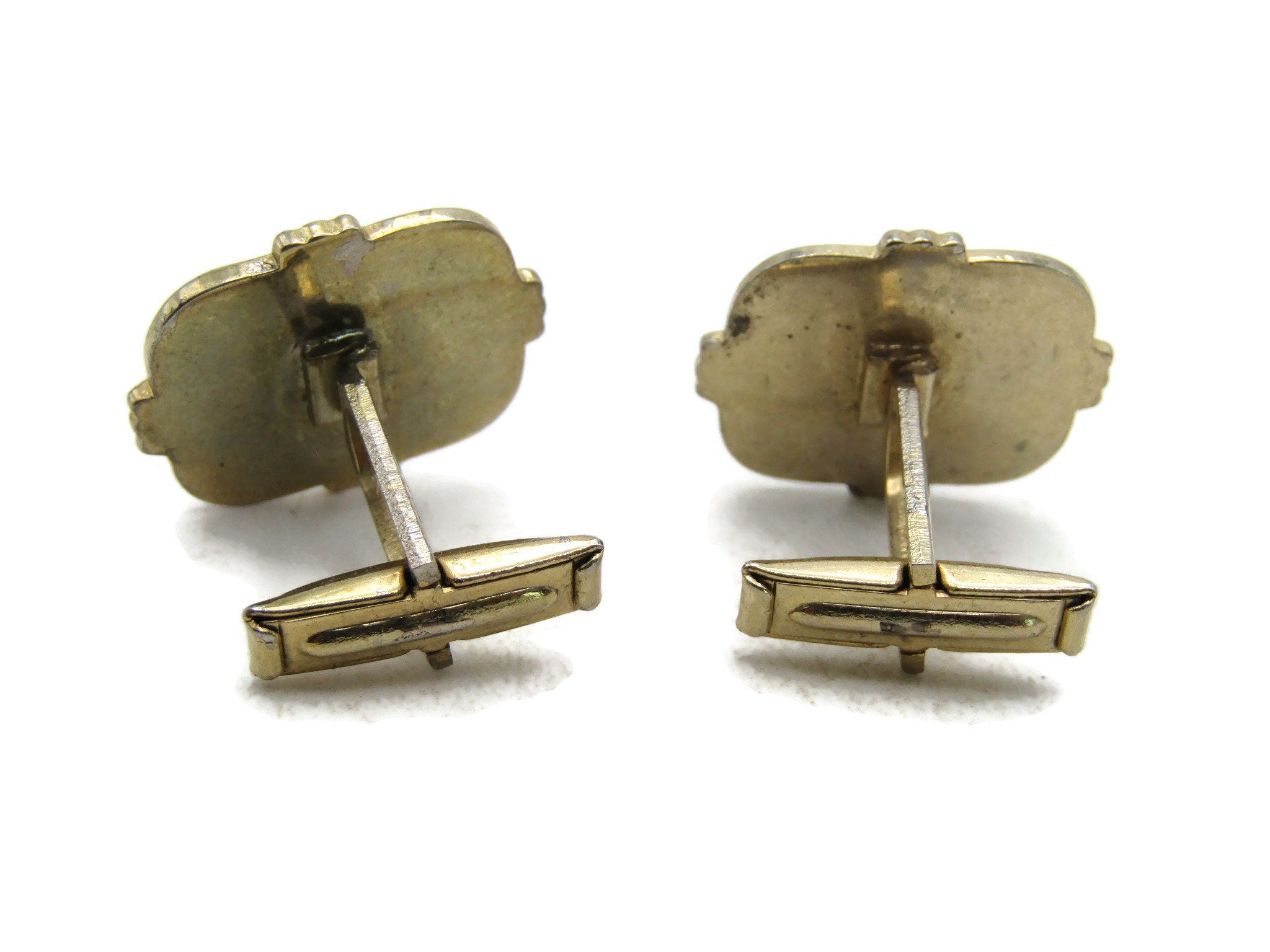 White Stone Inlay Cuff Links Decorative Edge Gold Tone Men's Jewelry