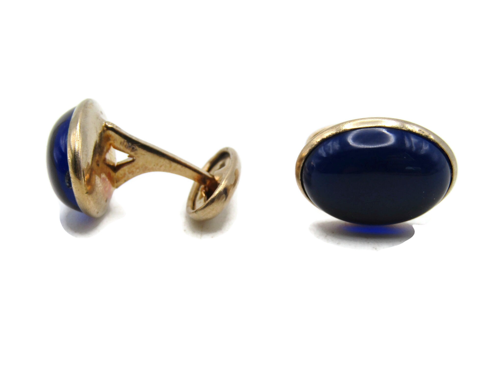 Blue Stone Inlay Cuff Links Gold Tone Men's Jewelry