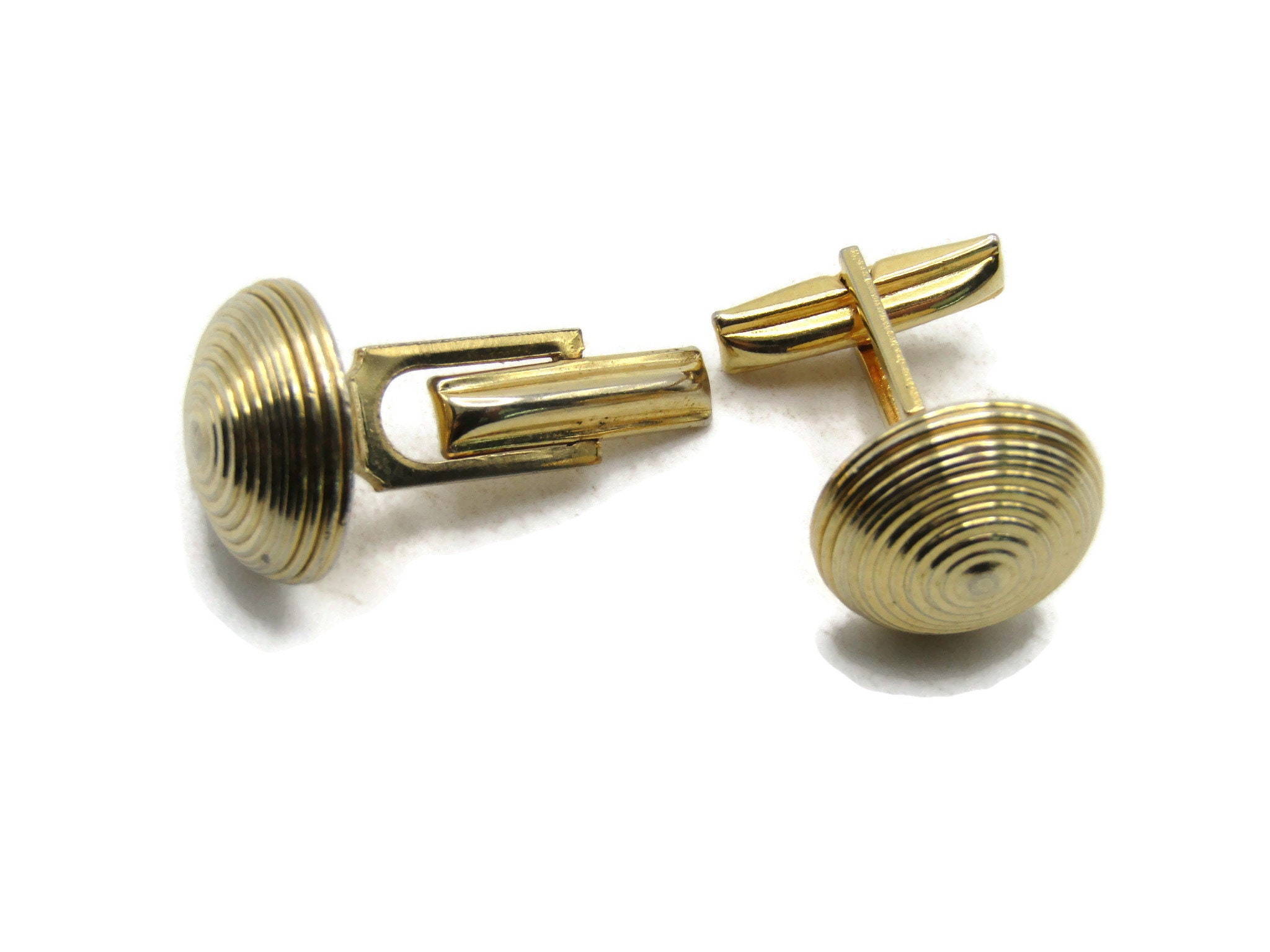 Circle Patterened Cuff Links Gold Tone Men's Jewelry