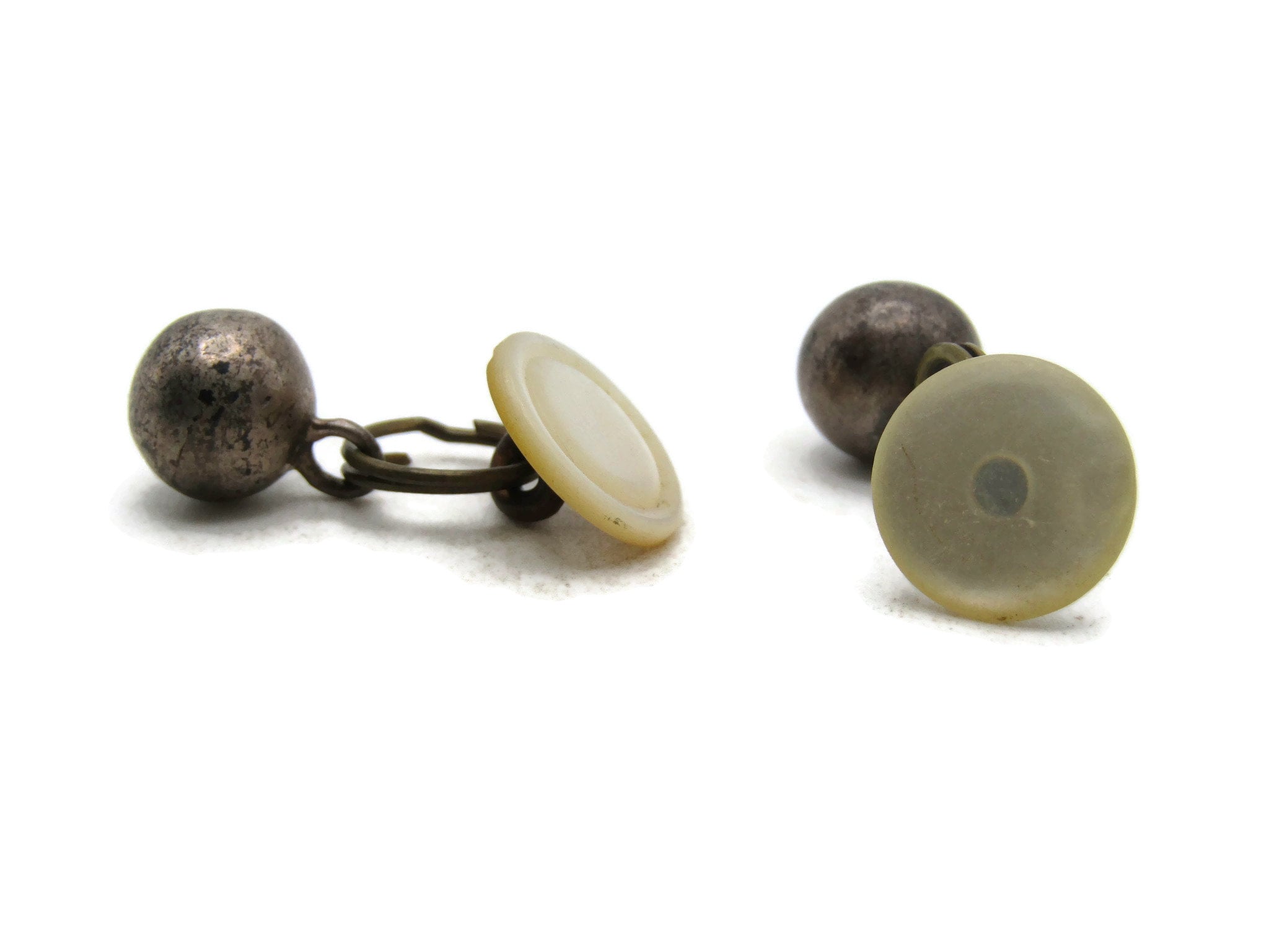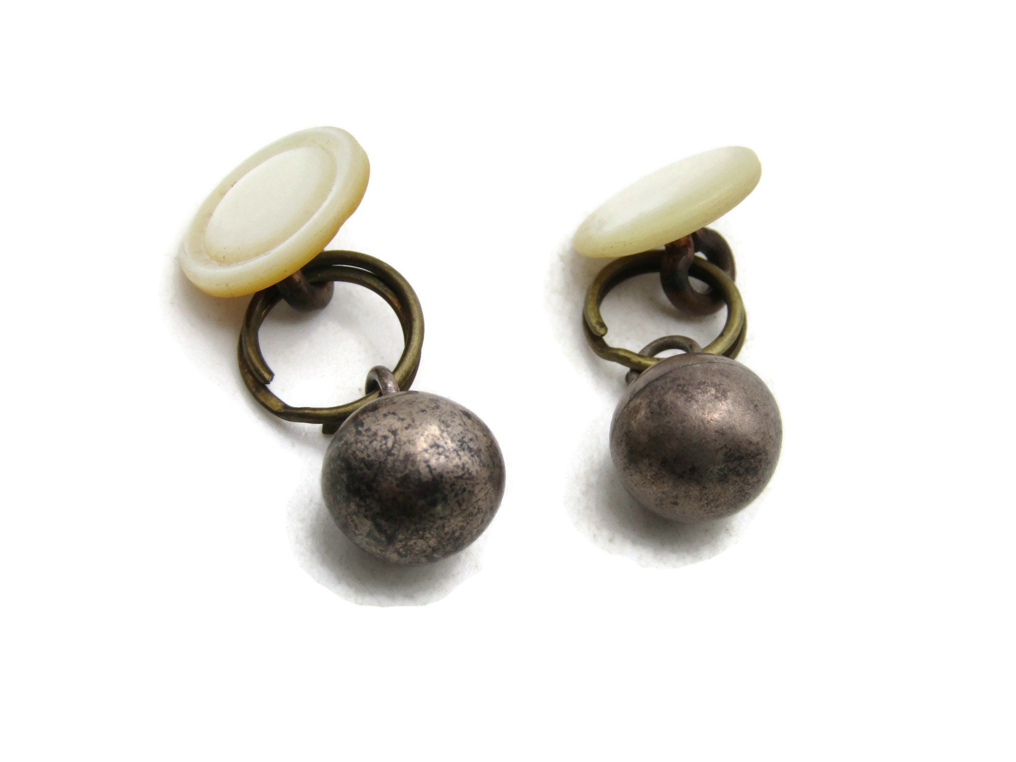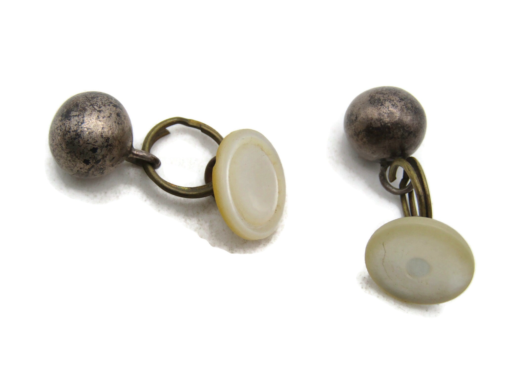 Mother Of Pearl and Ball Cuff Links Silver and Gold Tone Men's Jewelry