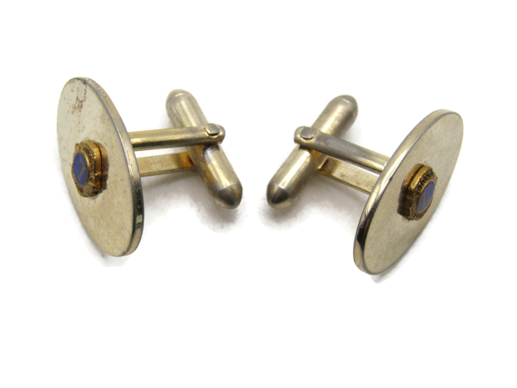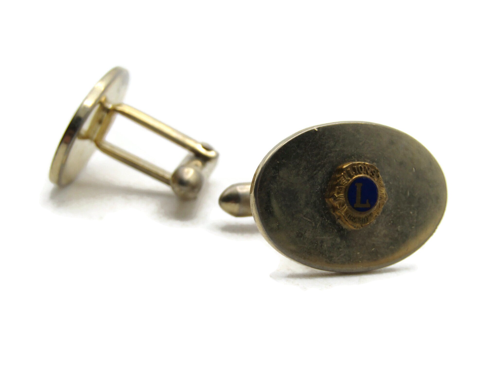 Lions Insignia Center Cuff Links Smooth Gold Tone Men's Jewelry
