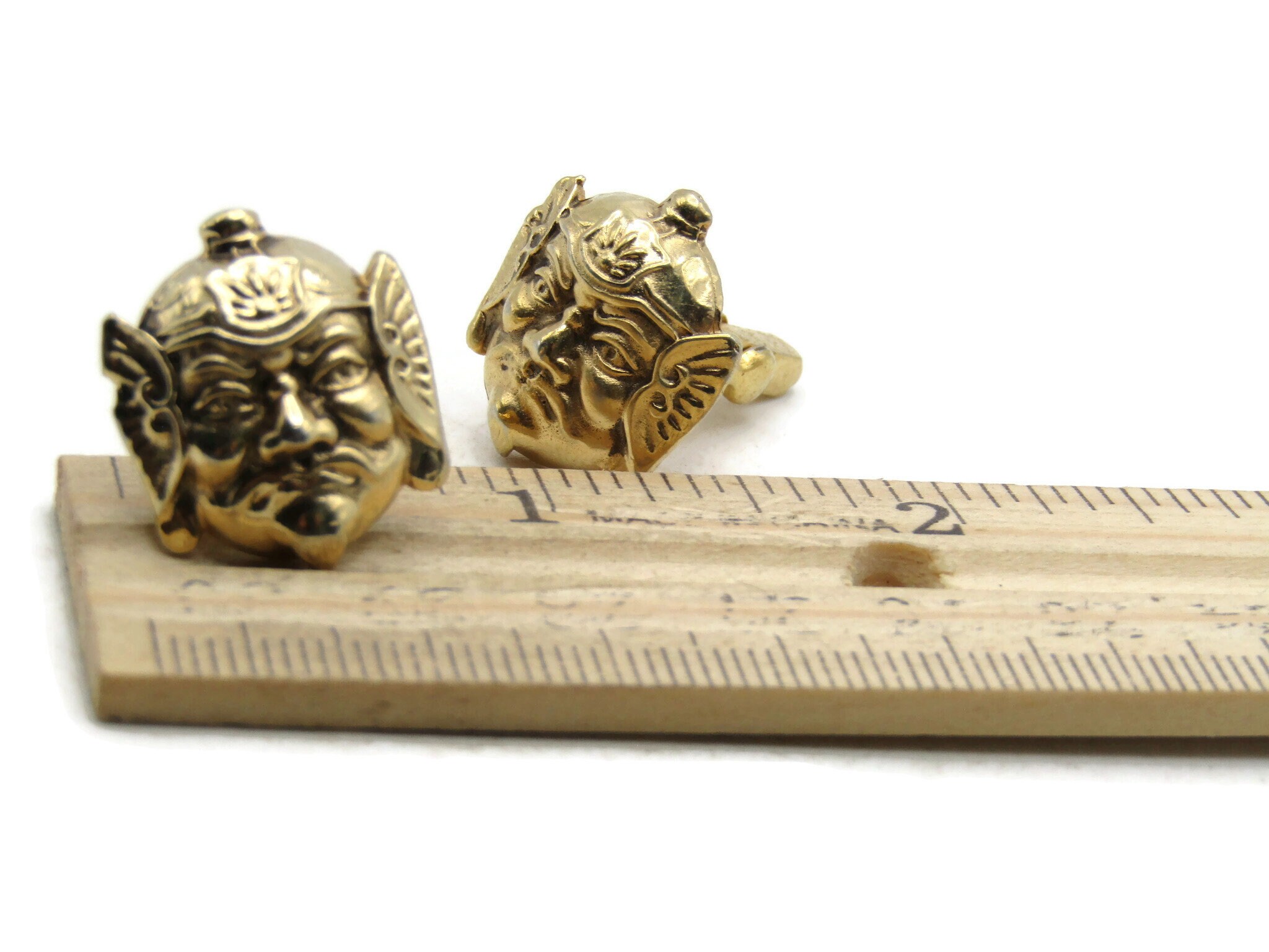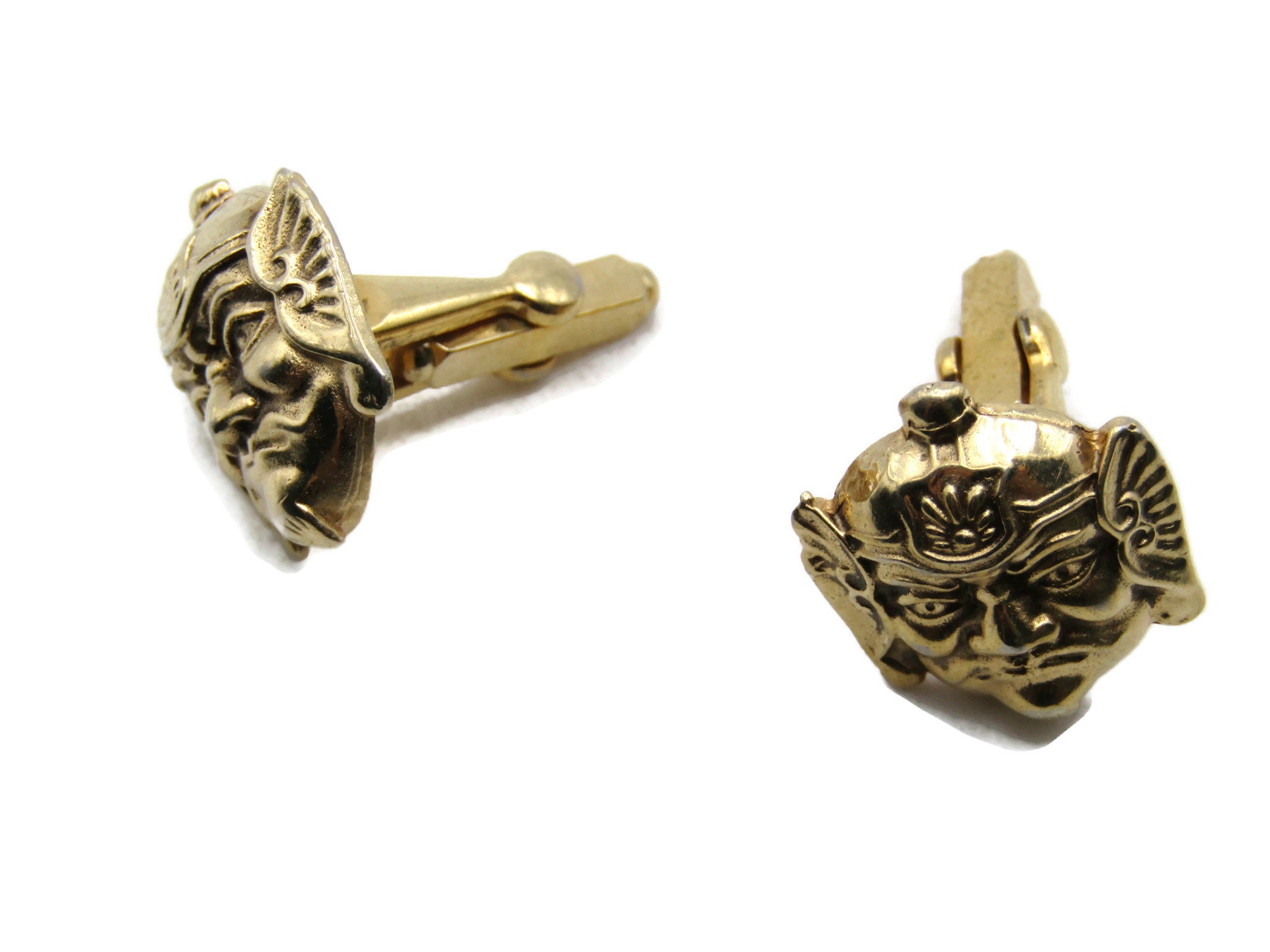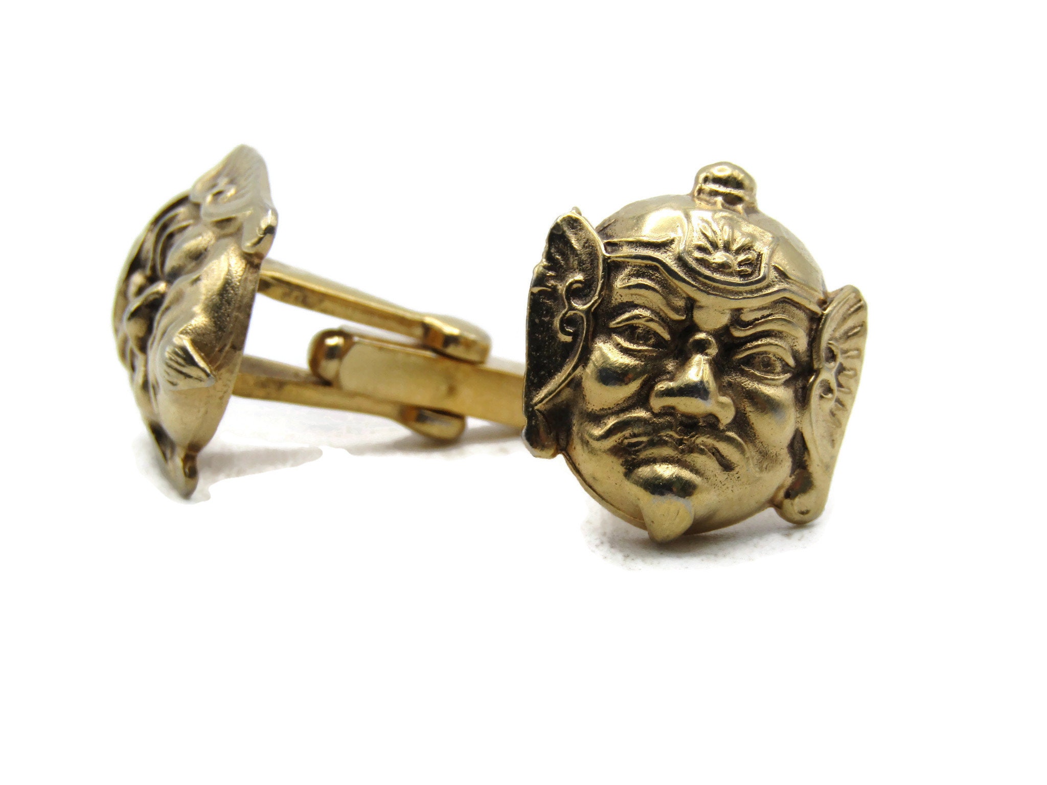 Abstract Faces & Helmet Cuff Links Gold Tone Men's Jewelry
