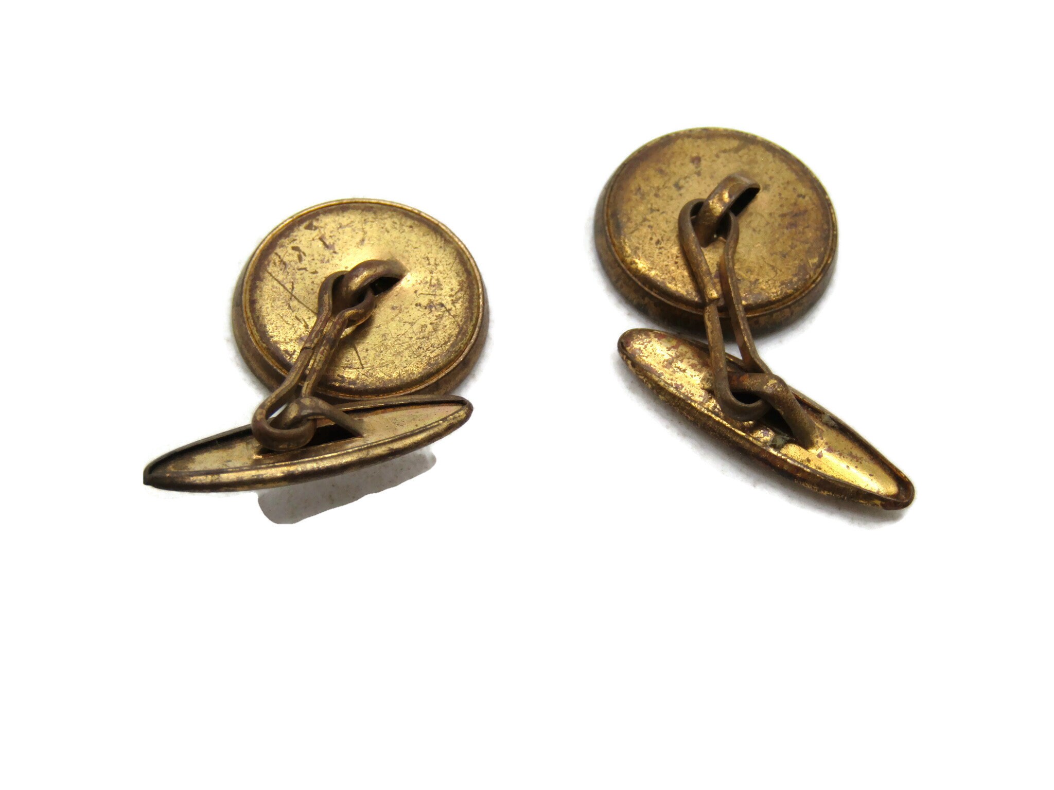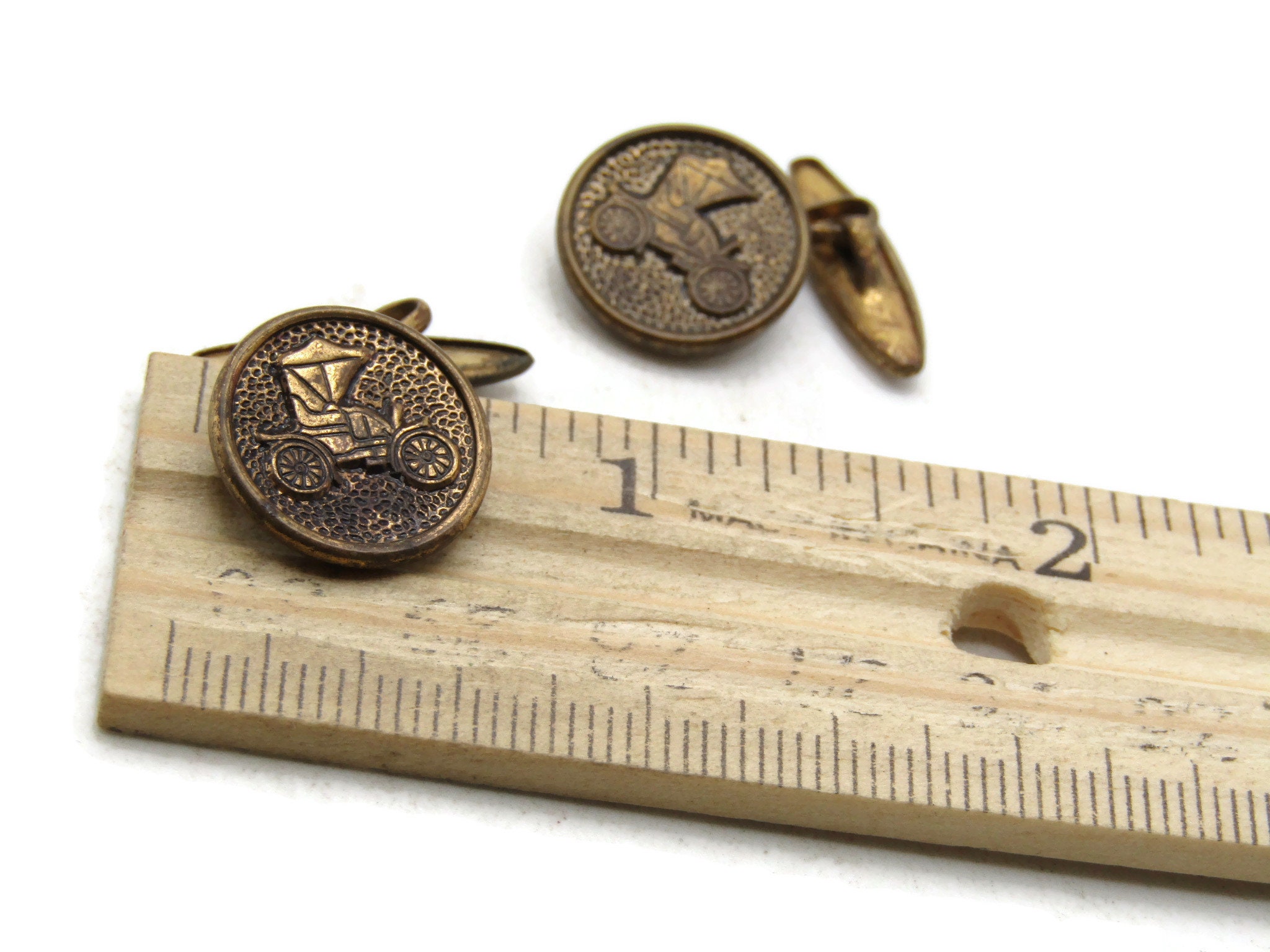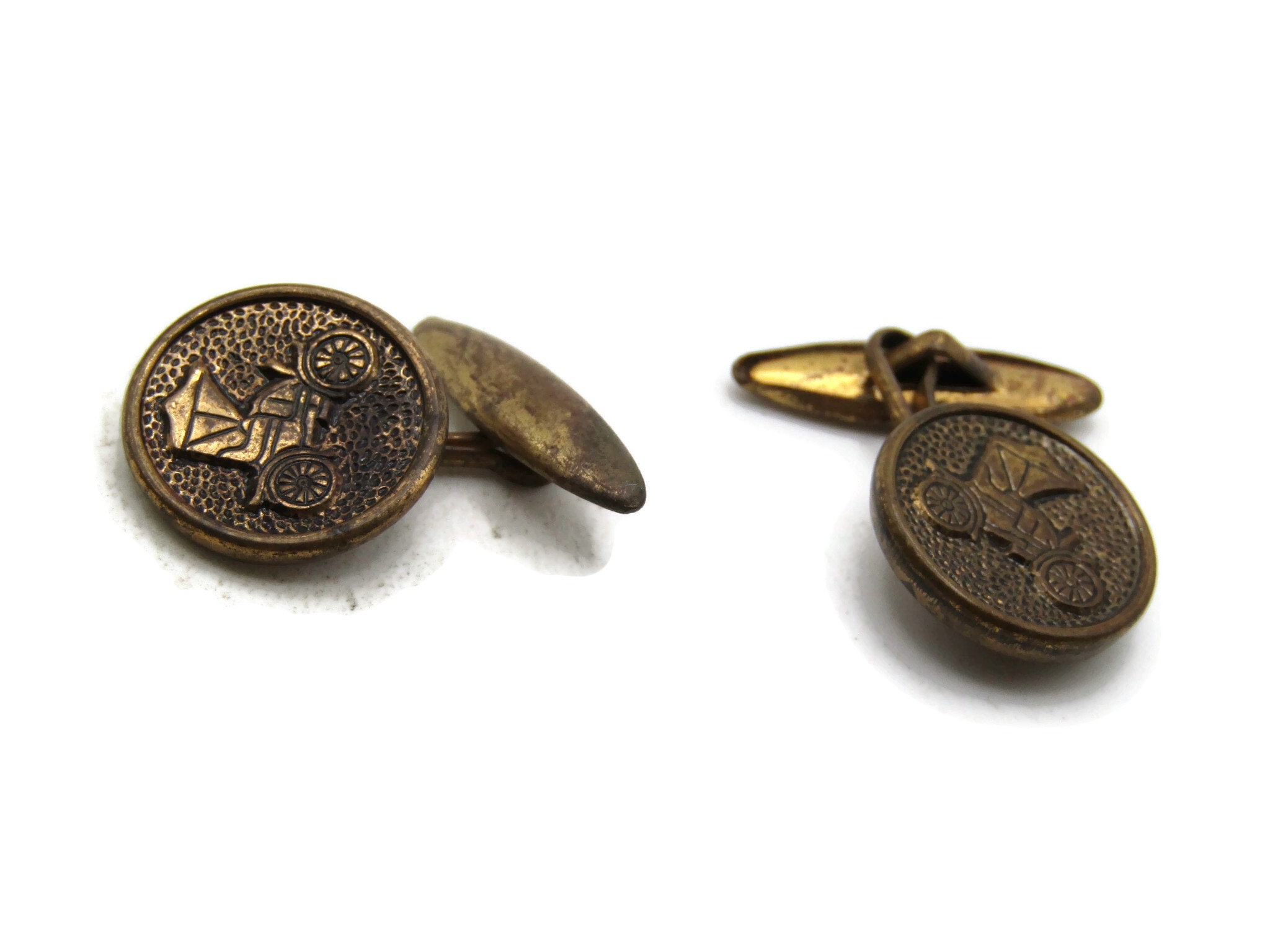 Carriage Car Cuff Links Gold Tone Circle Men's Jewelry