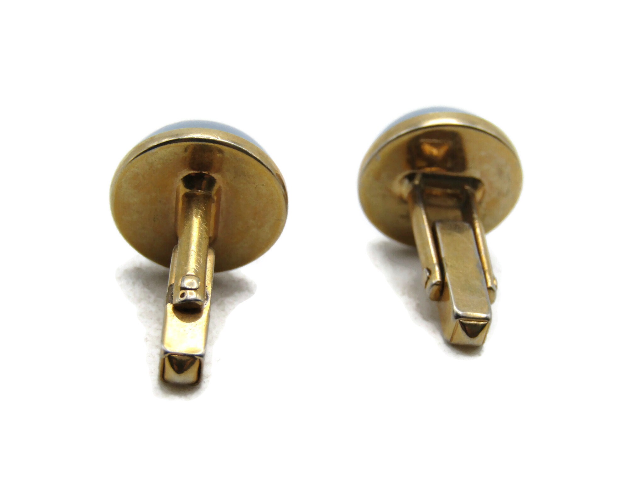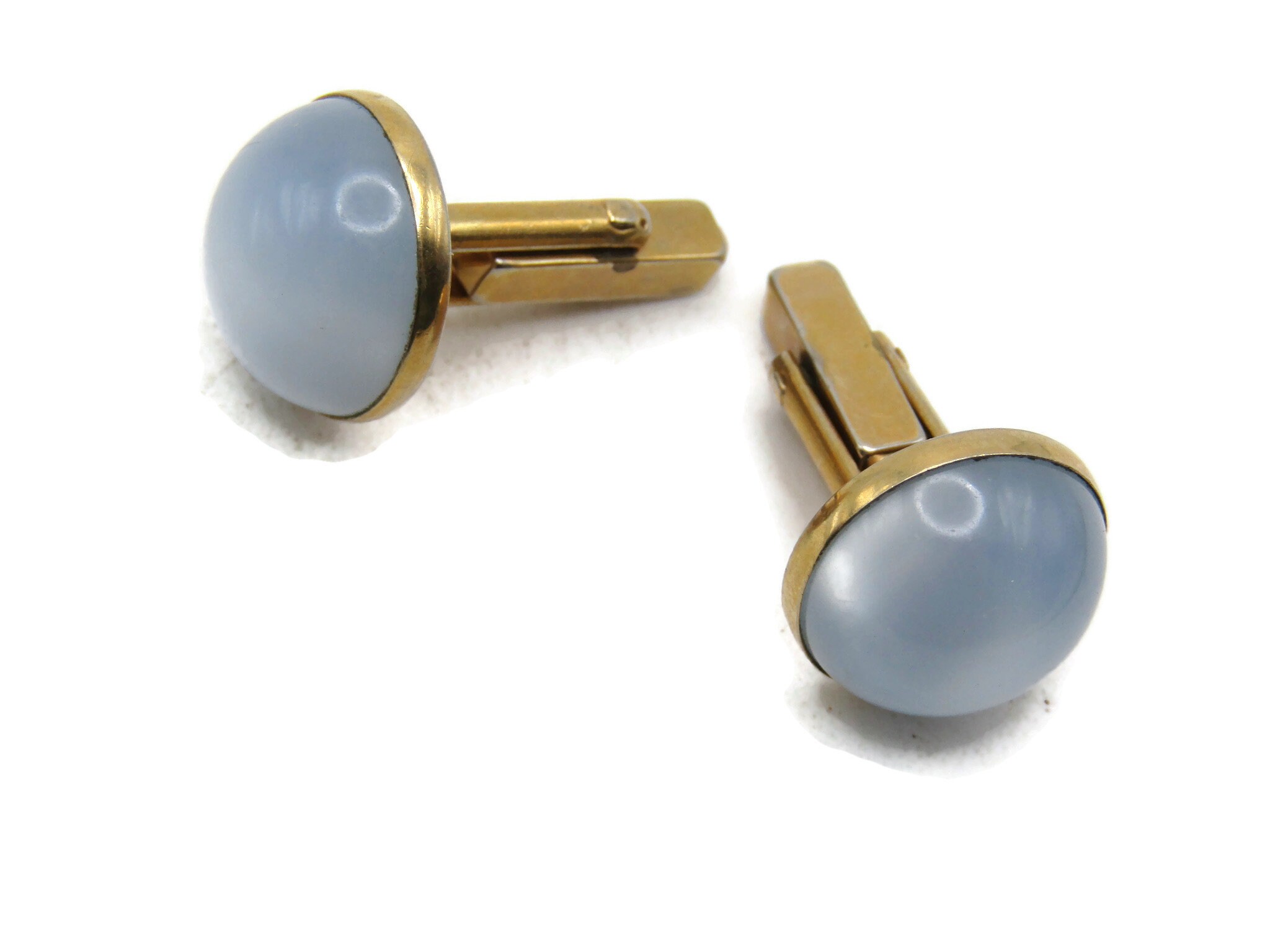 Light Blue Stone Inlay Cuff Links Gold Tone Men's Jewelry