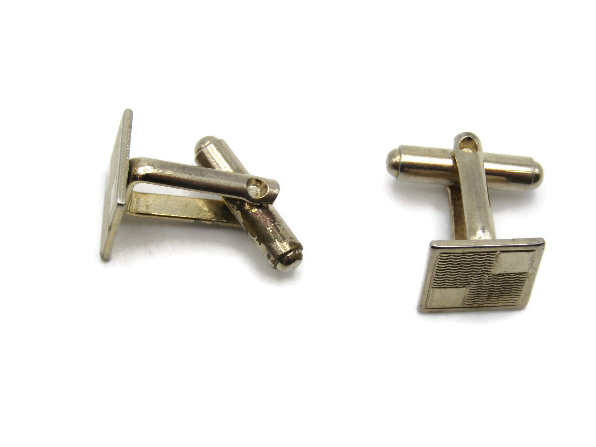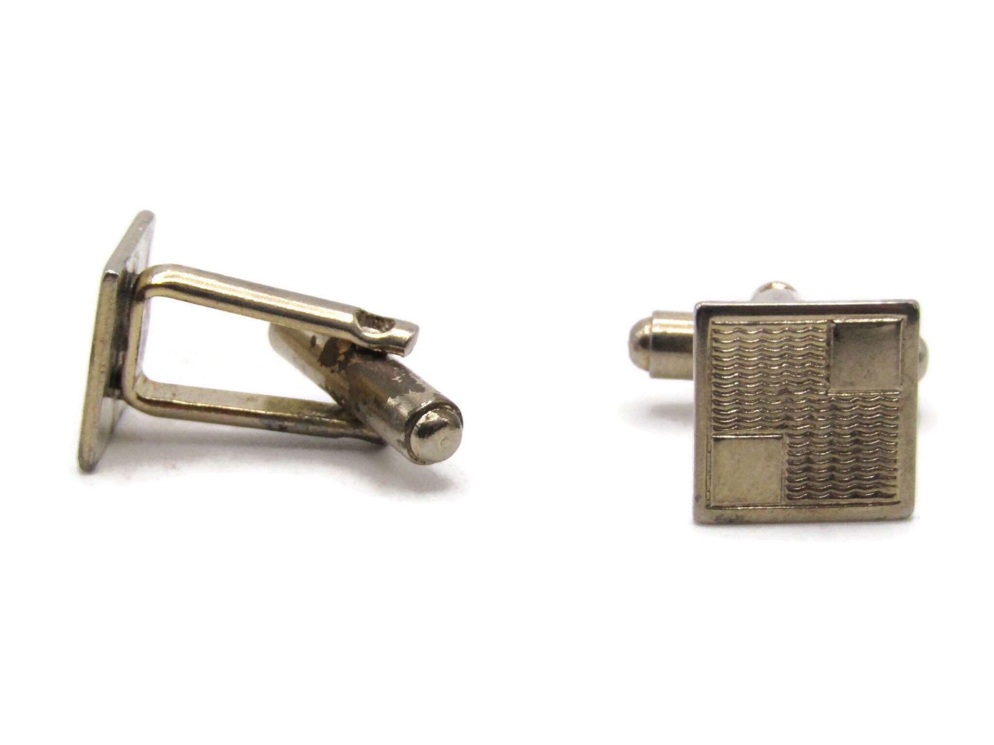 Textured Squares Cuff Links Silver Tone Men's Jewelry