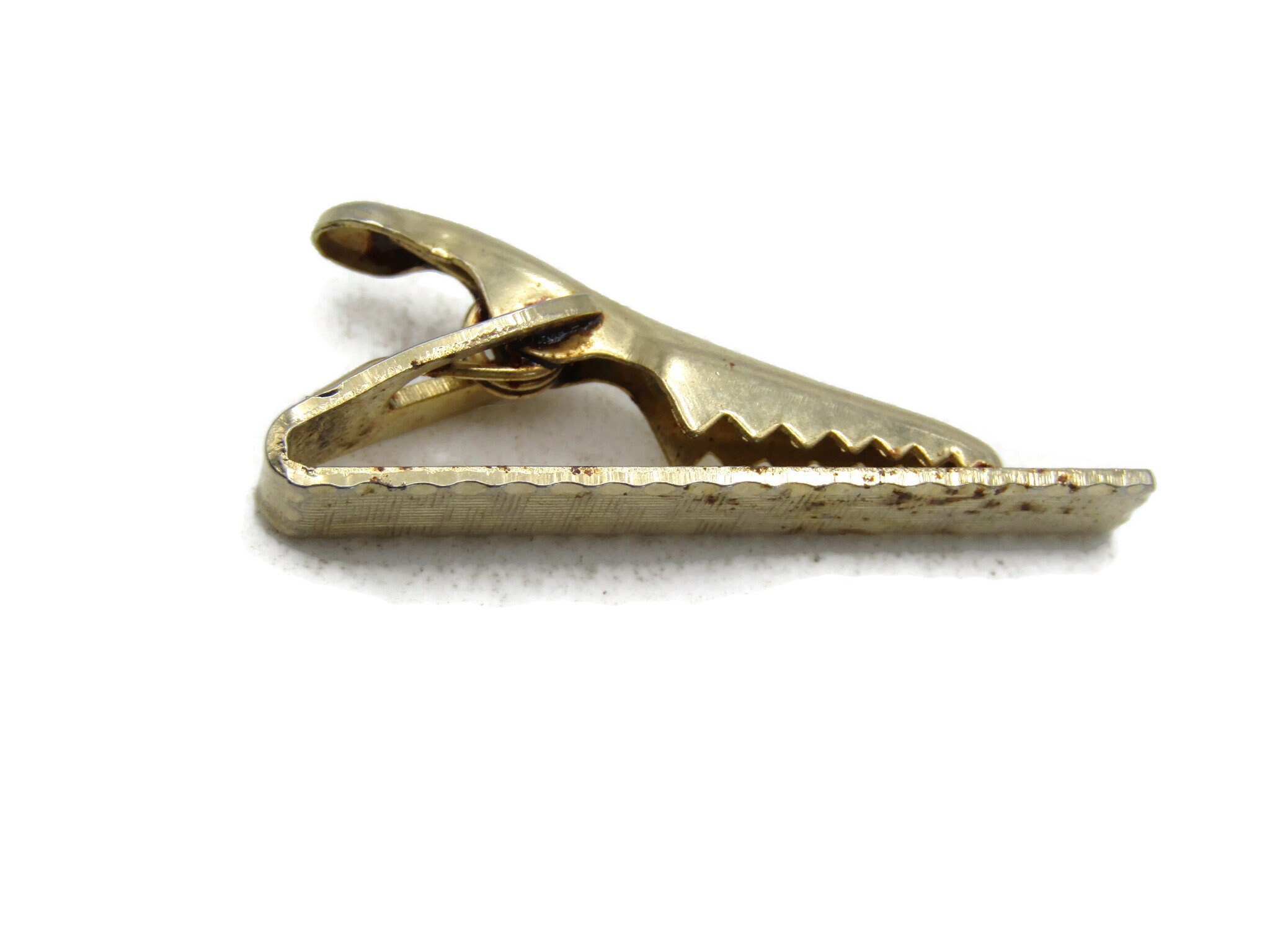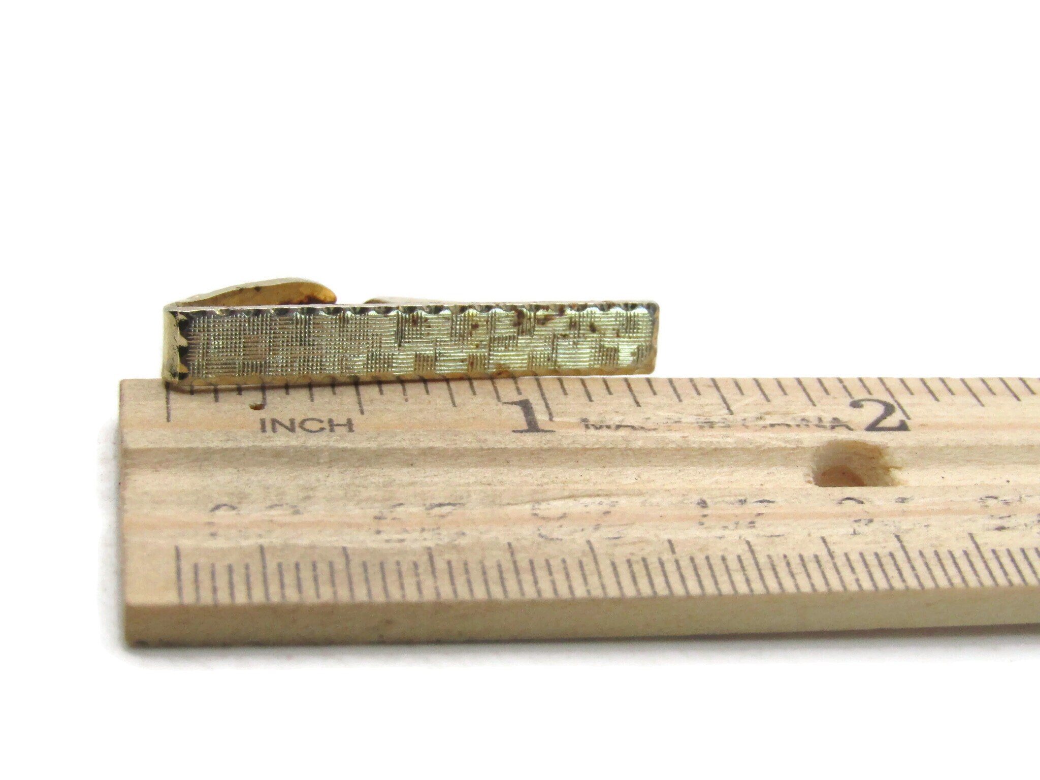 Vinatge Etched Square Patterned Tie Clip Gold Tone Tie Bar Men's Jewelry