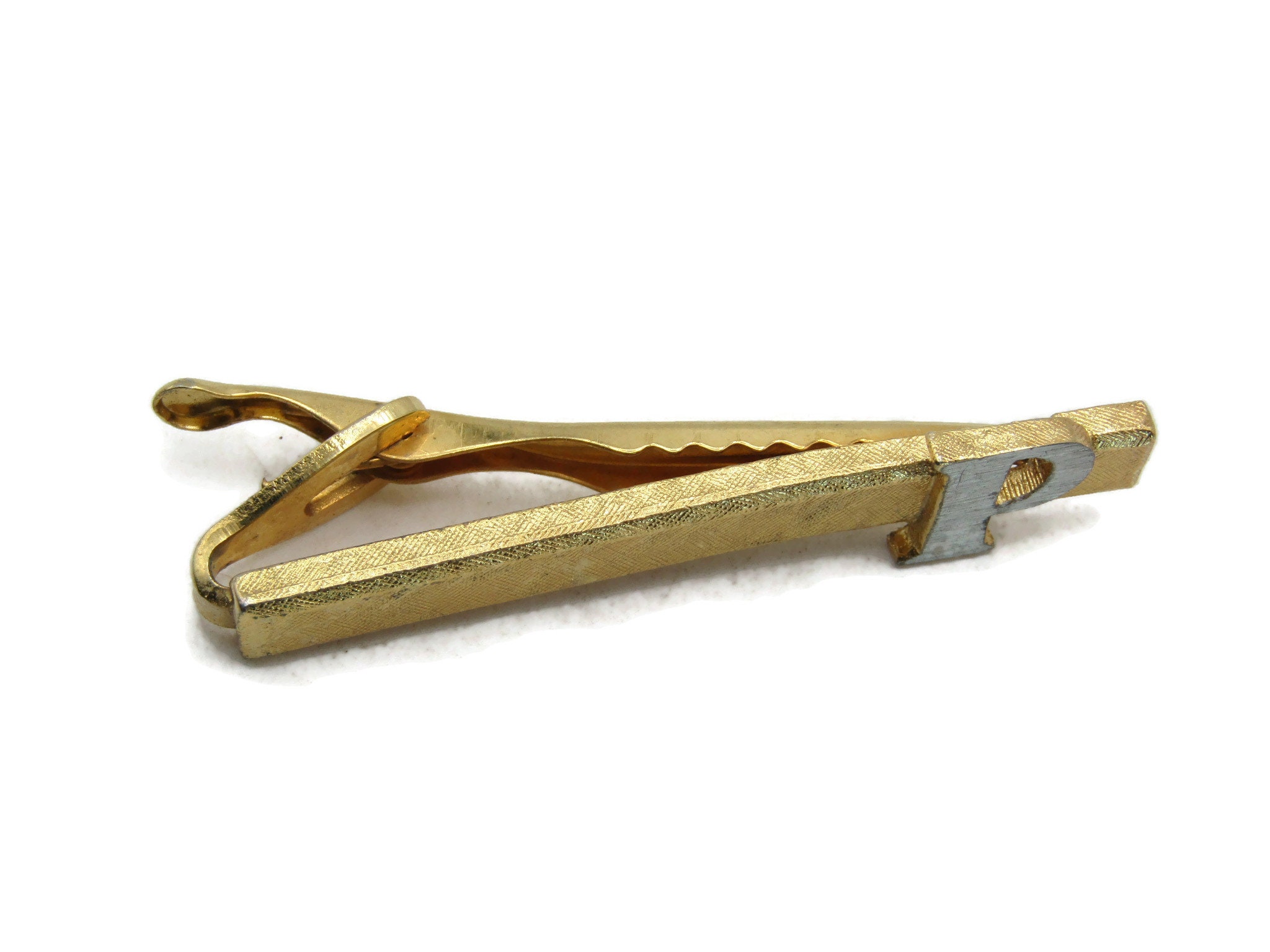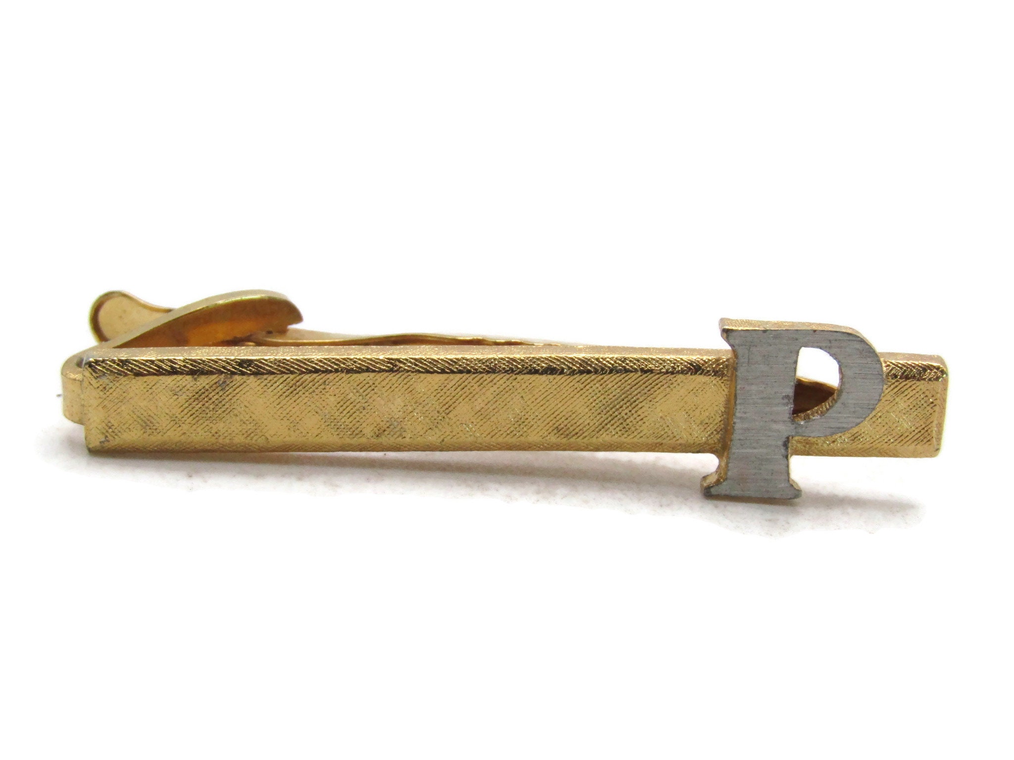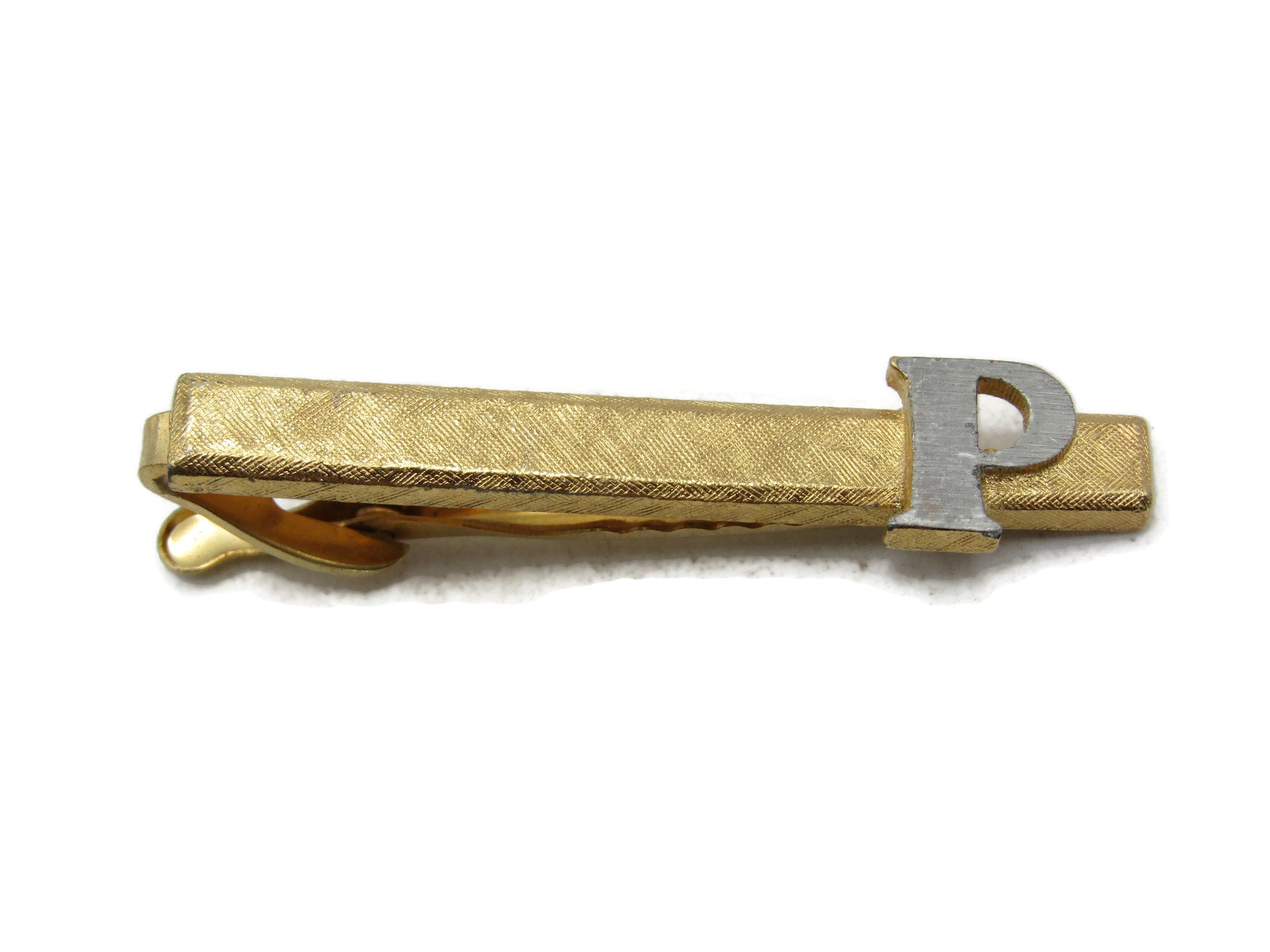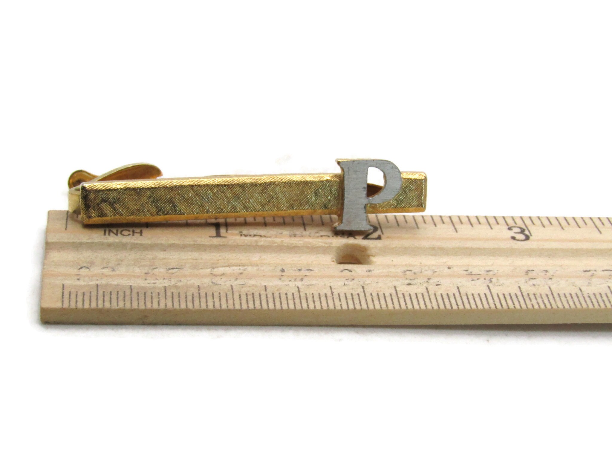 P Lettered Initial Monogram Tie Clip Silver Tone Letter Gold Tone Tie Bar Men's Jewelry