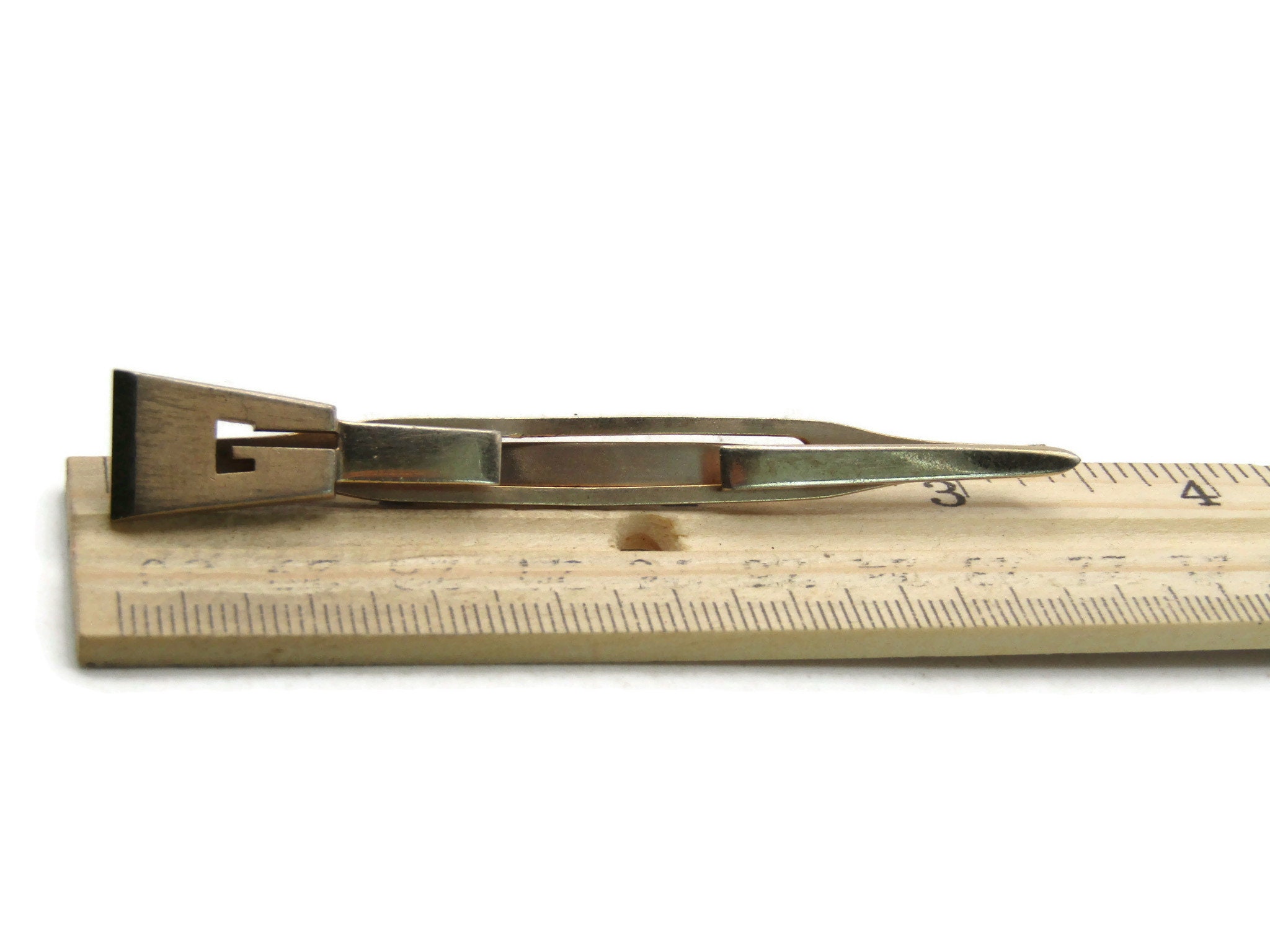 G Letter Initial Monogram Tie Clip Gold Tone Vintage Tie Bar Men's Jewelry