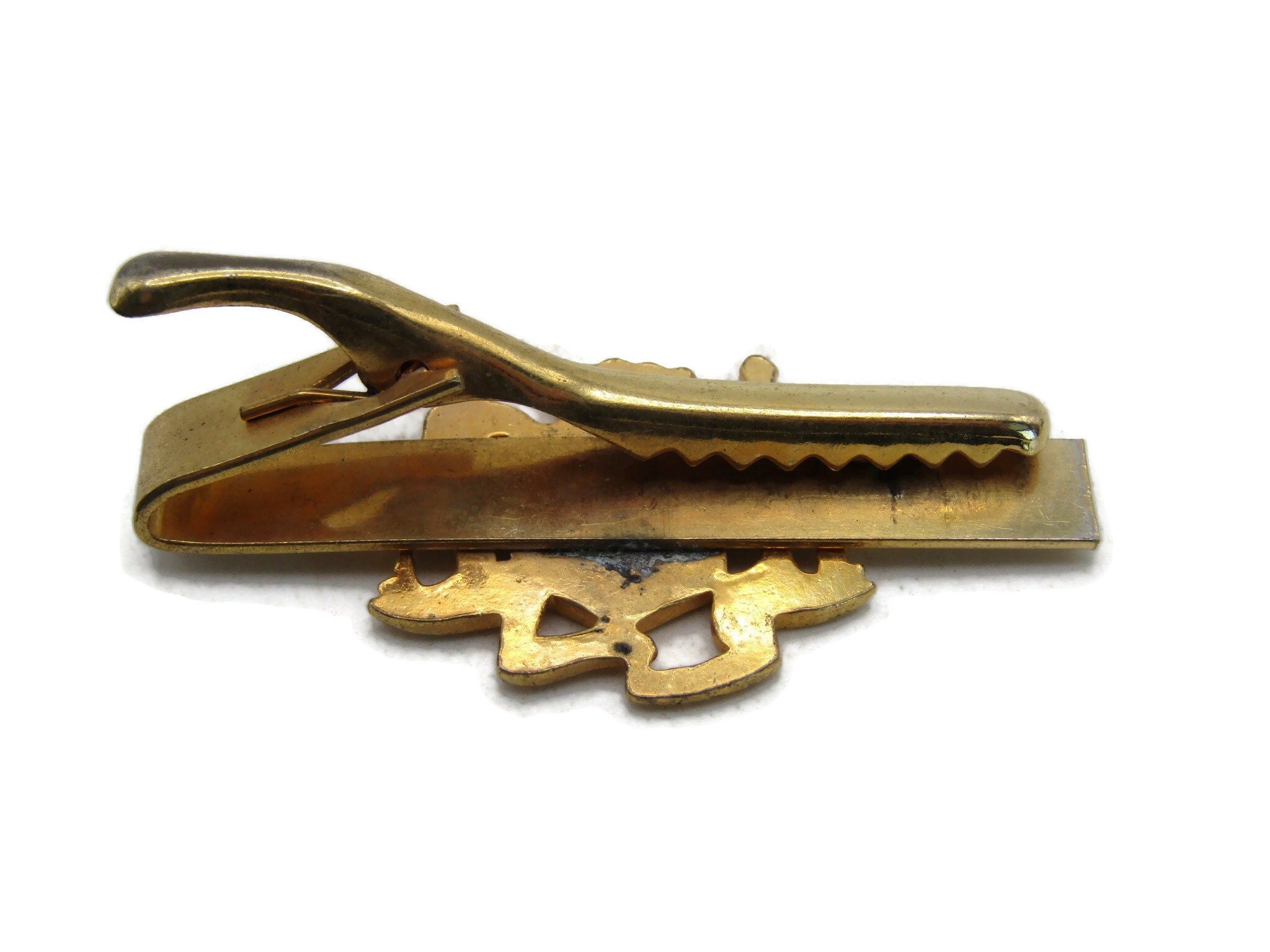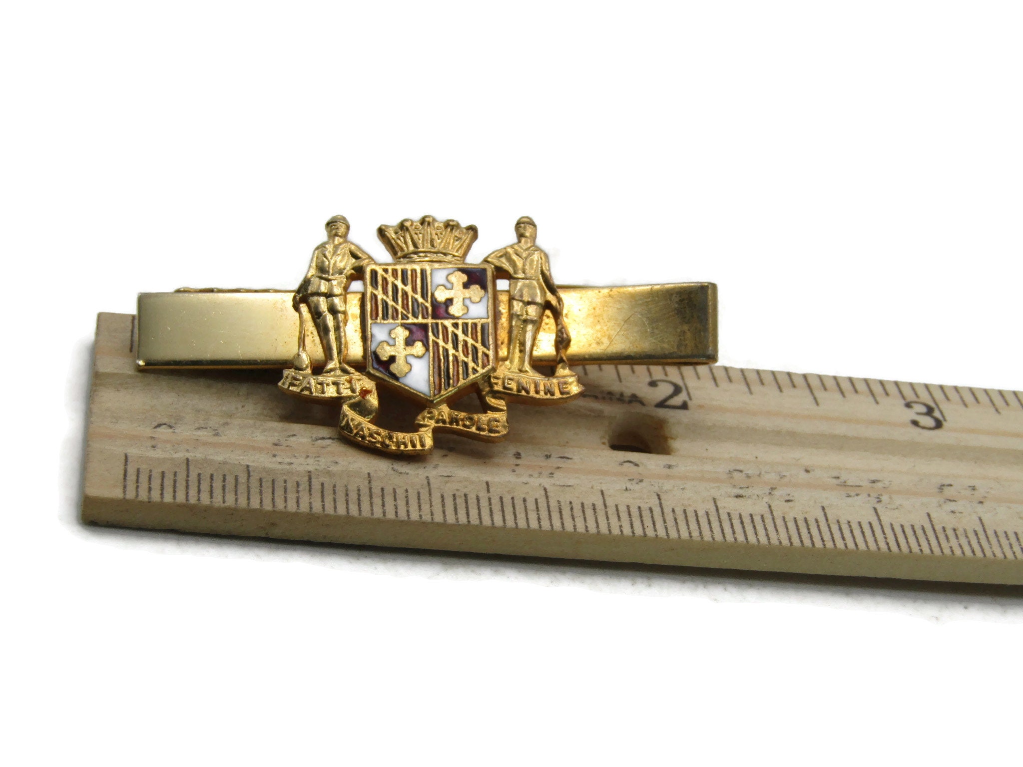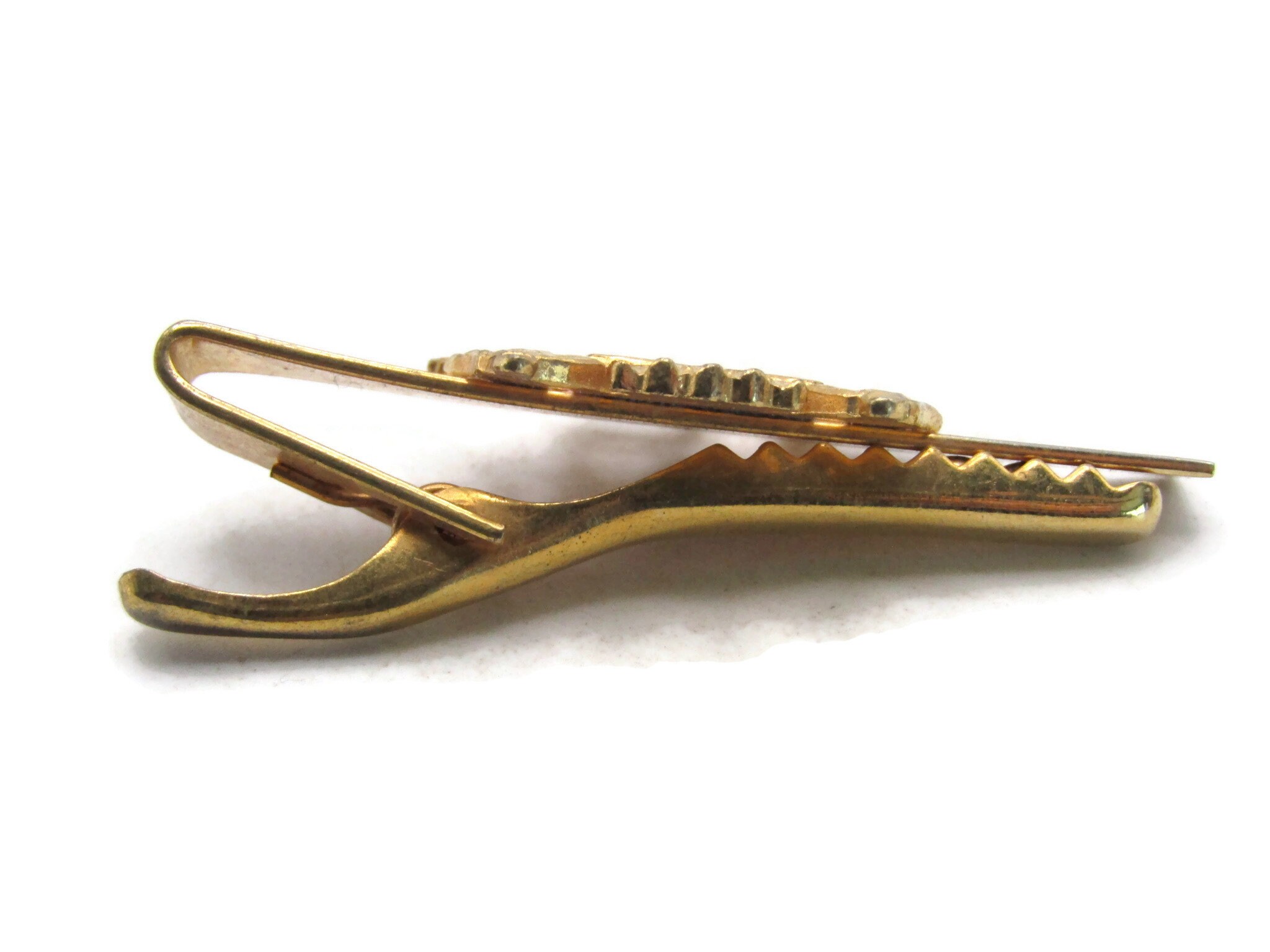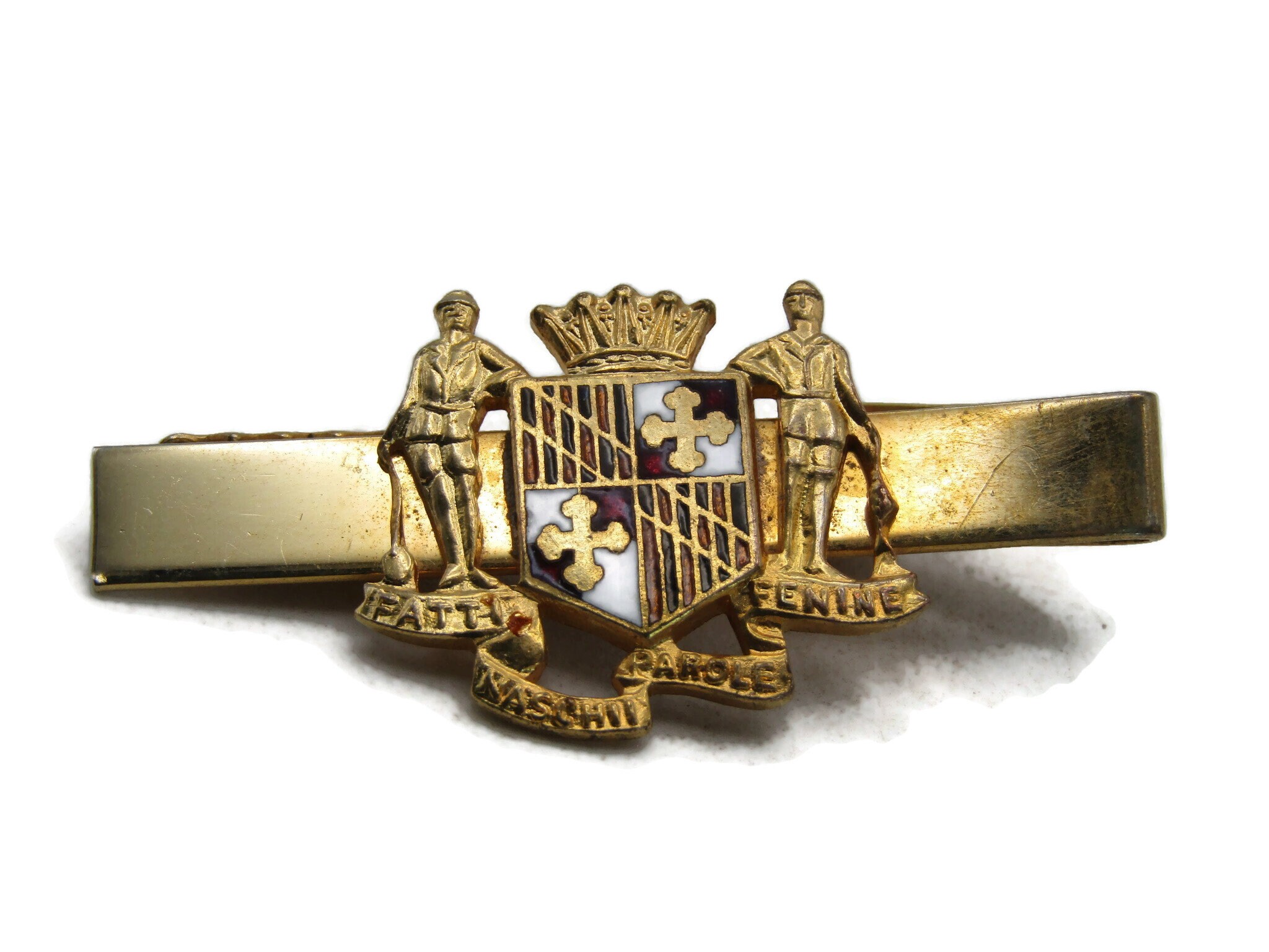 Fatti Naschi Parole Fenine Lettered & Crest Tie Bar Tie Clip Gold Tone Men's Jewelry