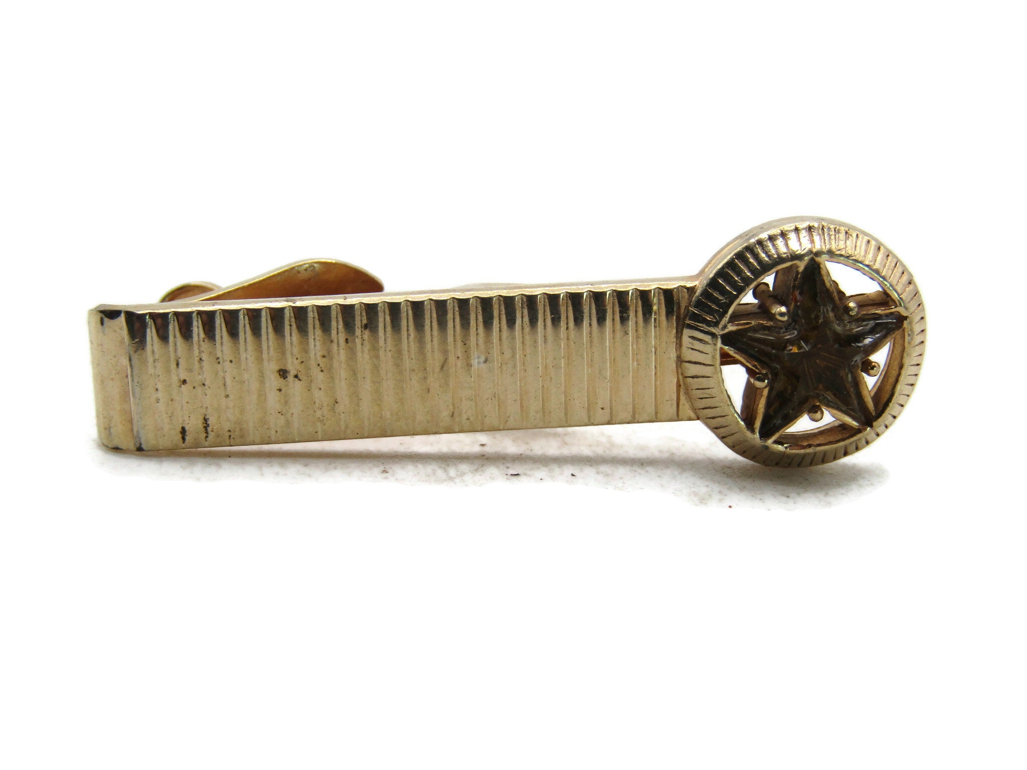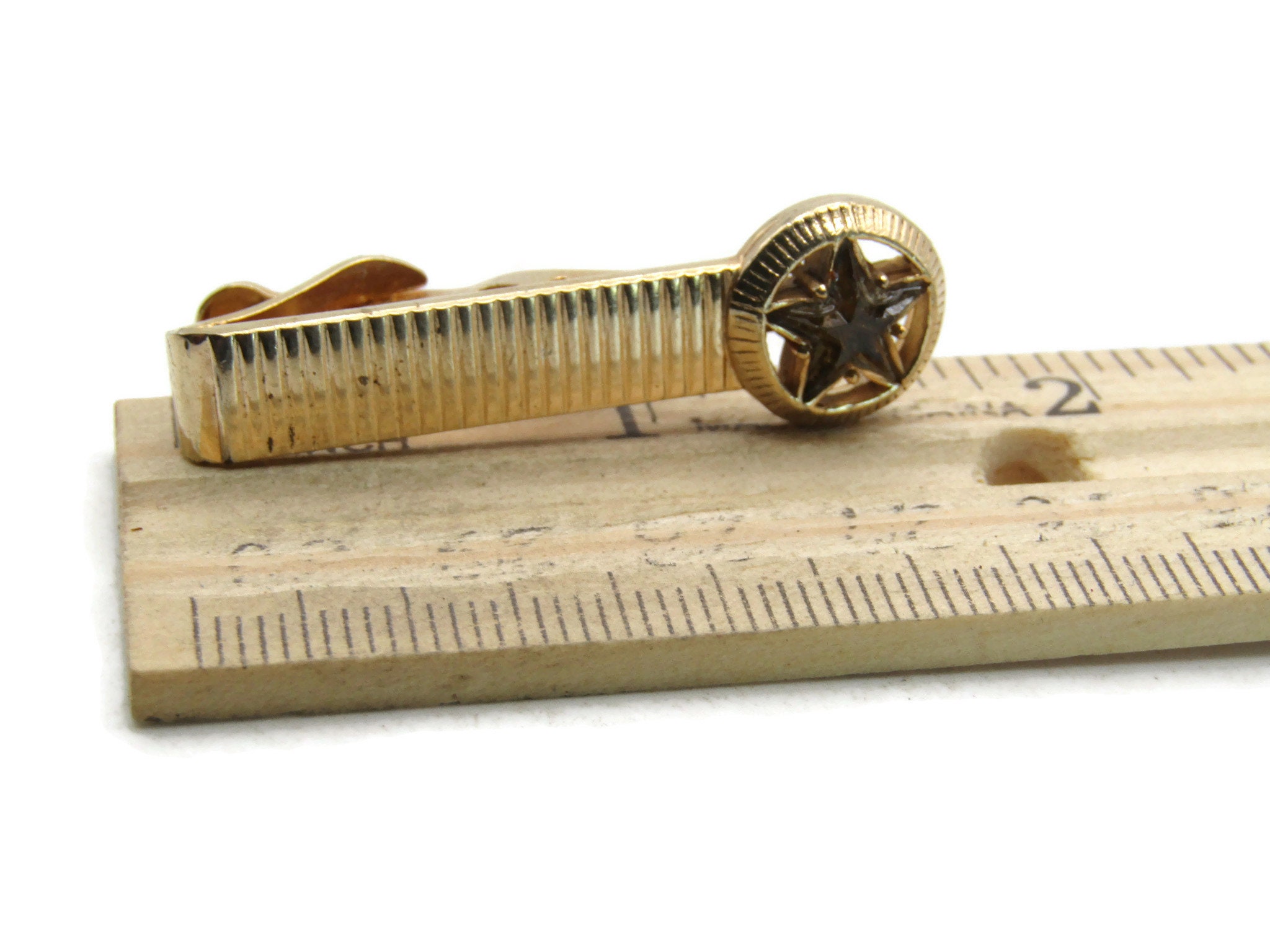 Grey Star Stone Inlay & Etched Line Tie Bar Gold Tone Tie Clip Men's Jewelry