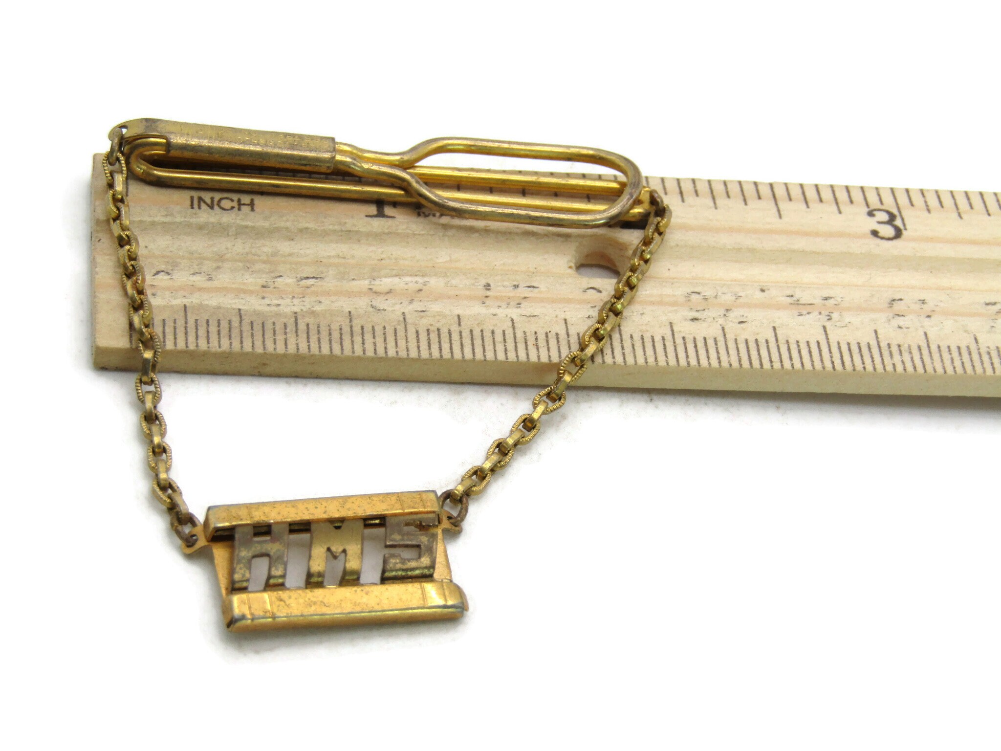 HMS Lettered Initialed Monogram Tie Clip Gold Tone Open Design Tie Bar Men's Jewelry