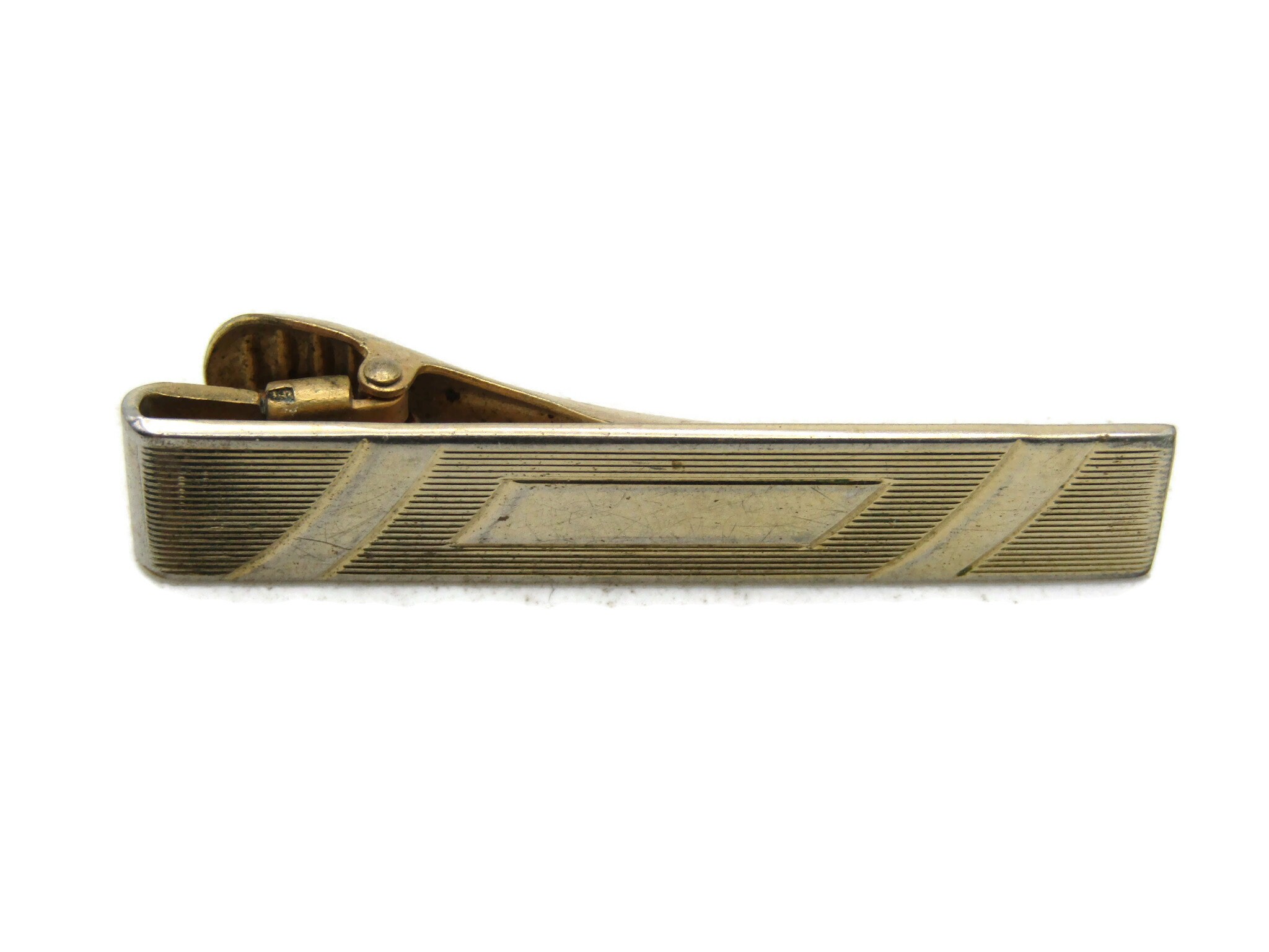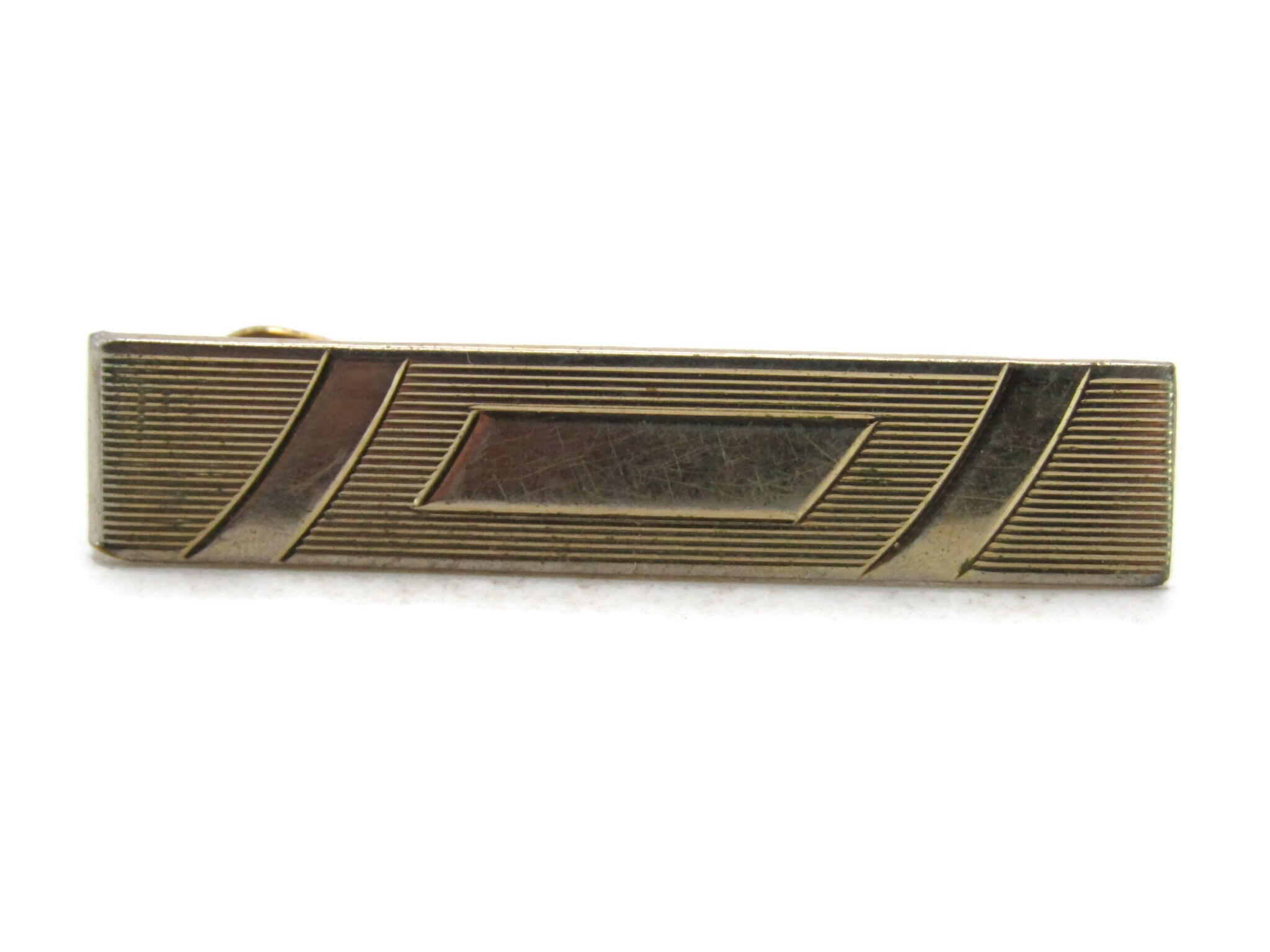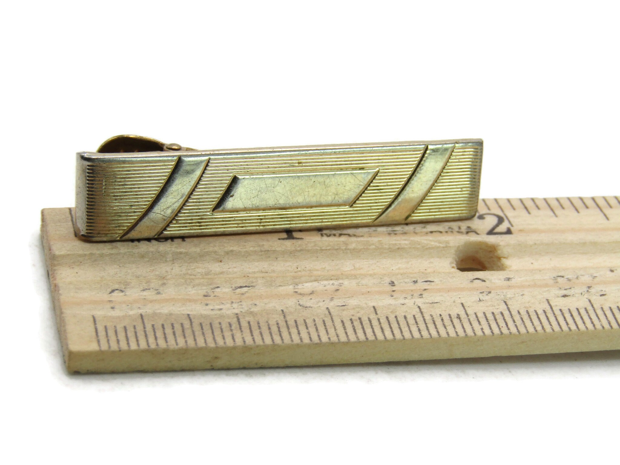Geometric Line Design Front Tie Clip Industrial Tie Bar Gold Tone Men's Jewelry