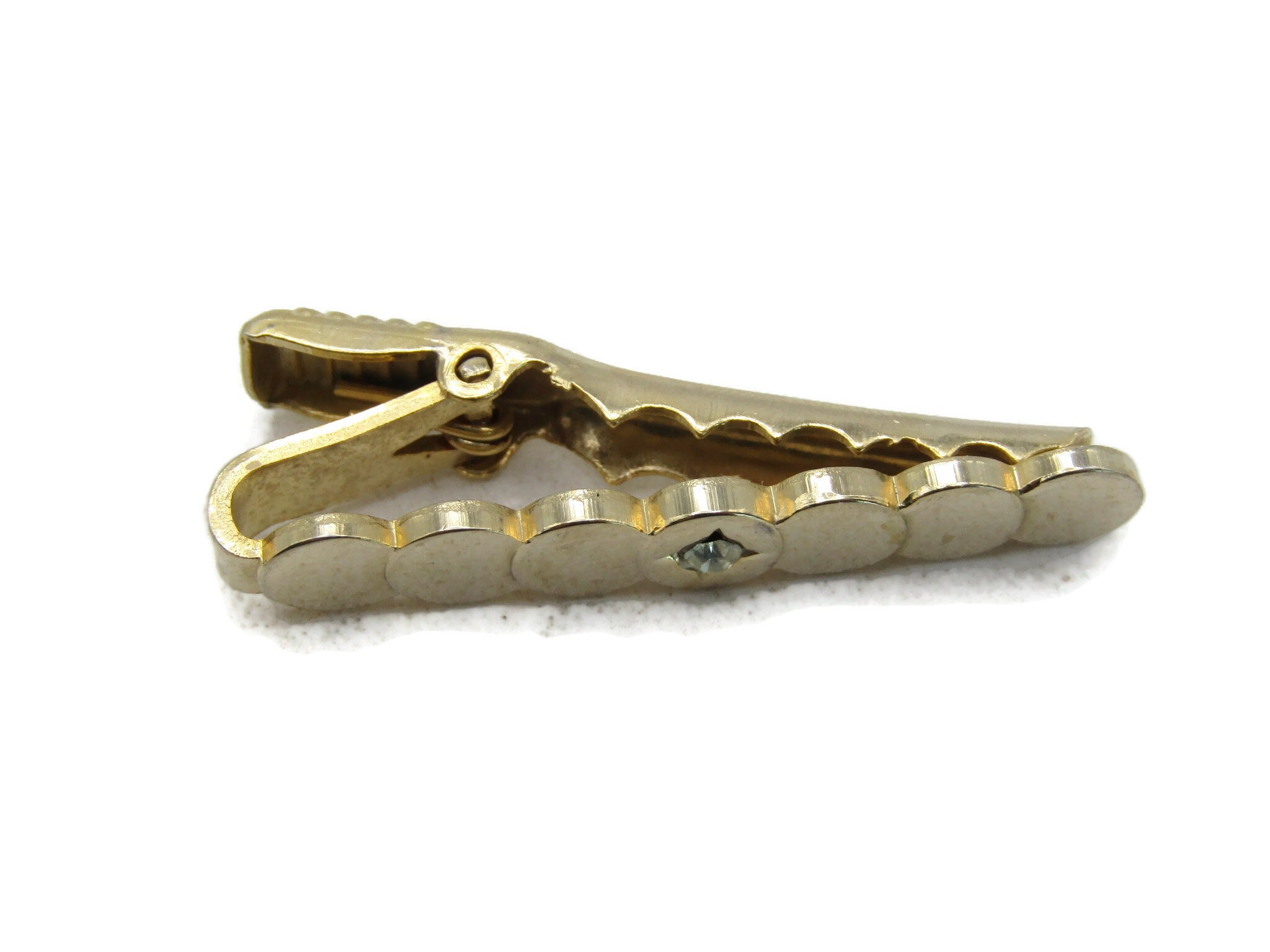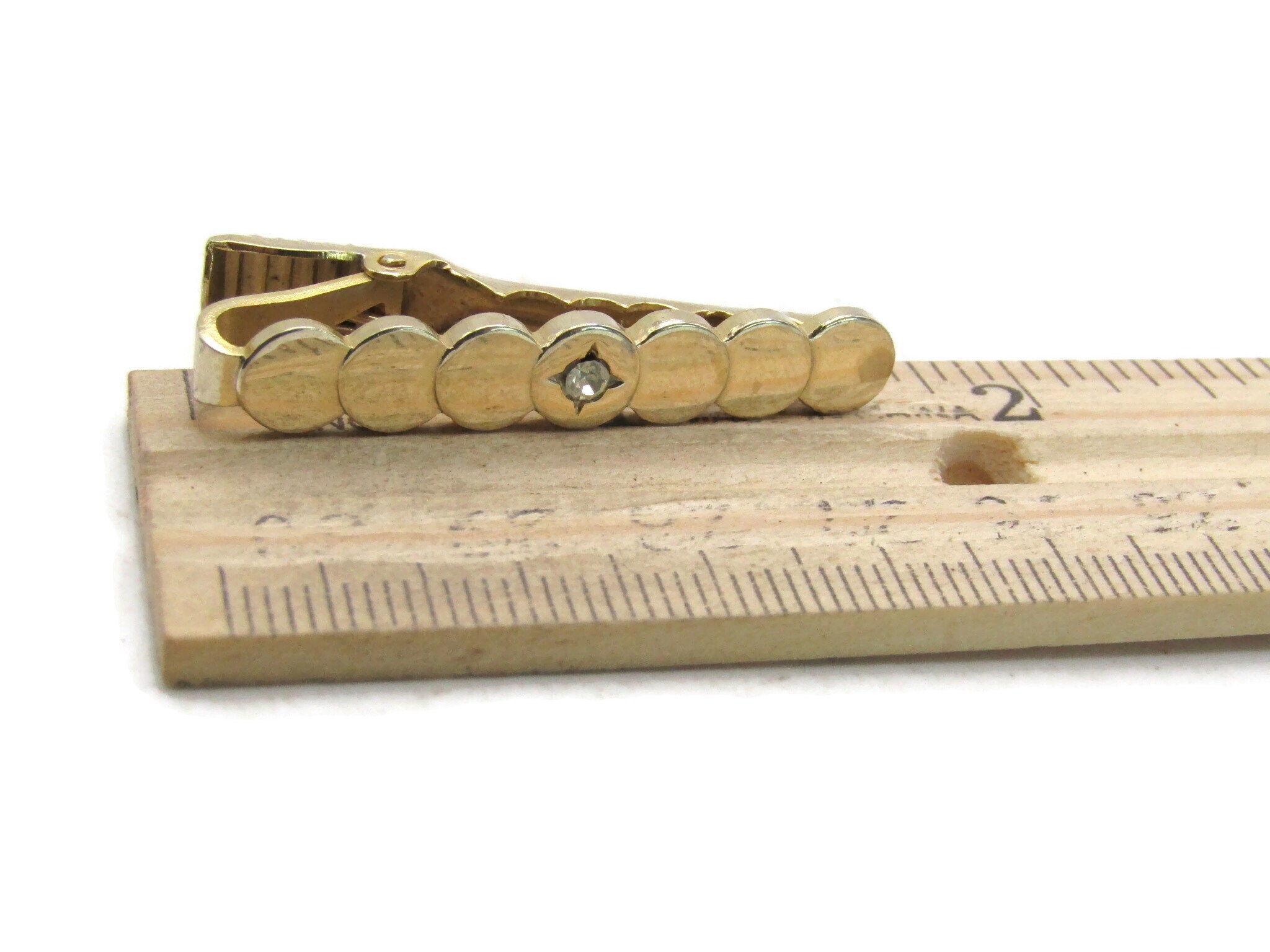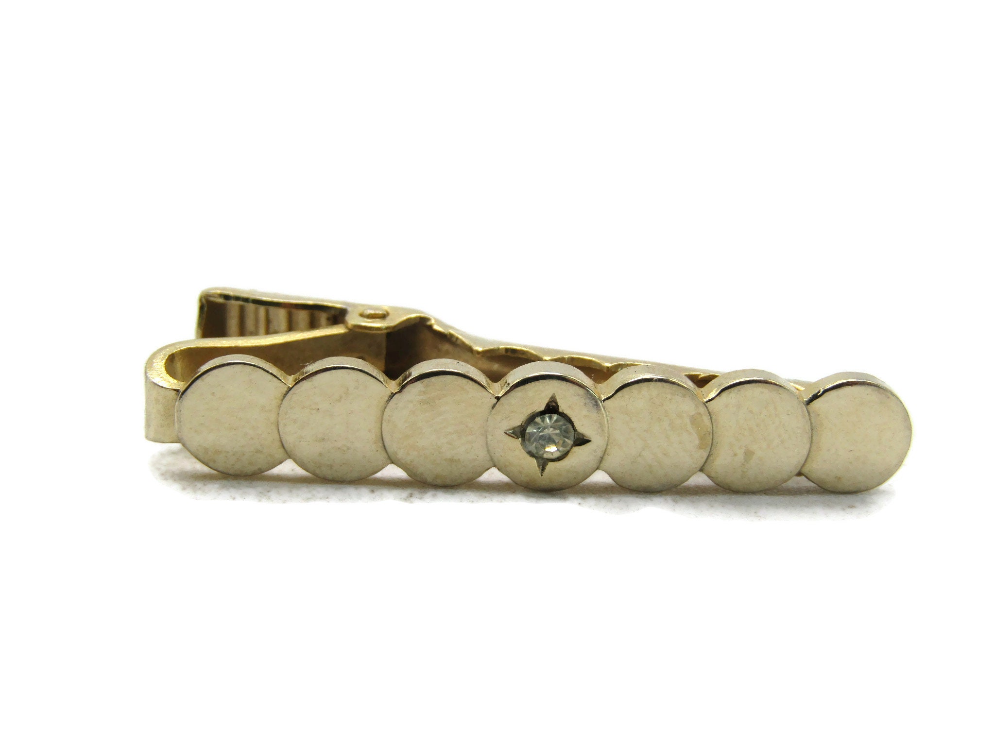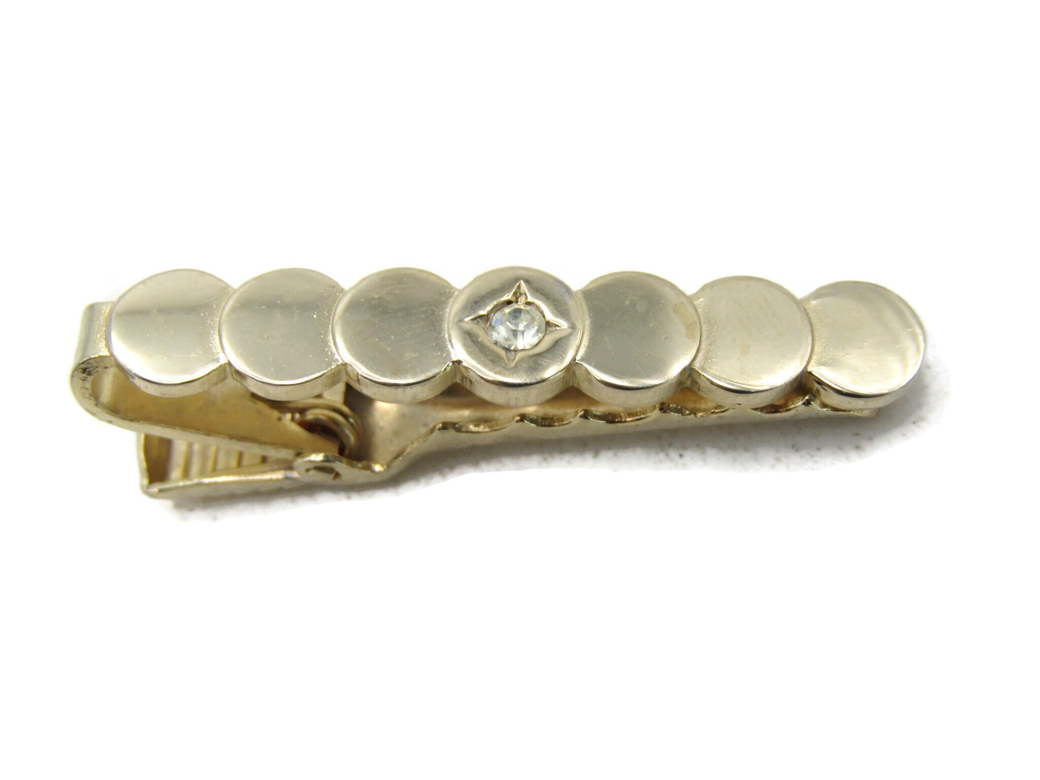 Rhinestone Inlay Circles Design Modernist Tie Clip Gold Tone Tie Bar Men's Jewelry