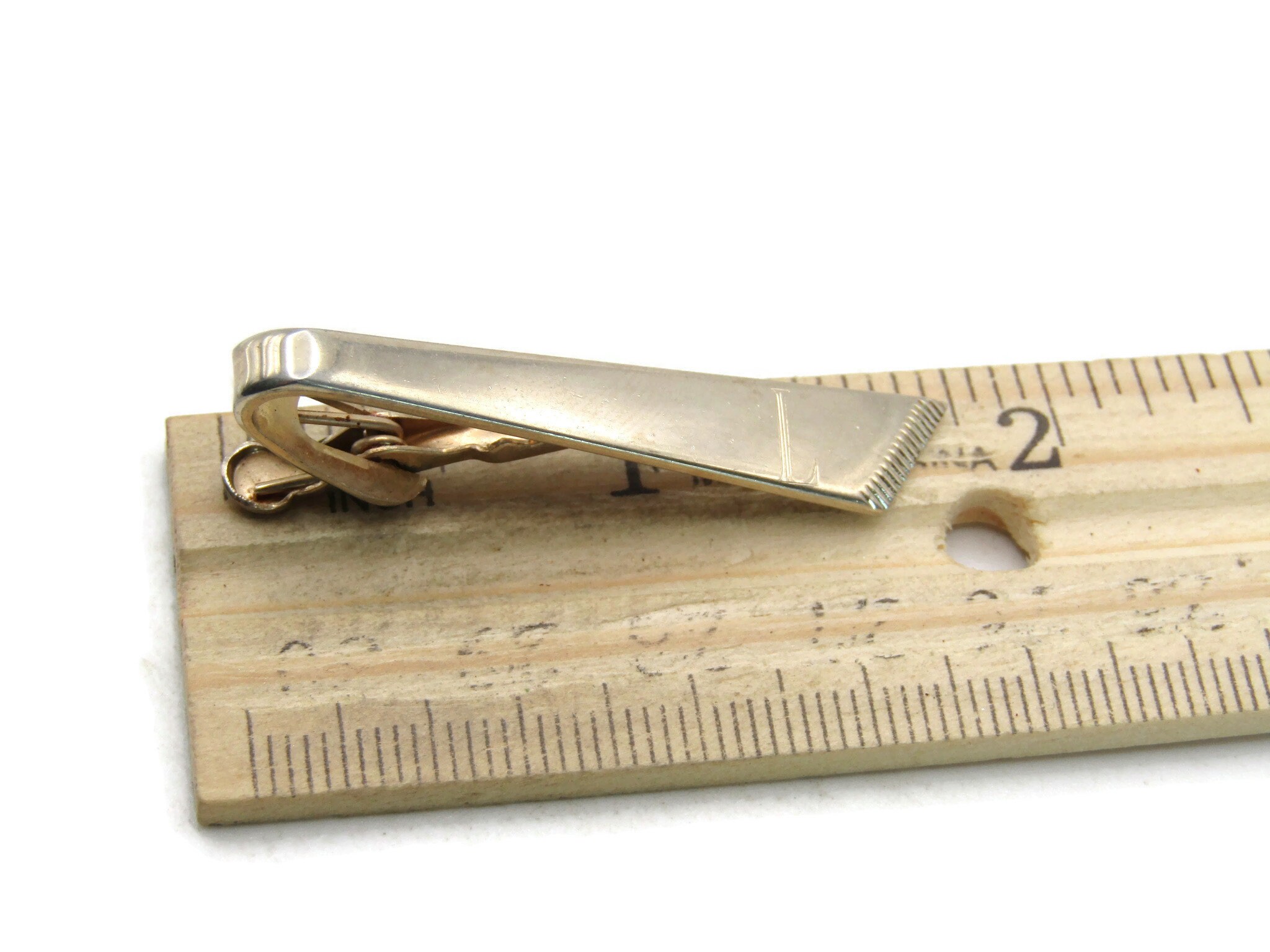 Smooth Finish Etched Edge Tie Clip Modernist Tie Bar Gold Tone Men's Jewelry