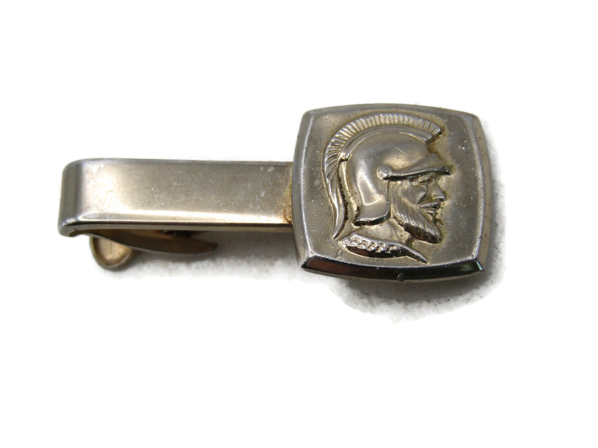 Roman Soldier Head Tie Clip Silver Tone Tie Bar Men's Jewelry