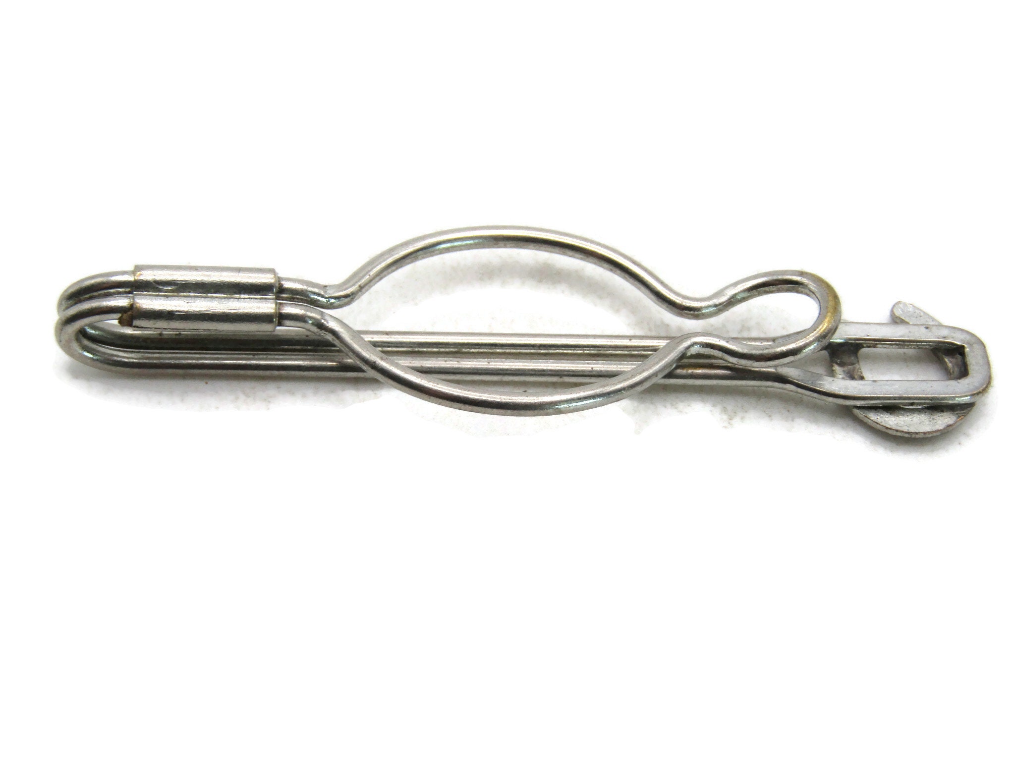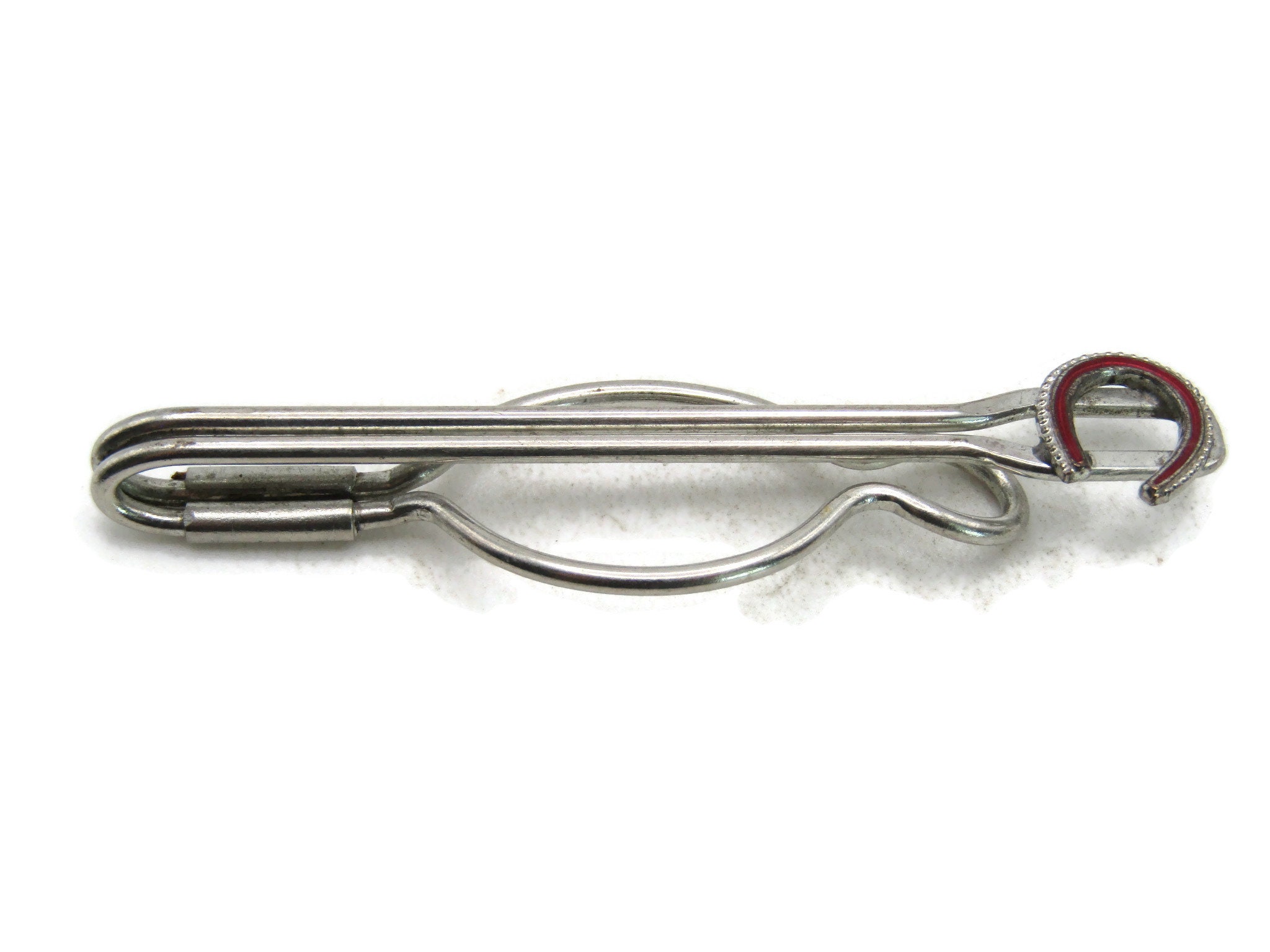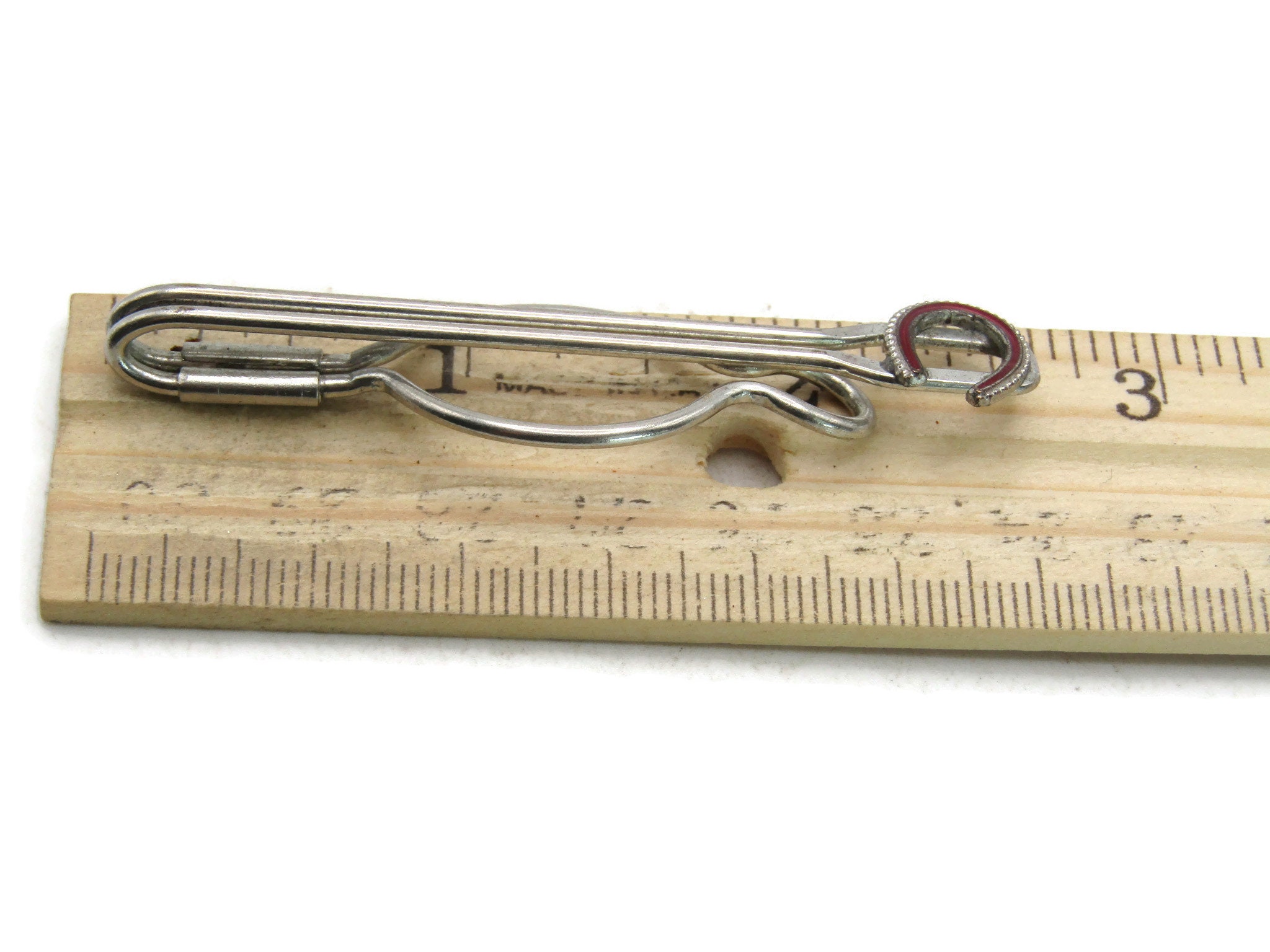 Red Horseshoe Tie Clip Open Body Indistrial Design Tie Bar Silver Tone Men's Jewelry