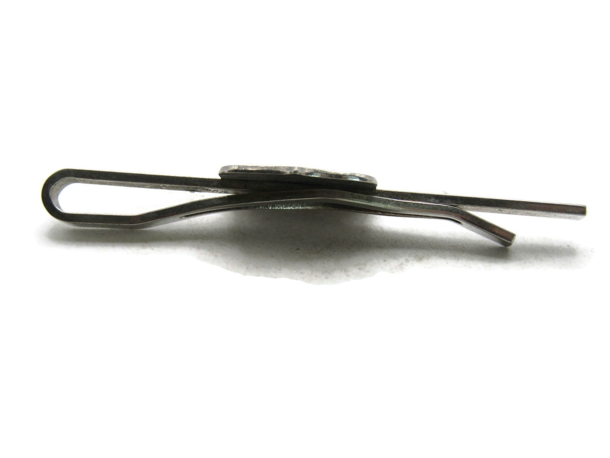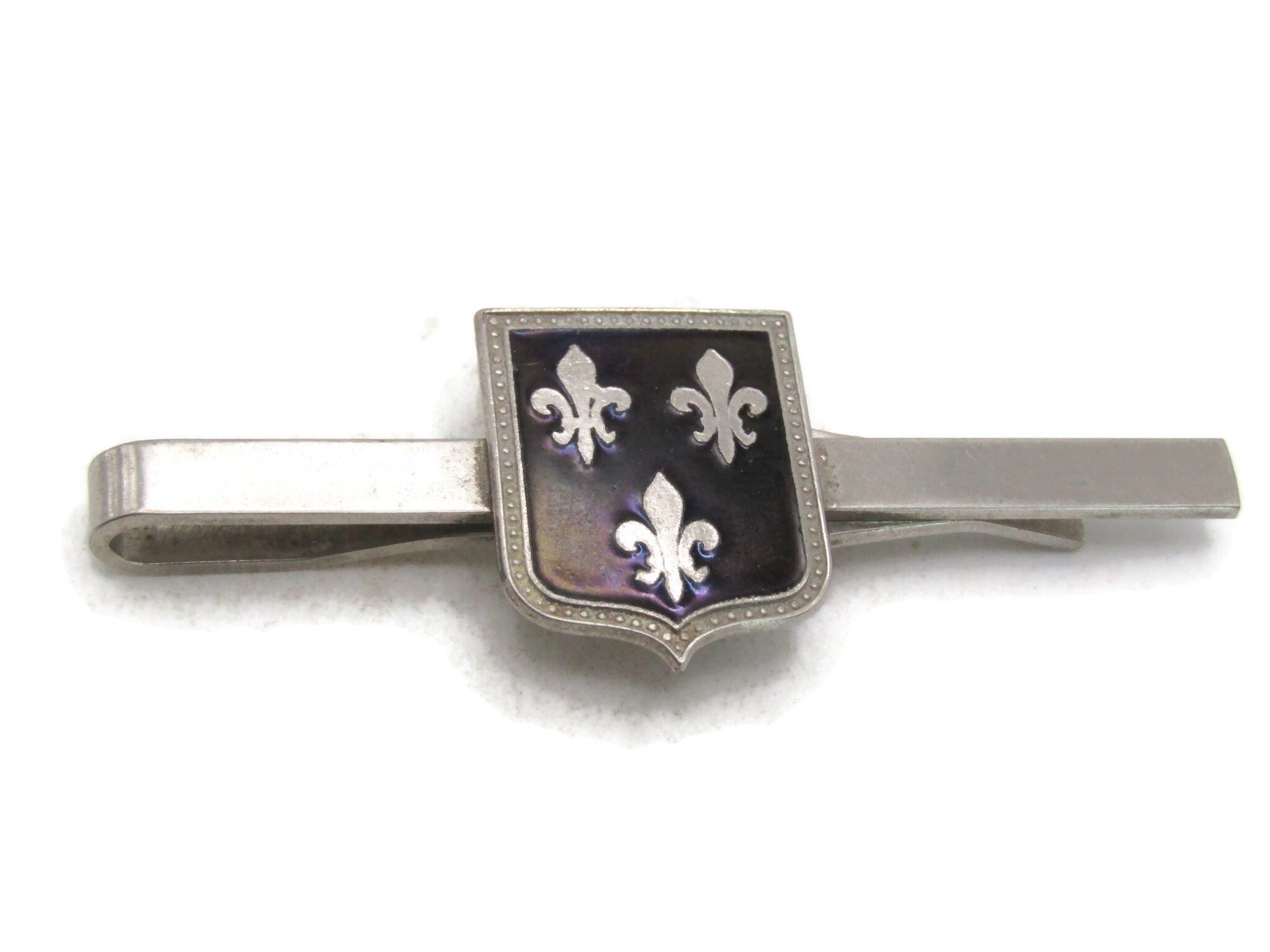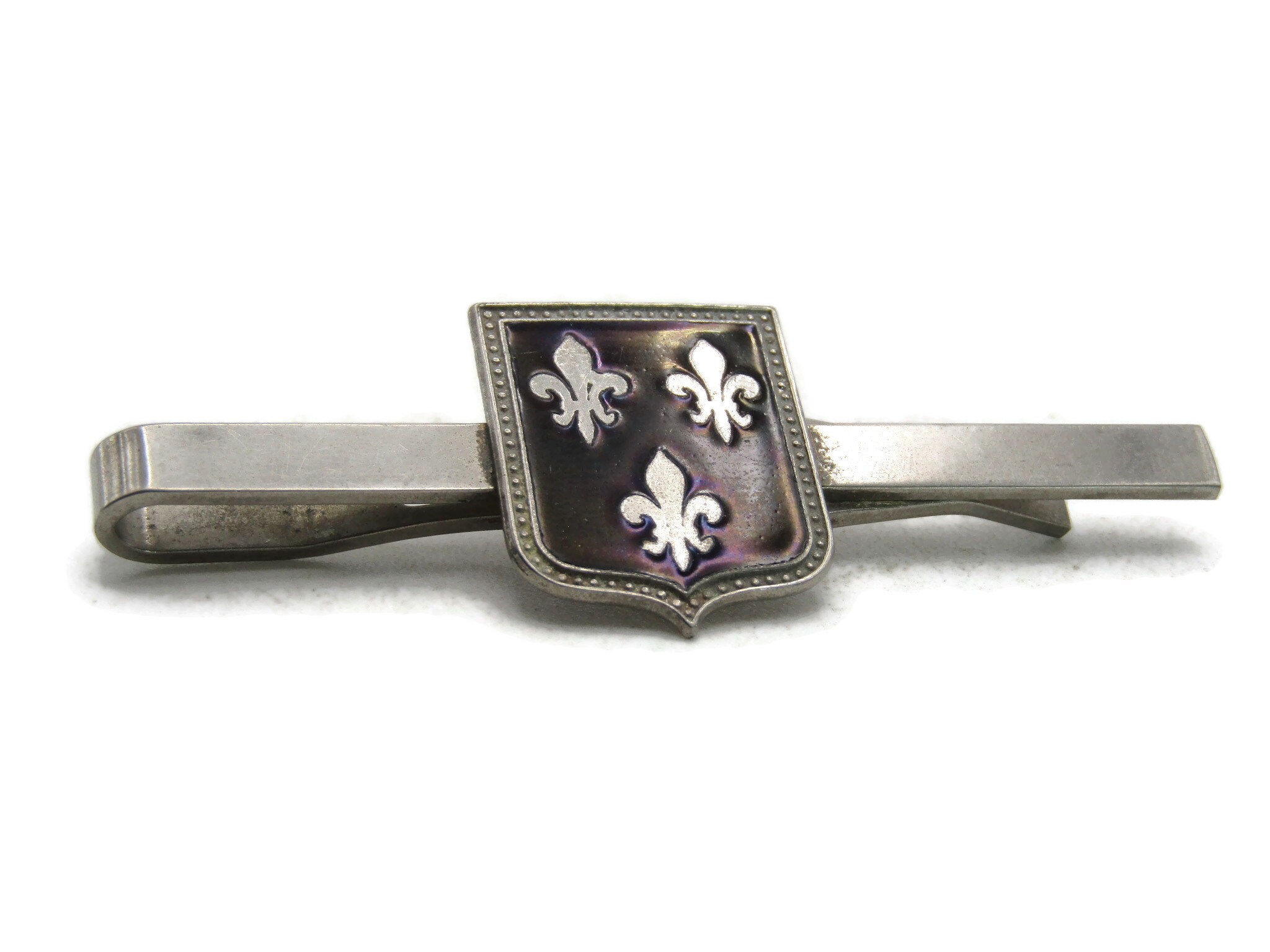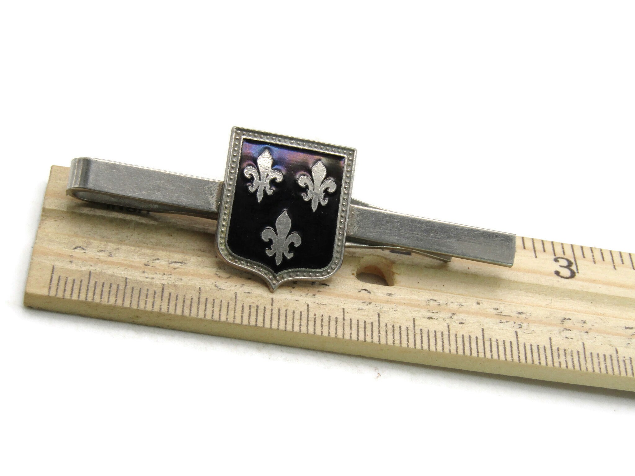 Fleur de Lis Black Background Crest Tie Clip Silver Tone Tie Bar Men's Jewelry