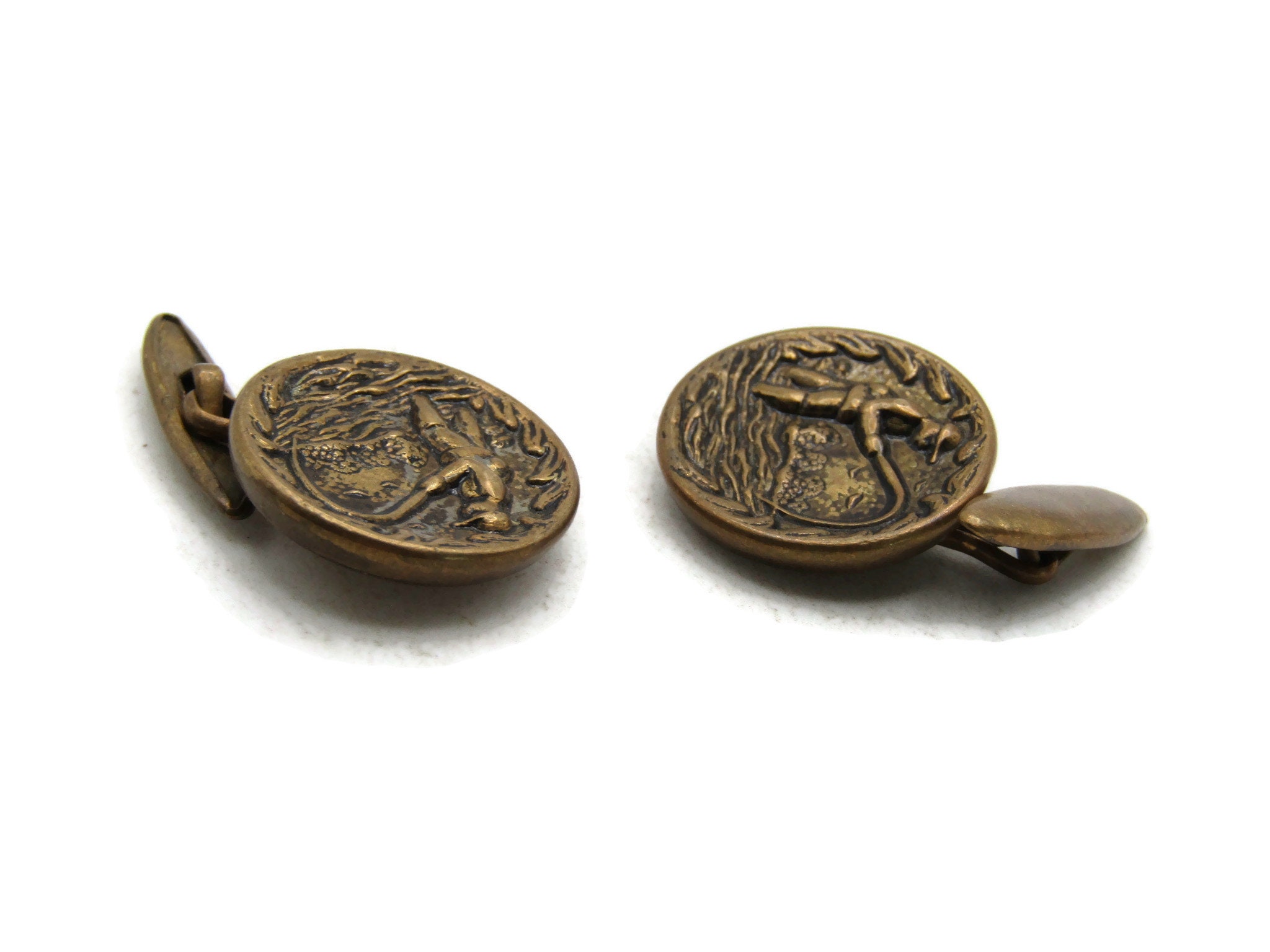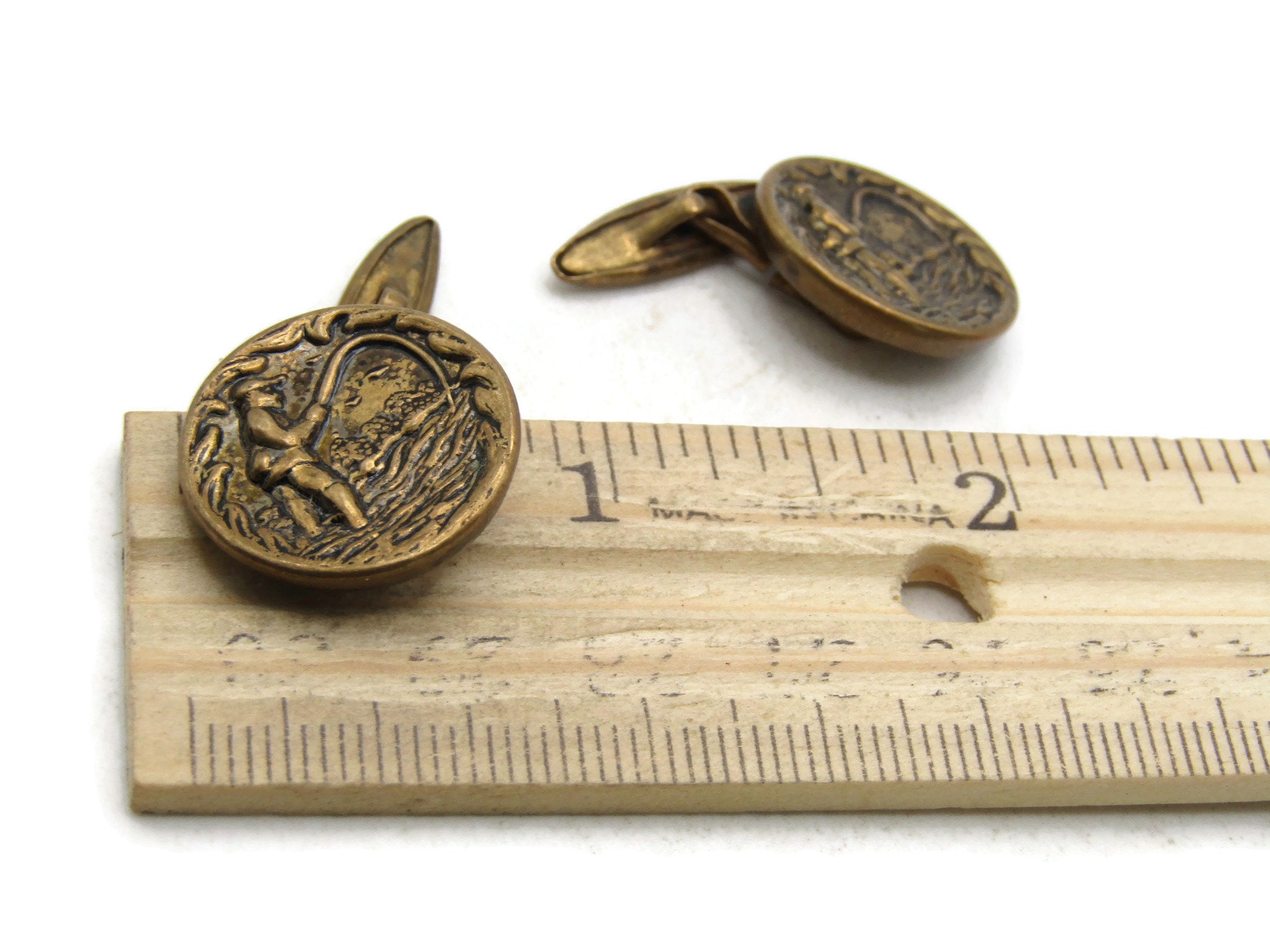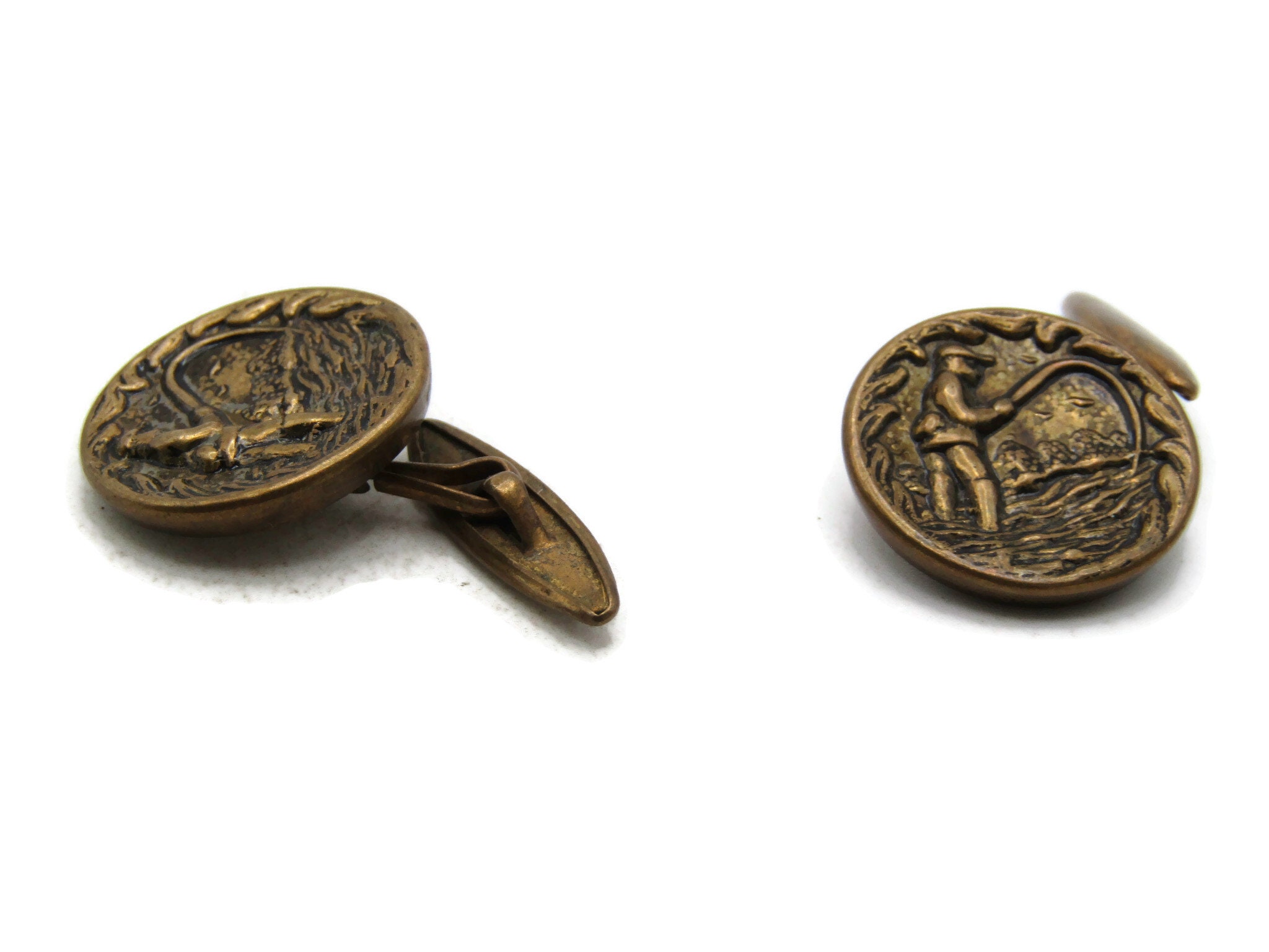 Fisherman Scene Cuff Links Gold Tone Sports Men's Jewelry