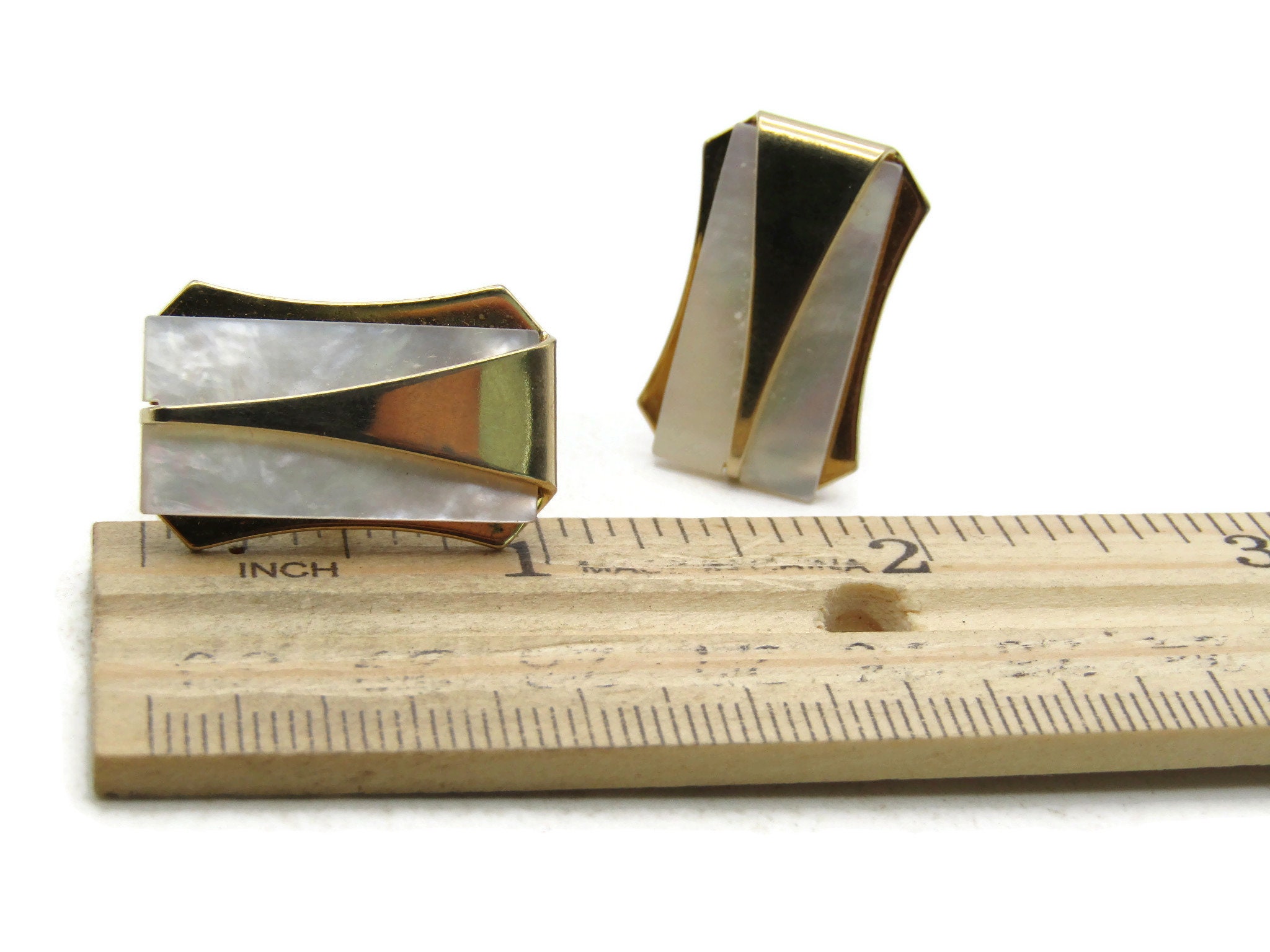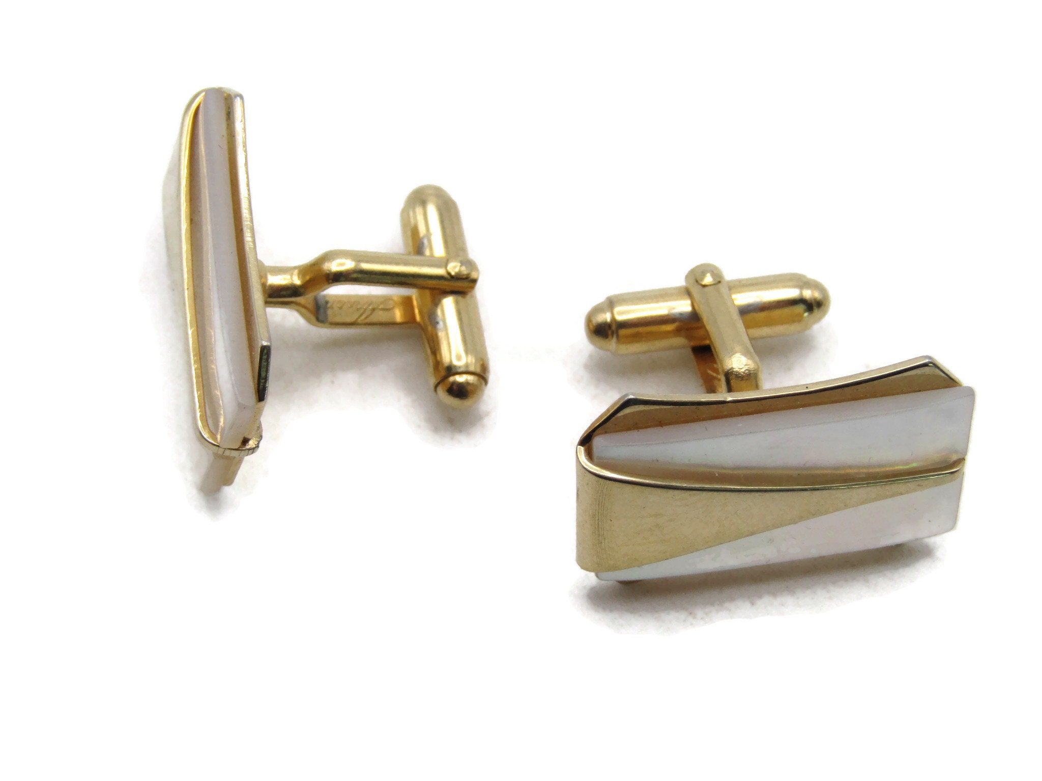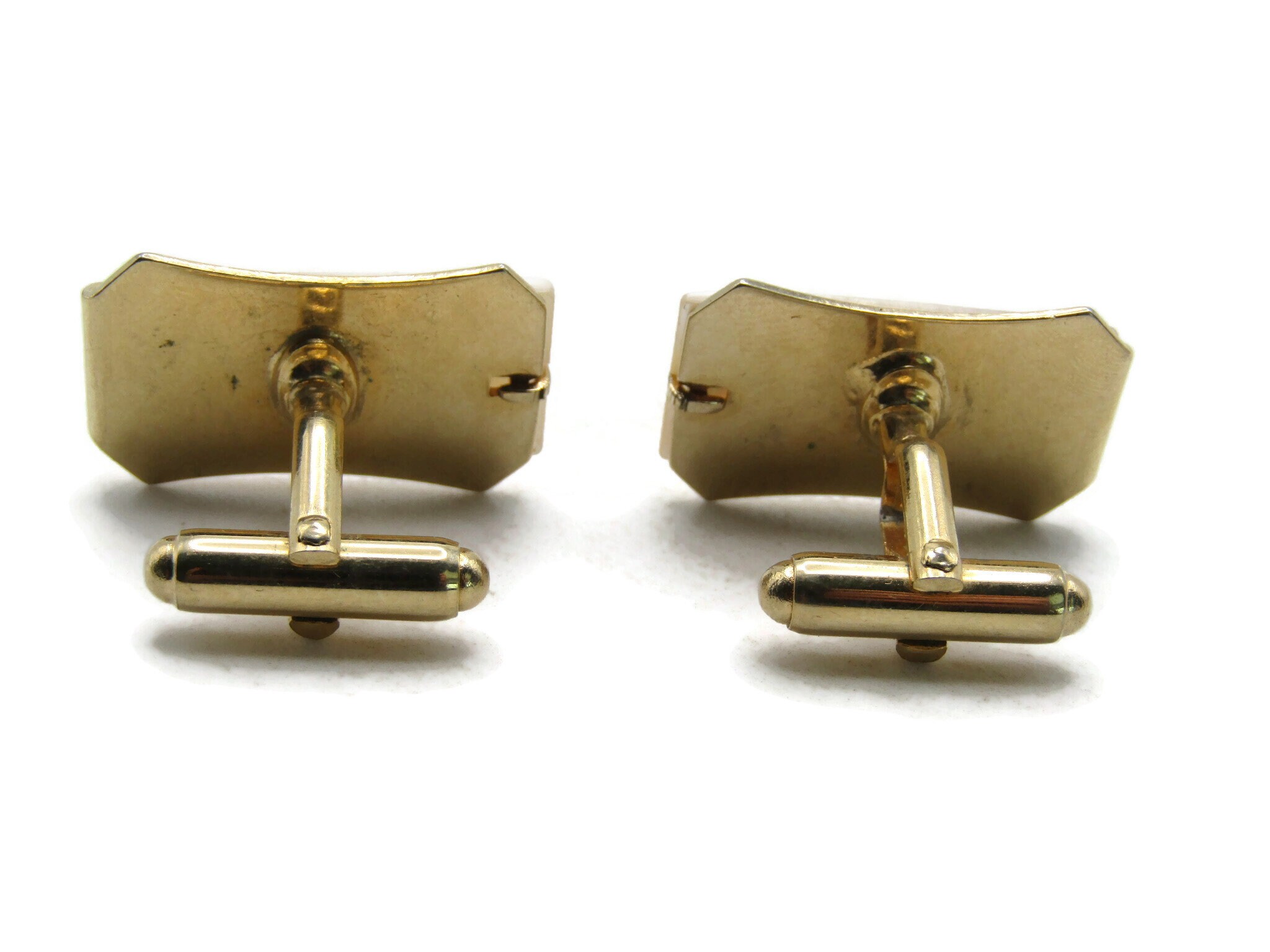 Mother Of Pearl Inlay Traingle Shapes Cuff Links Gold Tone Men's Jewelry