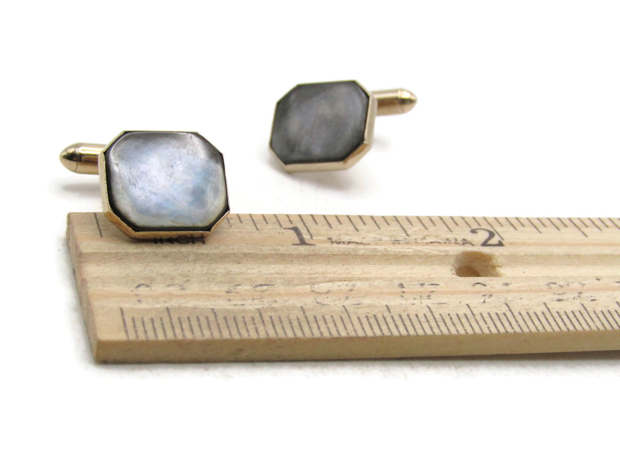 Blue Stone Inlay Cuff Links Beveled Edge Gold Tone Men's Jewelry