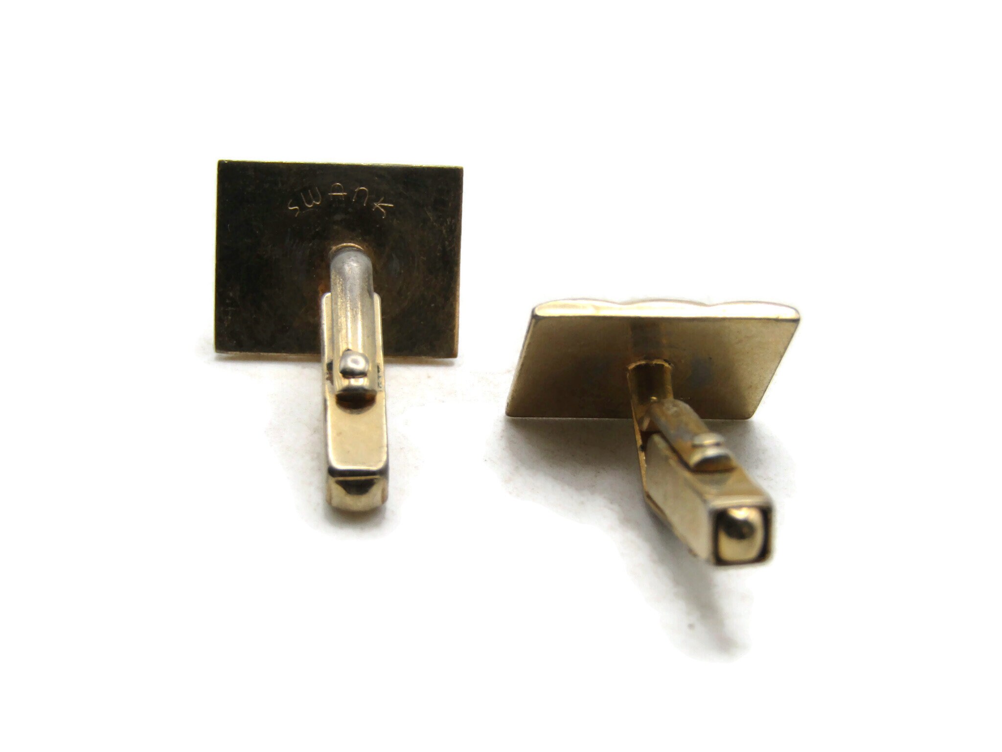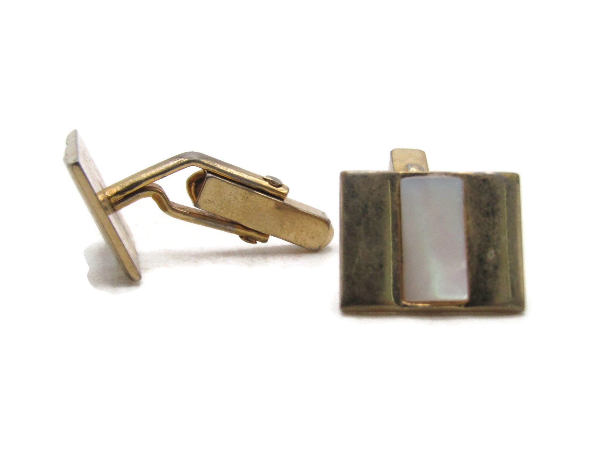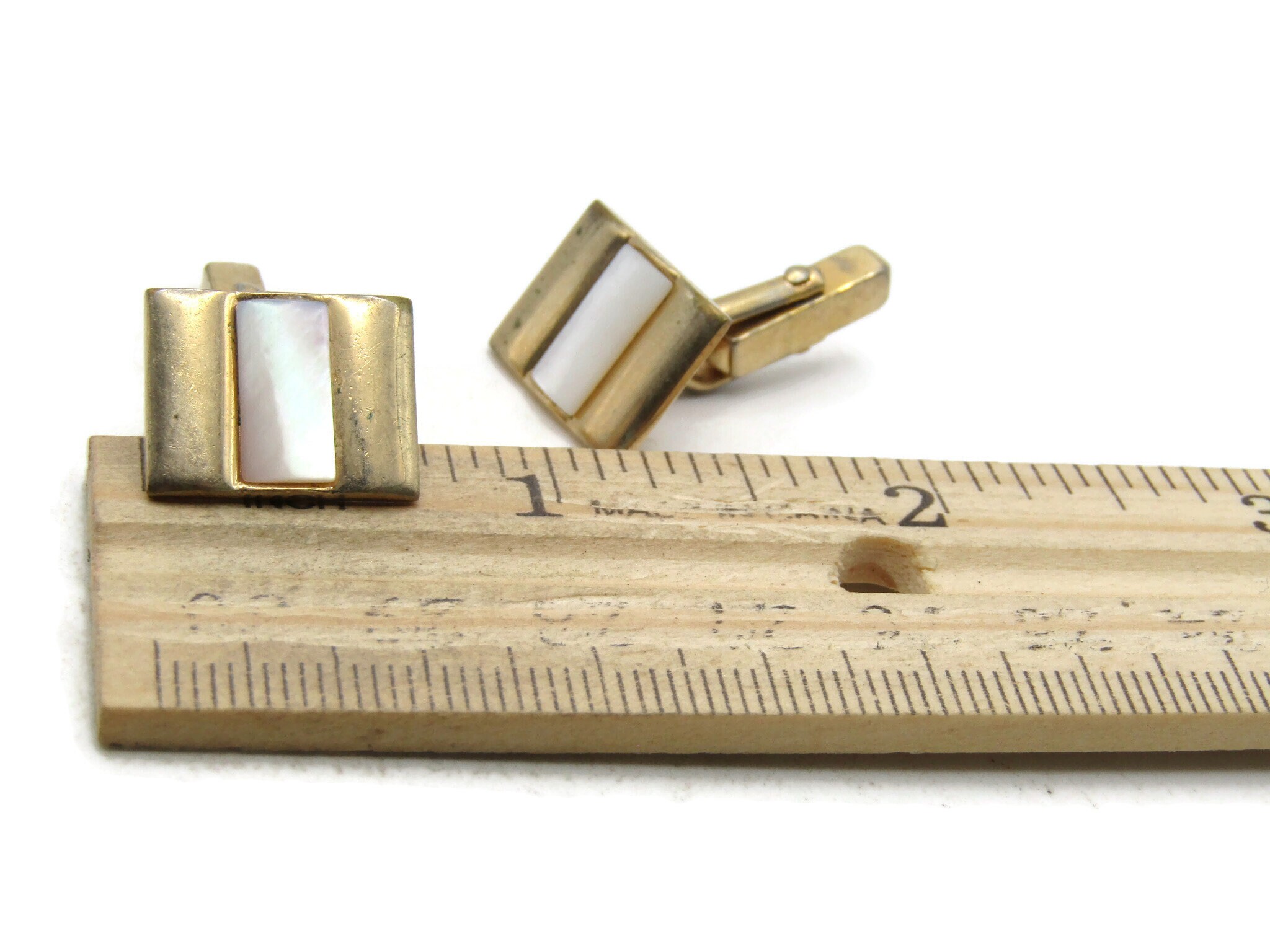 Mother Of Pearl Inlay Rectangle Cuff Links Gold Tone Men's Jewelry
