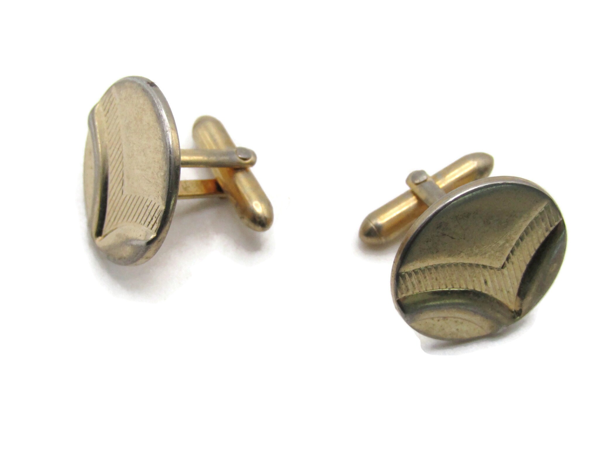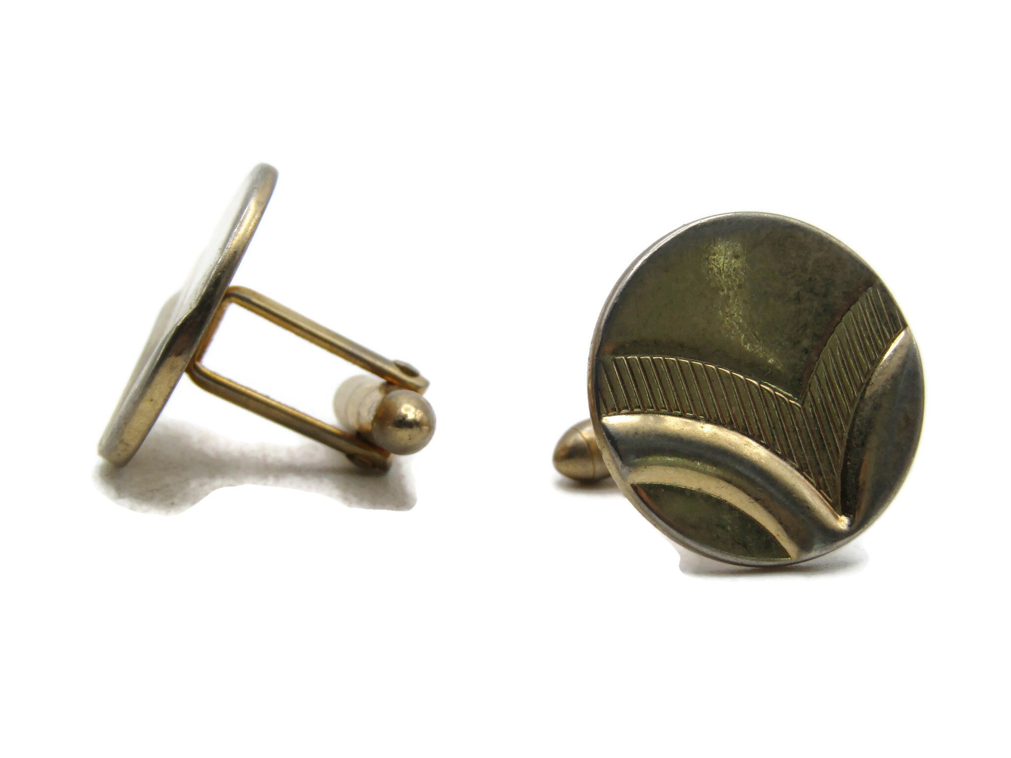 Circle & V Shaped Pattern Cuff Links Gold Tone Men's Jewelry