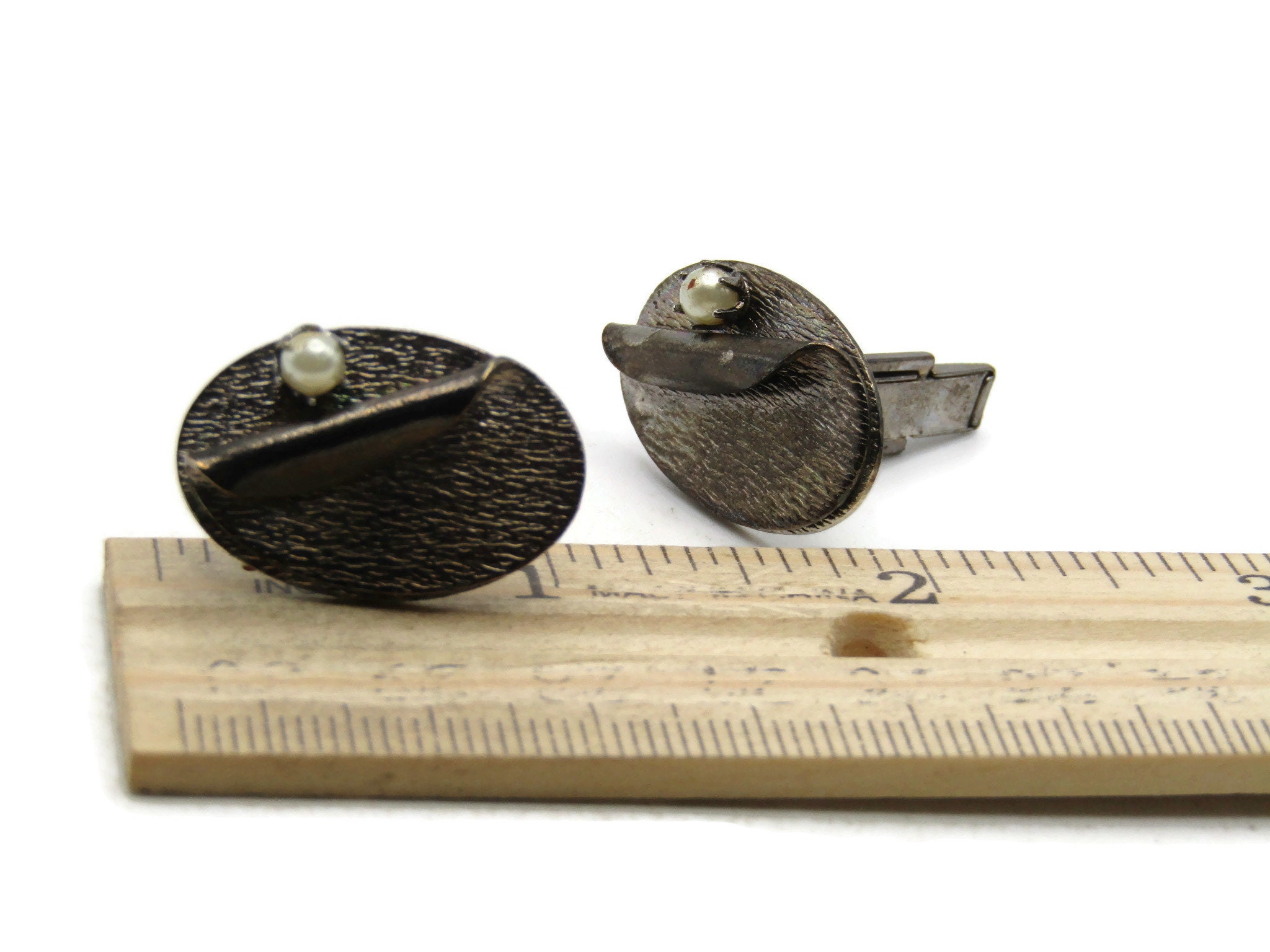 White Stone Inlay Curled Corner Textured Cuff Links Silver Tone Men's Jewelry
