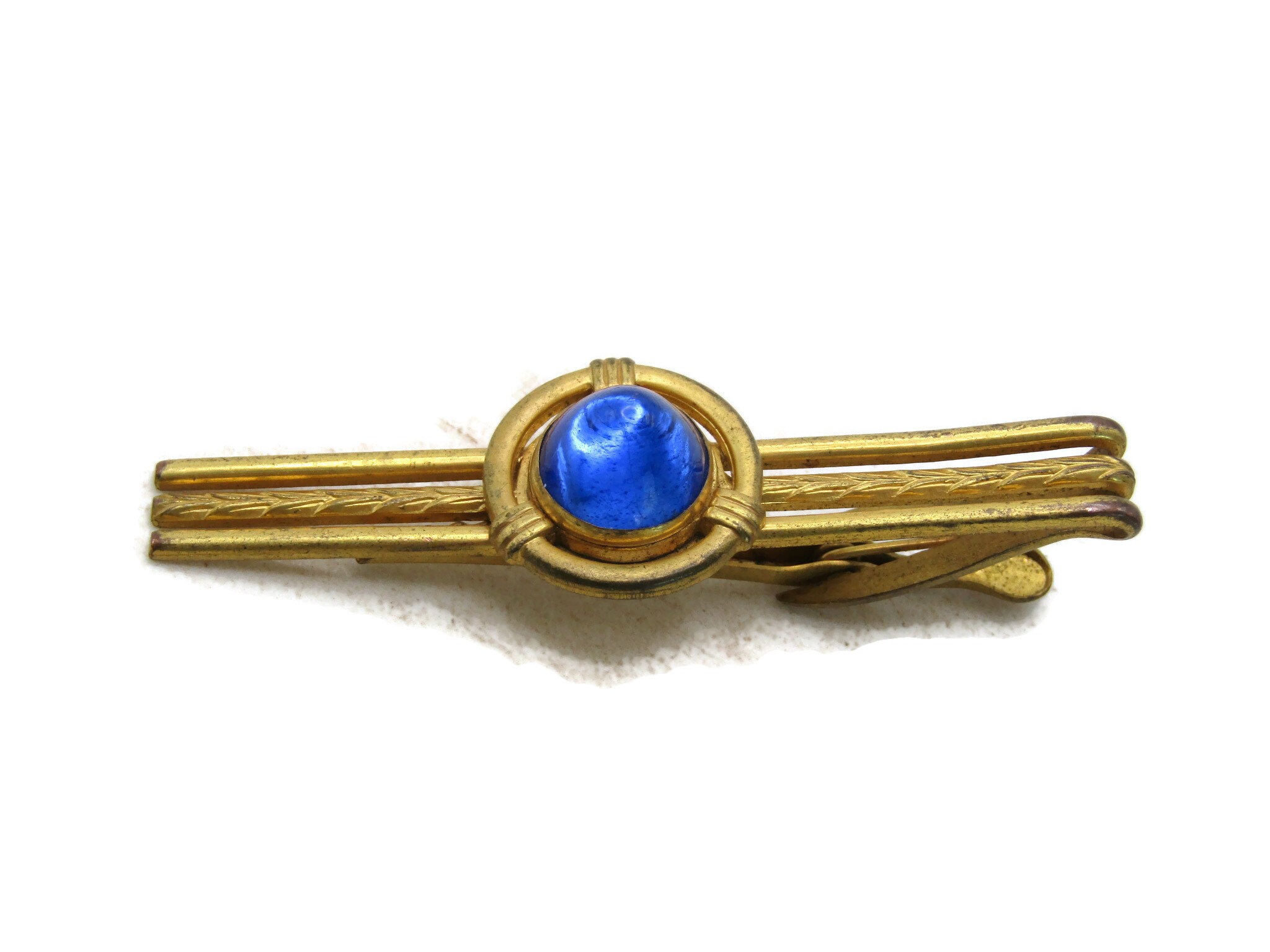 Blue Stone Inlay Tie Clip Tie Bar Men's Jewelry Gold Tone