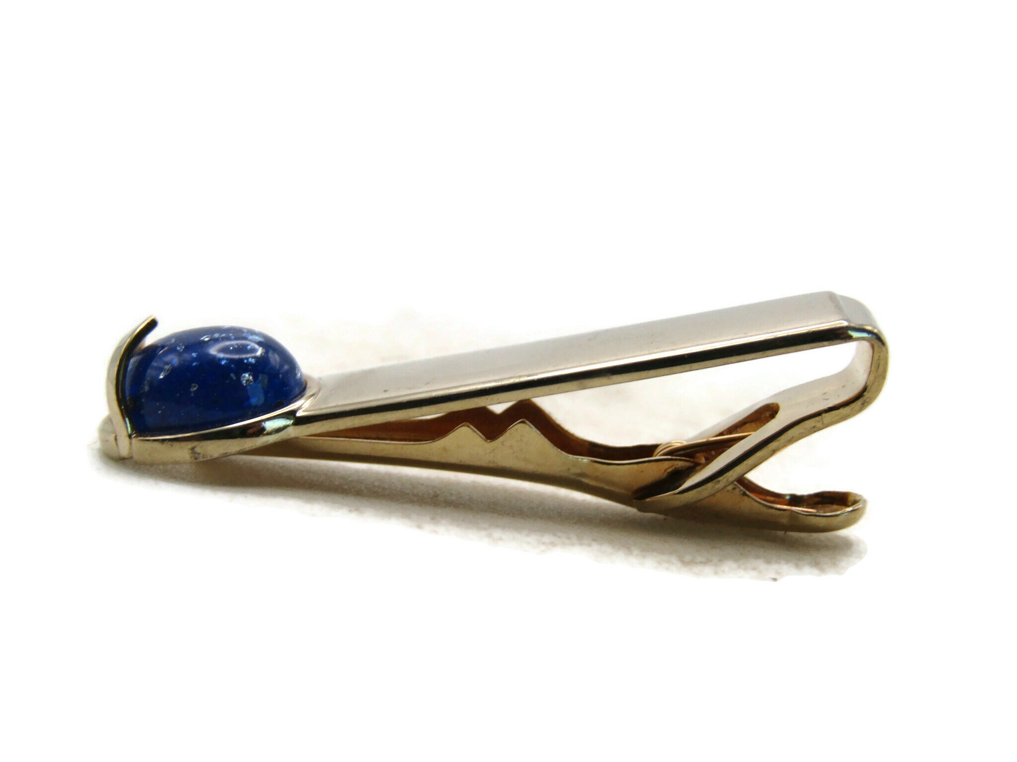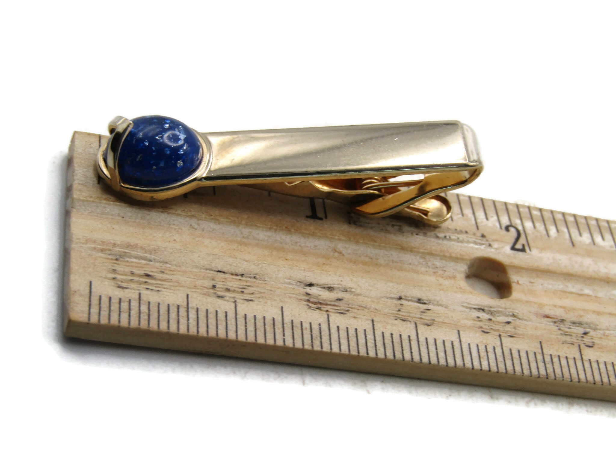 Blue Glitter Stone Inlay Tie Clip Tie Bar Men's Jewelry Gold Tone