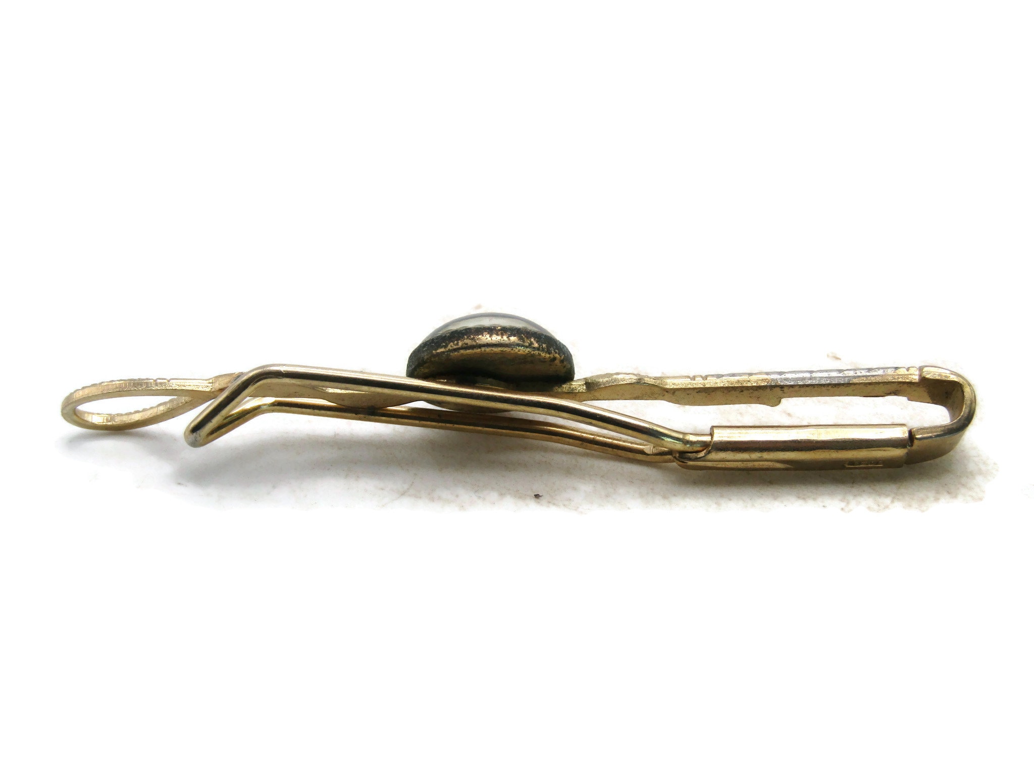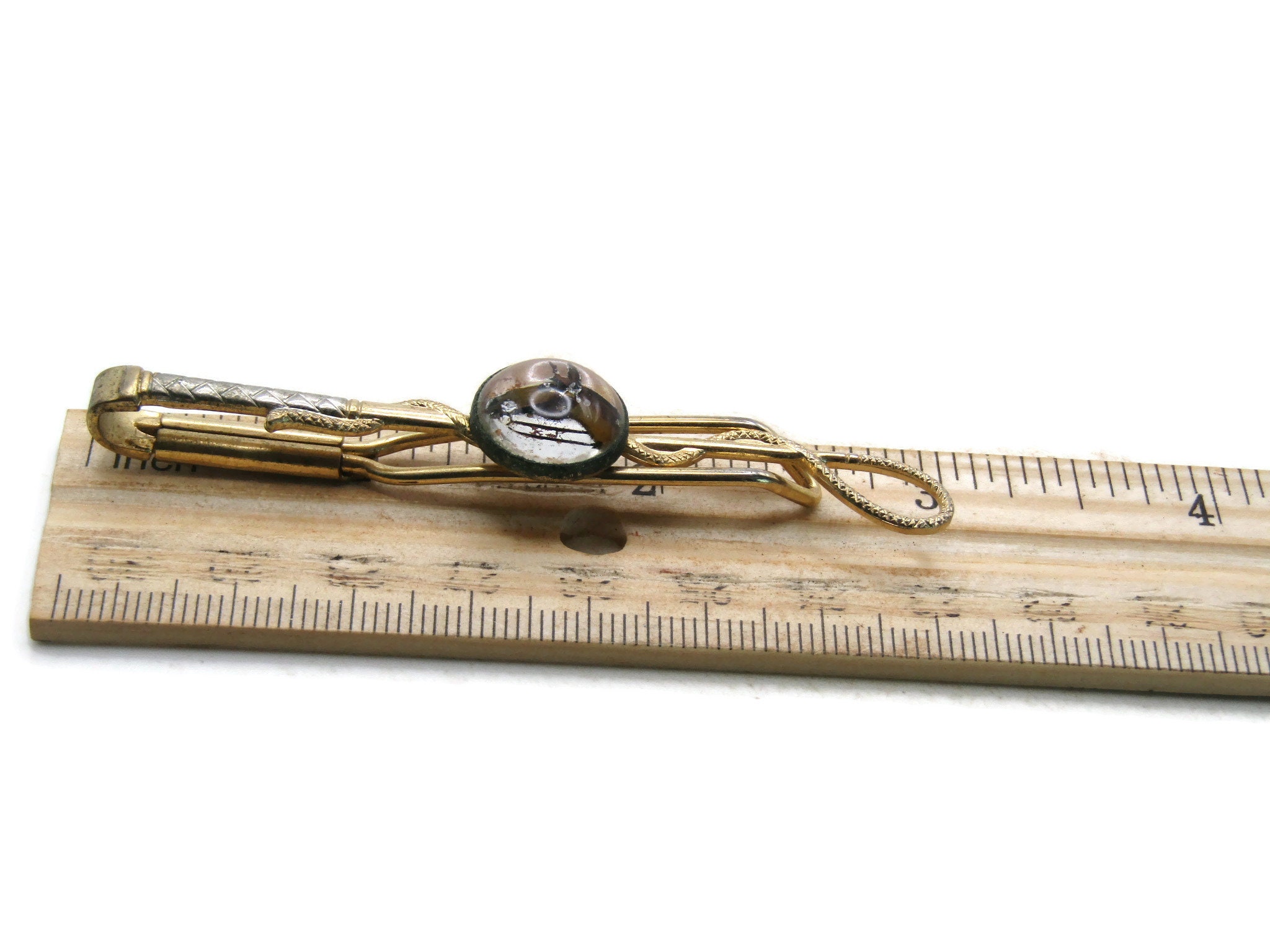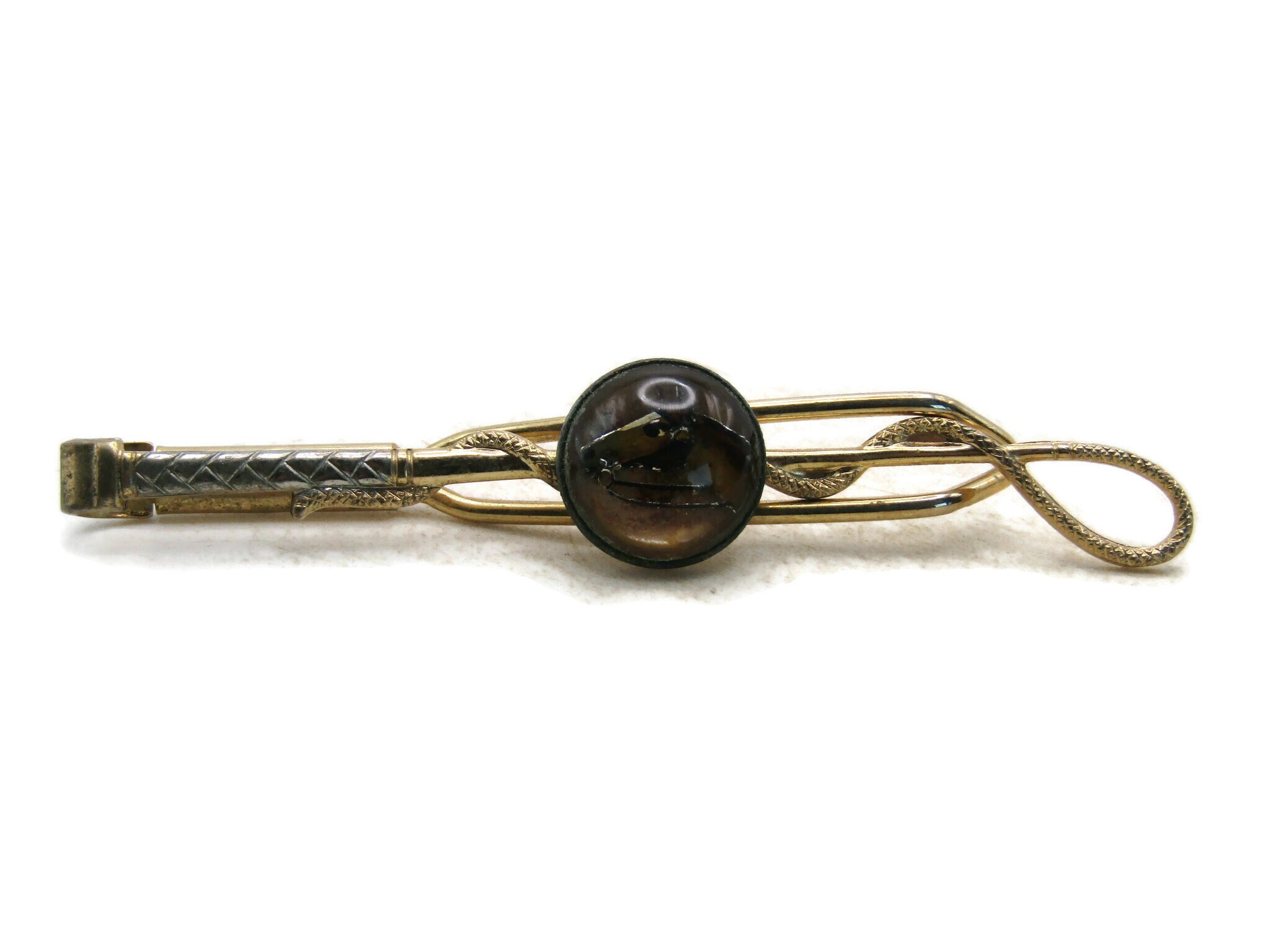 Horse Head Stone & Rope Tie Clip Tie Bar Men's Jewelry Gold Tone