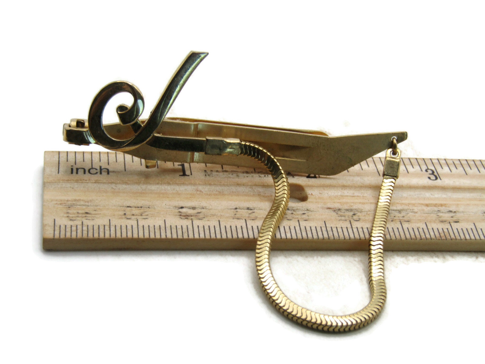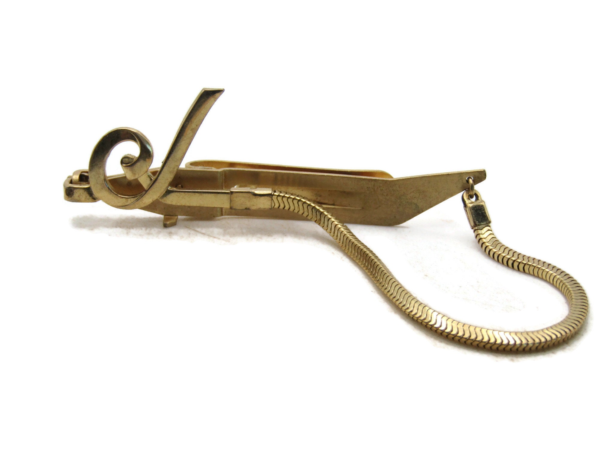 D Letter Initial Monogram Tie Clip Tie Bar Men's Jewelry Gold Tone