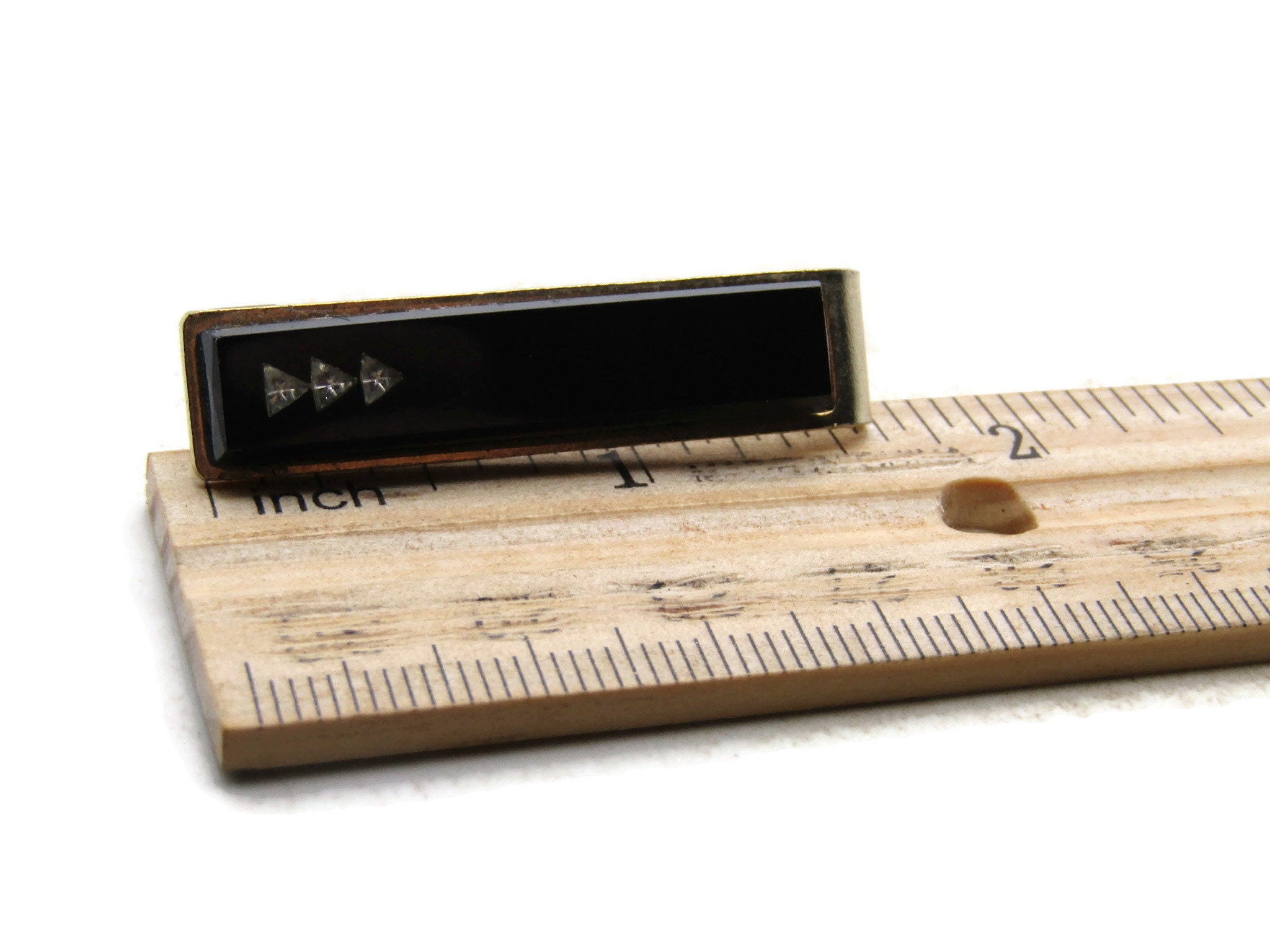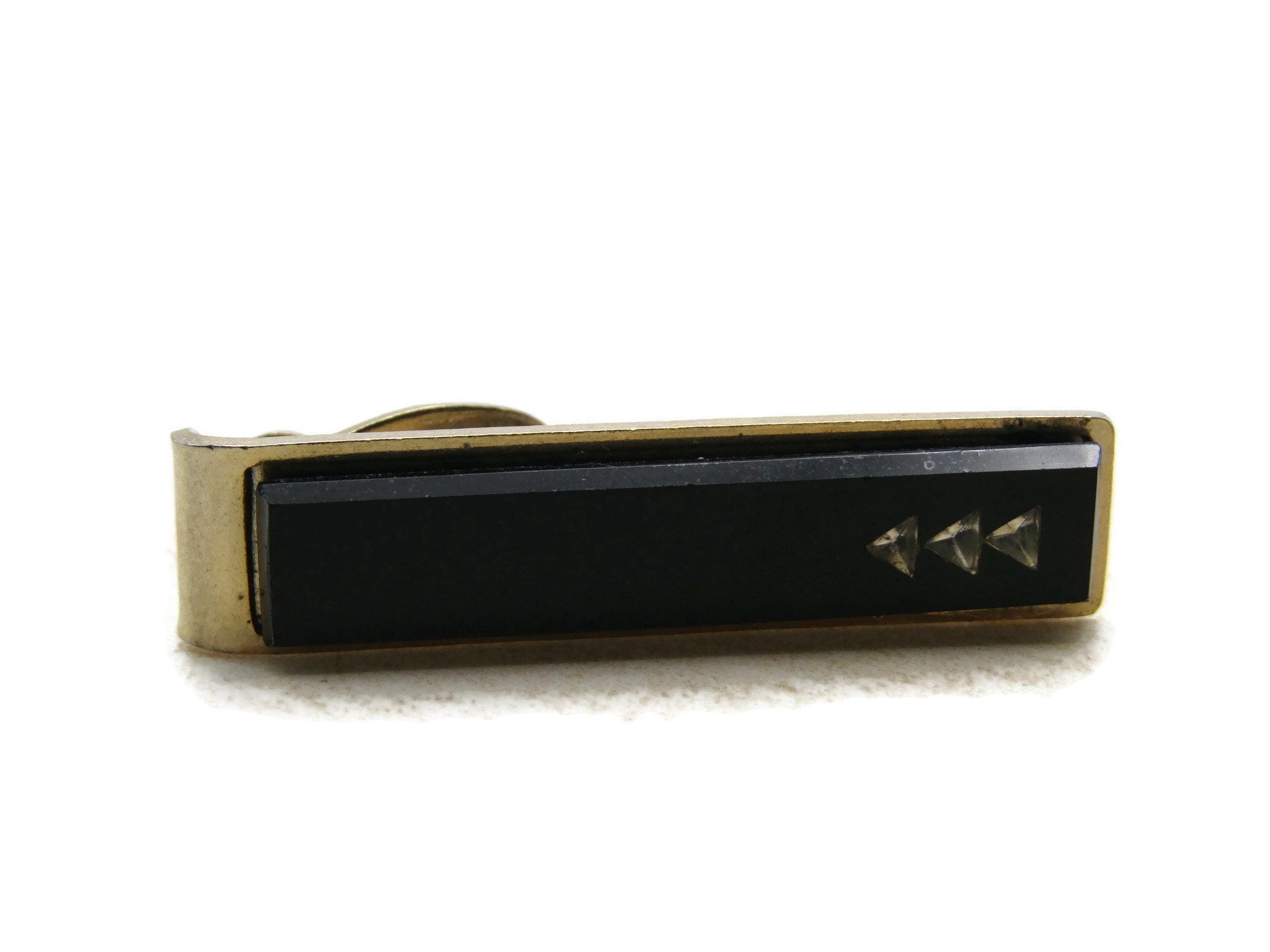 Black & Rhinestone Triangles Tie Clip Tie Bar Men's Jewelry Gold Tone