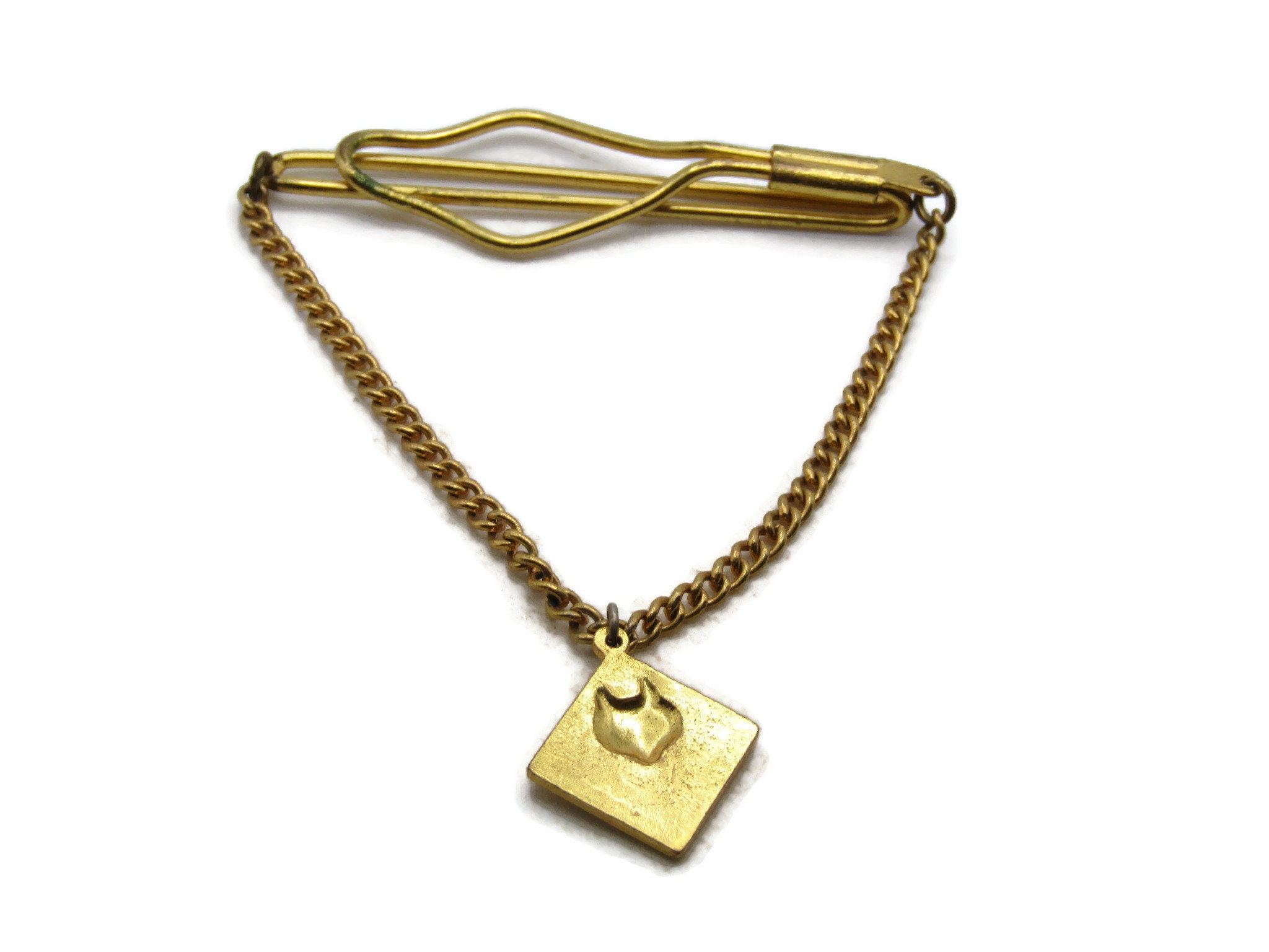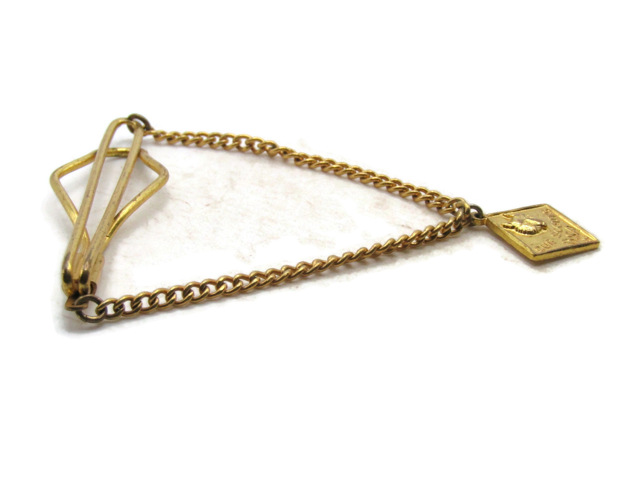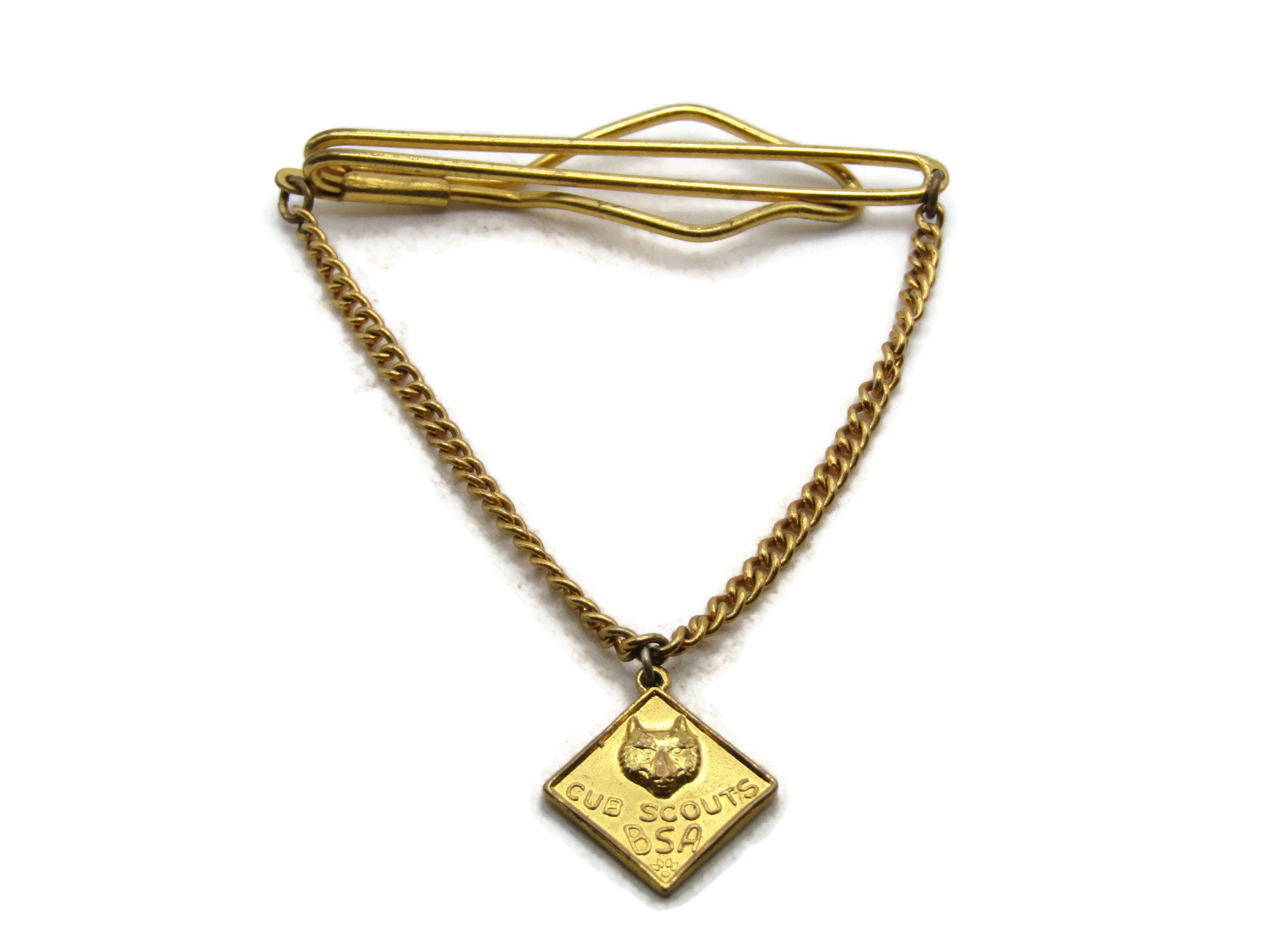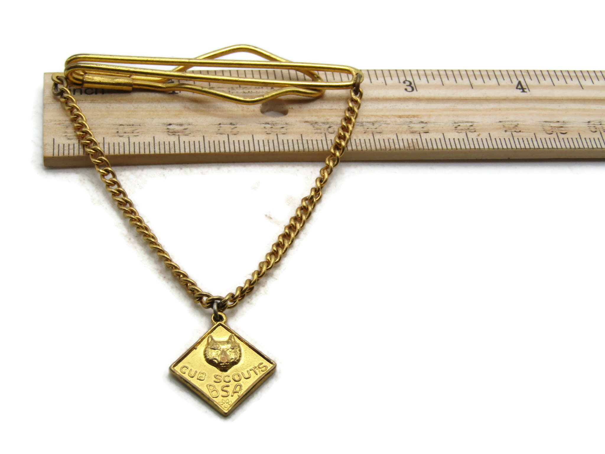 BSA Cub Scouts Charm & Chain Tie Clip Open Design Men's Jewelry Gold Tone
